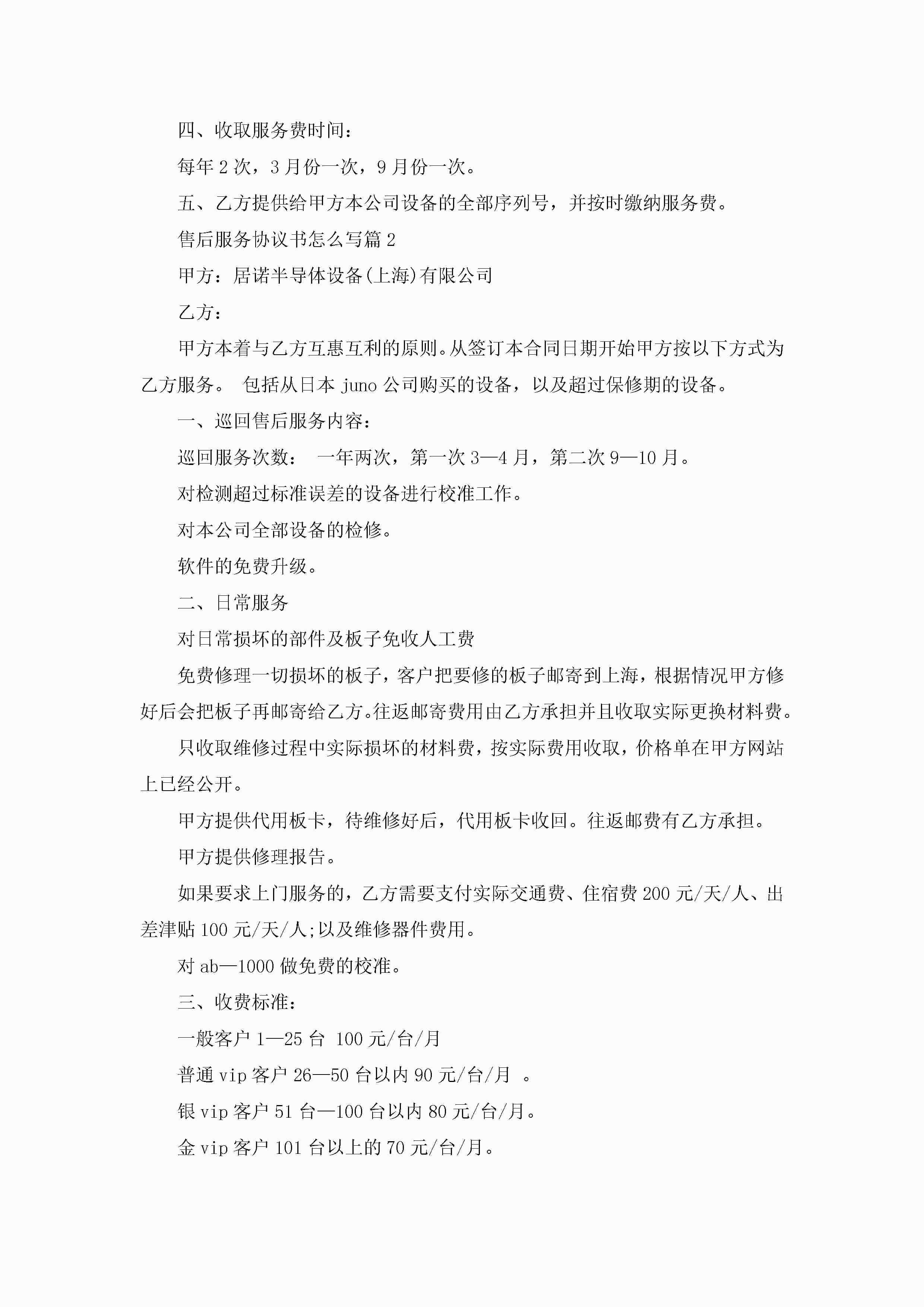 售后服务协议书范文怎么写jugei3月23日 01:37发布关注220 售后服务协议书范文怎么写此内容为付费资源,请付费后查看¥10.9 单篇文档限时特惠¥15个人会员开通企业会员开通立即下载无需登陆!可直接快捷下载单个模板付费资源© 版权声明THE ENDWord模板# 实用文档# 实用模板# 合同模板# 合同范本 如有问题,可点击最底部“联系我们”联系客服 分享QQ空间微博QQ好友海报分享复制链接收藏