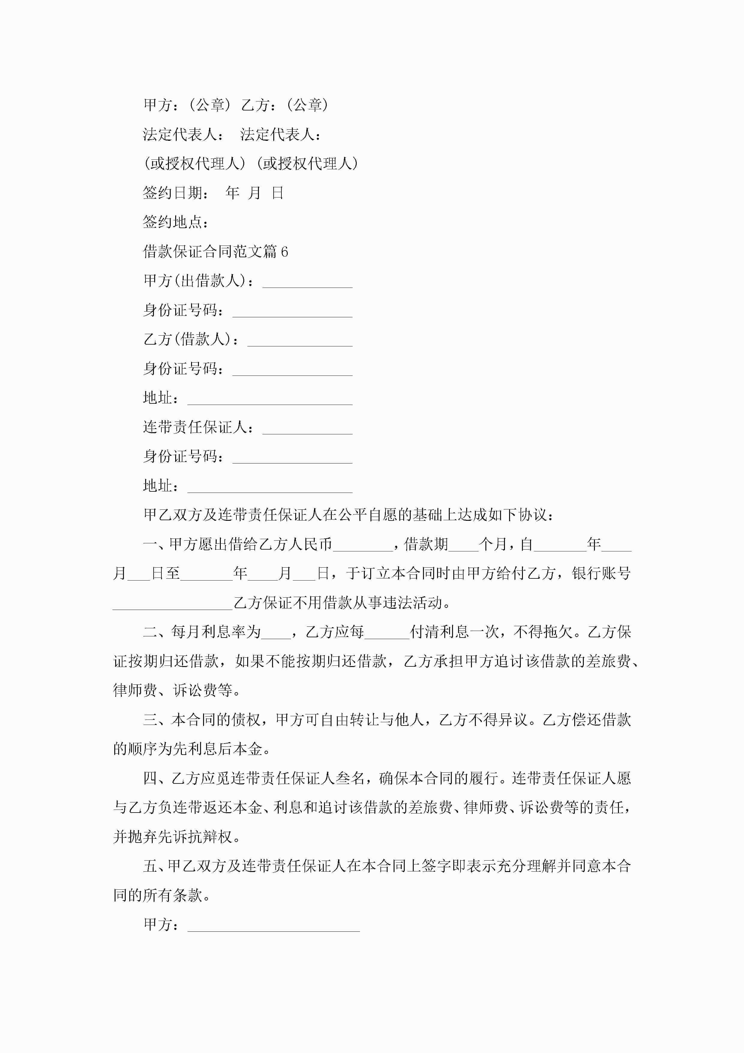借款保证合同范文模板jugei3月23日 01:37发布关注238 借款保证合同范文模板此内容为付费资源,请付费后查看¥10.9 单篇文档限时特惠¥15个人会员开通企业会员开通立即下载无需登陆!可直接快捷下载单个模板付费资源© 版权声明THE ENDWord模板# 实用文档# 实用模板# 合同模板# 合同范本 如有问题,可点击最底部“联系我们”联系客服 分享QQ空间微博QQ好友海报分享复制链接收藏