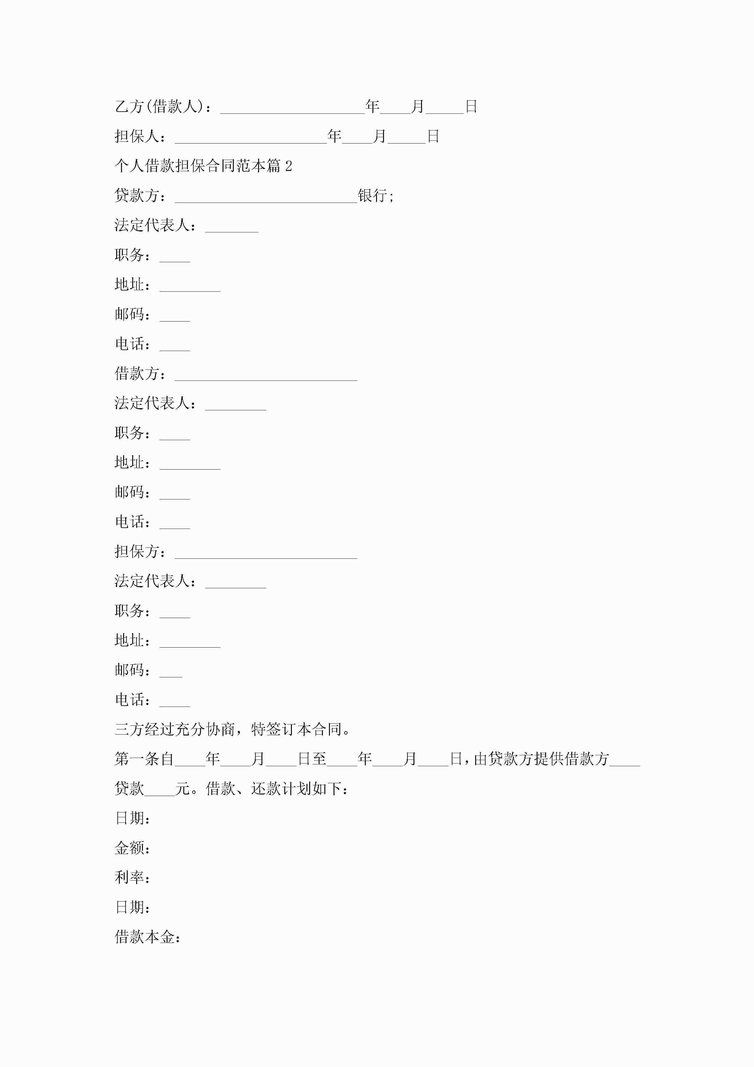个人借款担保合同最新范本jugei3月23日 01:37发布关注193 个人借款担保合同最新范本此内容为付费资源,请付费后查看¥10.9 单篇文档限时特惠¥15个人会员开通企业会员开通立即下载无需登陆!可直接快捷下载单个模板付费资源© 版权声明THE ENDWord模板# 实用文档# 实用模板# 合同模板# 合同范本 如有问题,可点击最底部“联系我们”联系客服 分享QQ空间微博QQ好友海报分享复制链接收藏