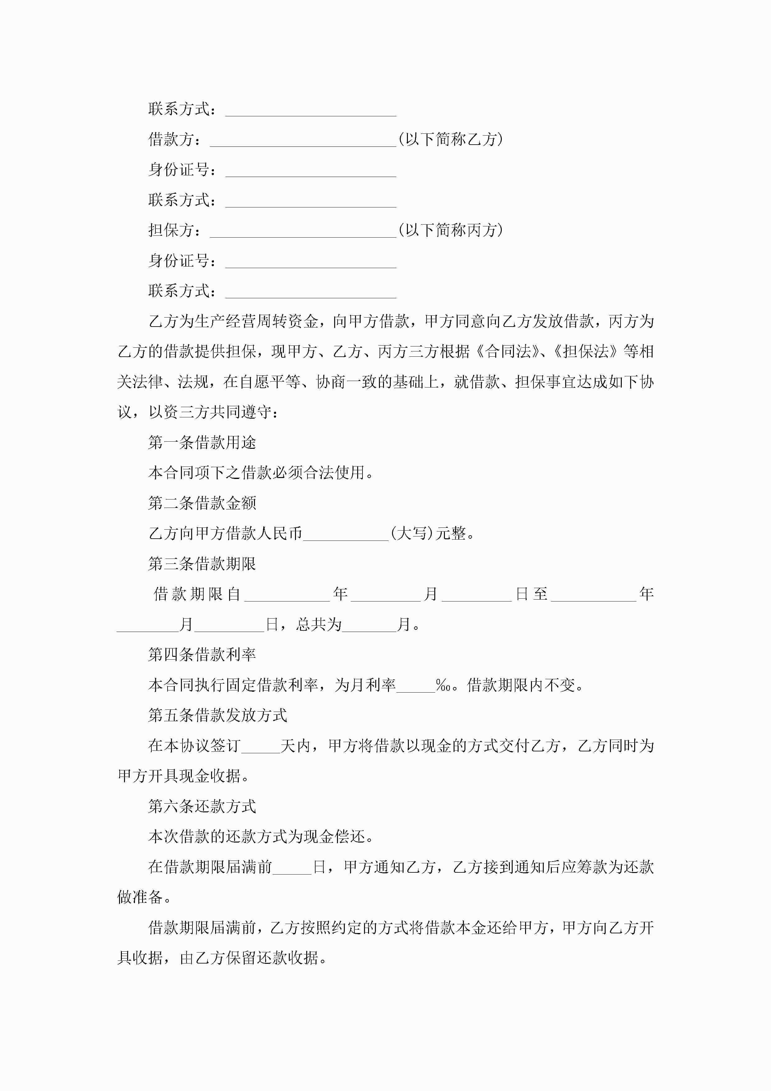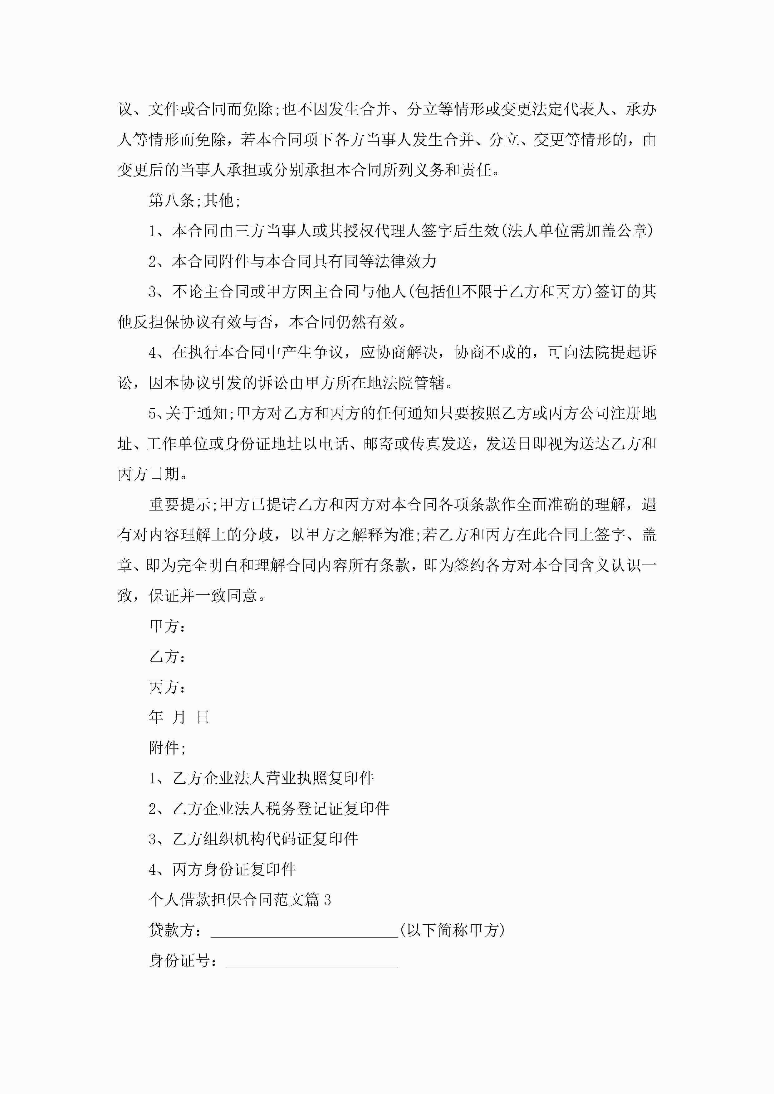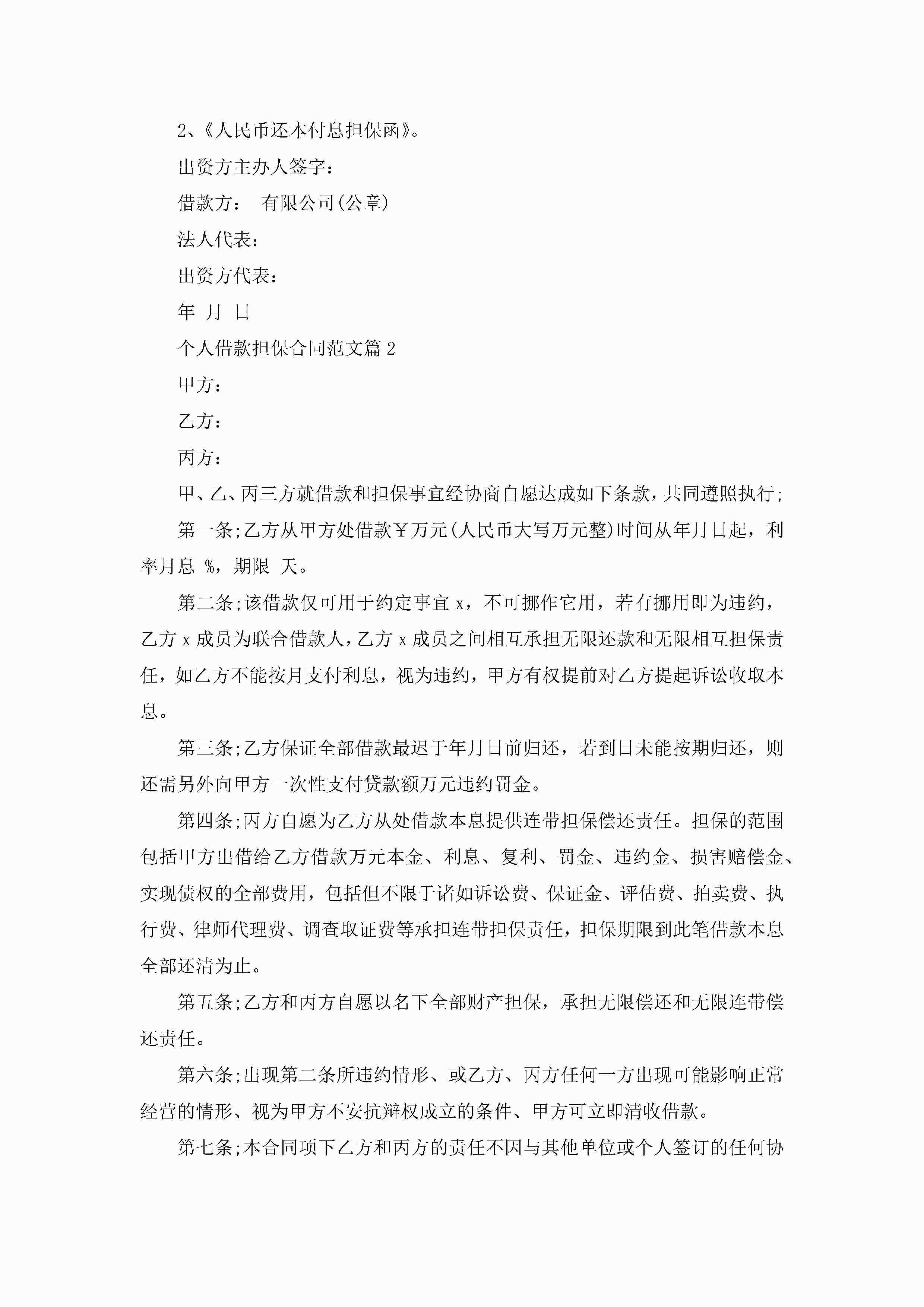 个人借款担保合同范文模板jugei3月23日 01:37发布关注266 个人借款担保合同范文模板此内容为付费资源,请付费后查看¥10.9 单篇文档限时特惠¥15个人会员开通企业会员开通立即下载无需登陆!可直接快捷下载单个模板付费资源© 版权声明THE ENDWord模板# 实用文档# 实用模板# 合同模板# 合同范本 如有问题,可点击最底部“联系我们”联系客服 分享QQ空间微博QQ好友海报分享复制链接收藏