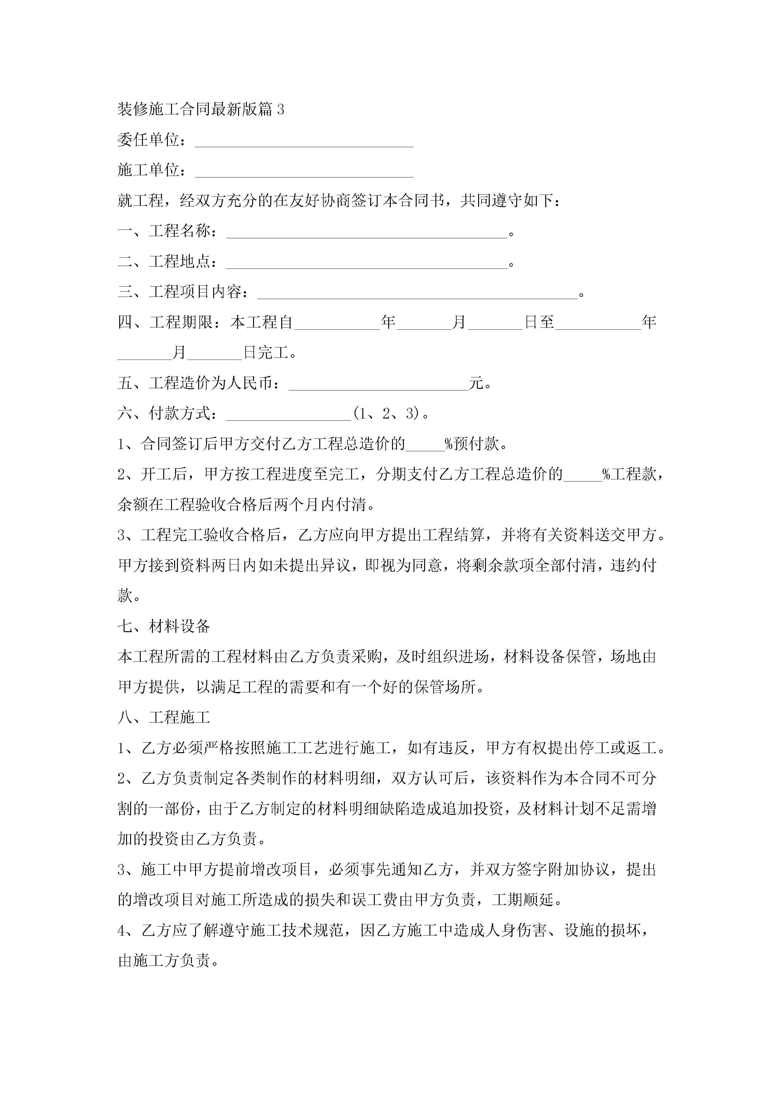 装修施工合同最新版范文jugei3月23日 01:37发布关注266 装修施工合同最新版范文此内容为付费资源,请付费后查看¥10.9 单篇文档限时特惠¥15个人会员开通企业会员开通立即下载无需登陆!可直接快捷下载单个模板付费资源© 版权声明THE ENDWord模板# 实用文档# 实用模板# 合同模板# 合同范本 如有问题,可点击最底部“联系我们”联系客服 分享QQ空间微博QQ好友海报分享复制链接收藏