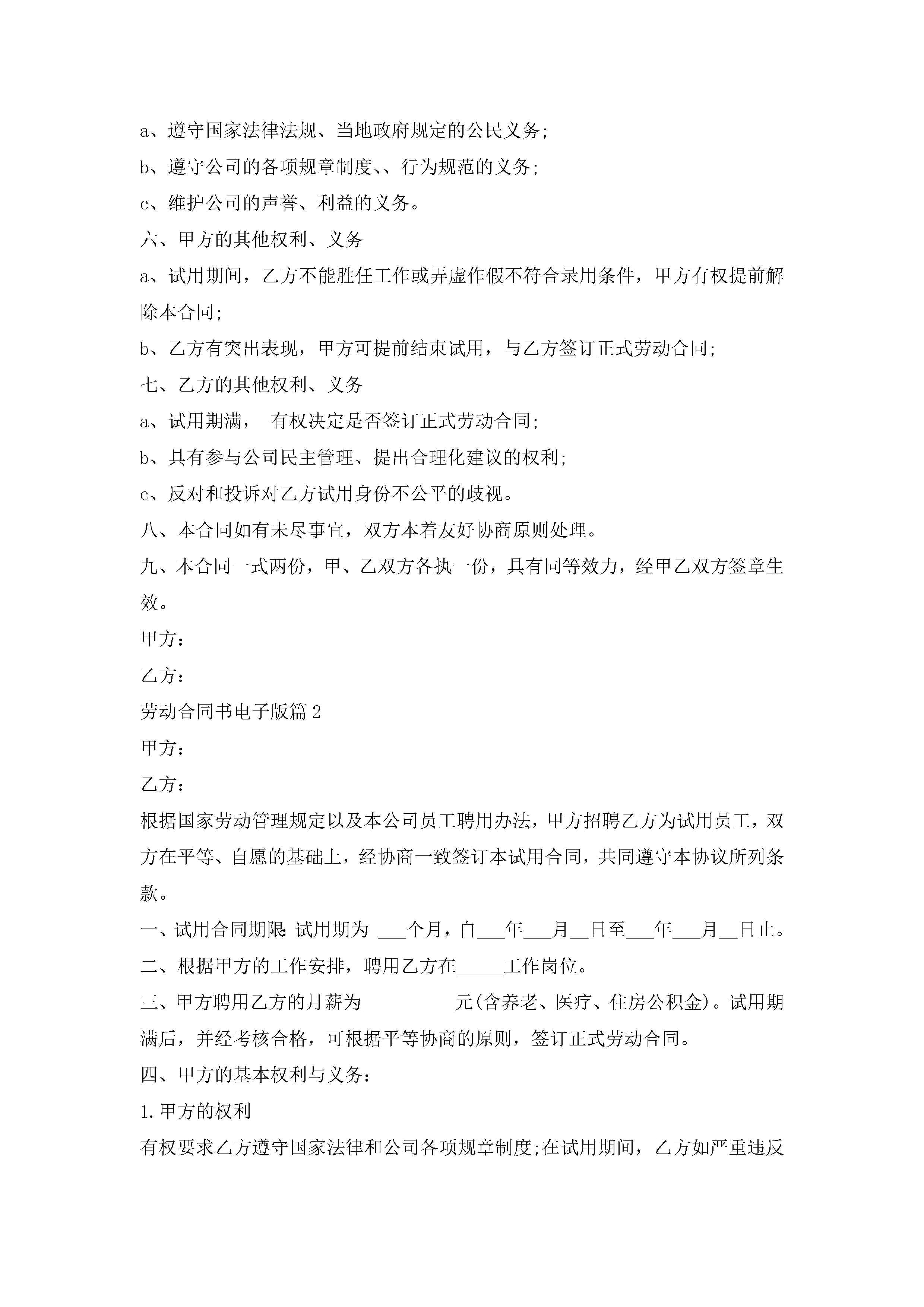 劳动合同书范文电子版jugei3月23日 01:37发布关注195 劳动合同书范文电子版此内容为付费资源,请付费后查看¥10.9 单篇文档限时特惠¥15个人会员开通企业会员开通立即下载无需登陆!可直接快捷下载单个模板付费资源© 版权声明THE ENDWord模板# 实用文档# 实用模板# 合同模板# 合同范本 如有问题,可点击最底部“联系我们”联系客服 分享QQ空间微博QQ好友海报分享复制链接收藏