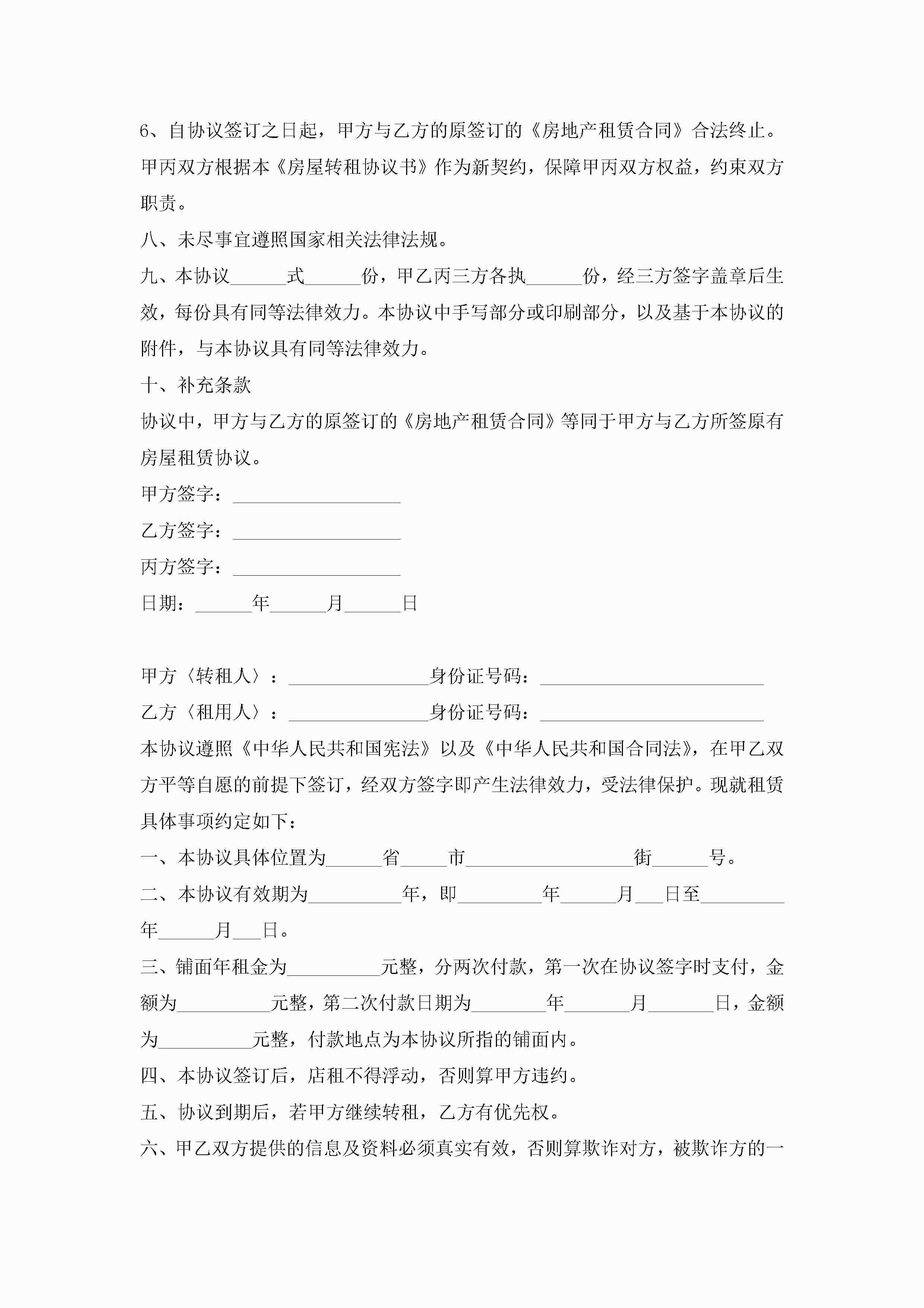 商铺转让合同通用版6篇jugei3月23日 01:37发布关注197 商铺转让合同通用版6篇此内容为付费资源,请付费后查看¥10.9 单篇文档限时特惠¥15个人会员开通企业会员开通立即下载无需登陆!可直接快捷下载单个模板付费资源© 版权声明THE ENDWord模板# 实用文档# 实用模板# 合同模板# 合同范本 如有问题,可点击最底部“联系我们”联系客服 分享QQ空间微博QQ好友海报分享复制链接收藏