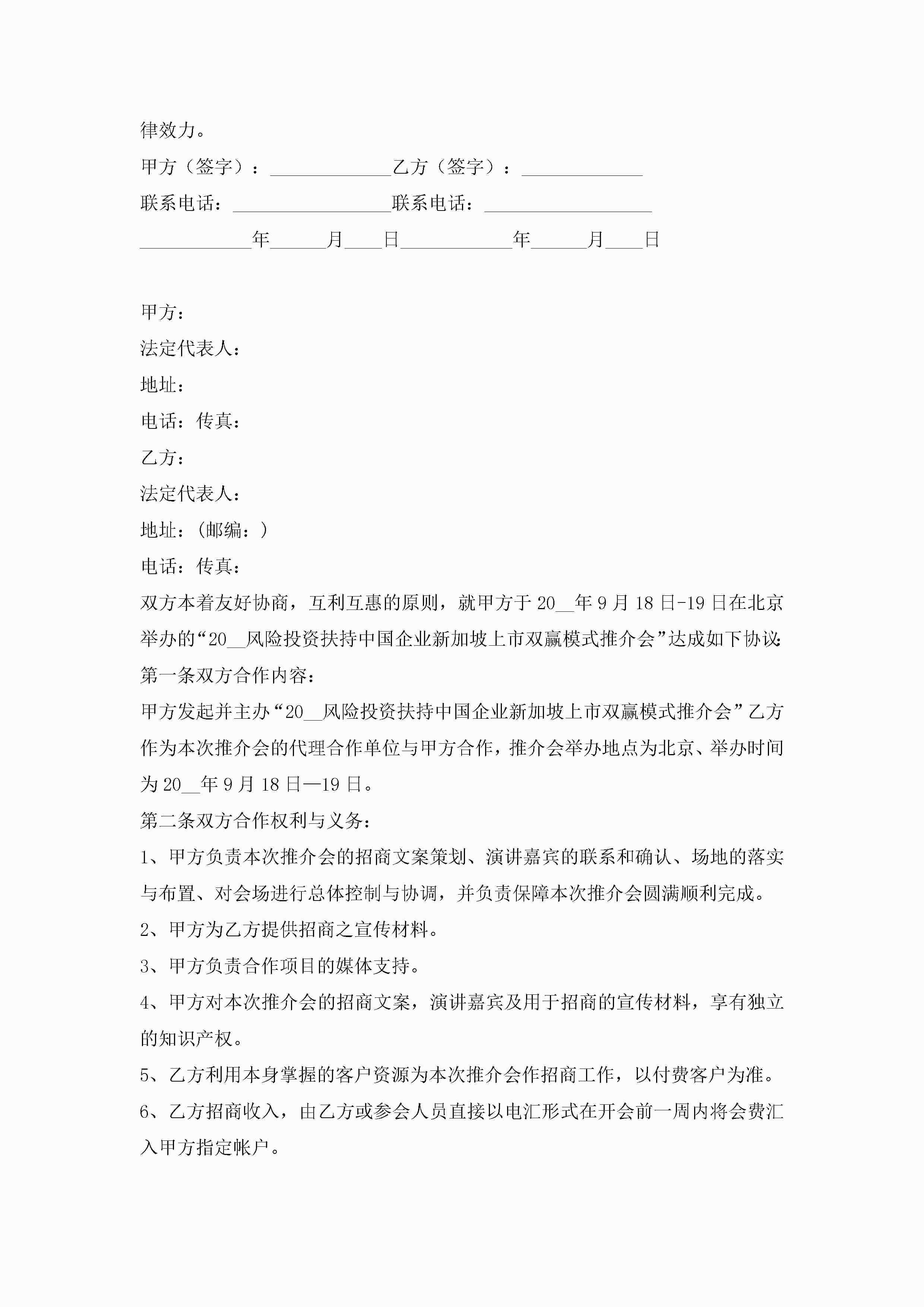 项目合作投资协议书(优秀8篇)jugei3月23日 01:37发布关注200 项目合作投资协议书(优秀8篇)此内容为付费资源,请付费后查看¥10.9 单篇文档限时特惠¥15个人会员开通企业会员开通立即下载无需登陆!可直接快捷下载单个模板付费资源© 版权声明THE ENDWord模板# 实用文档# 实用模板# 合同模板# 合同范本 如有问题,可点击最底部“联系我们”联系客服 分享QQ空间微博QQ好友海报分享复制链接收藏