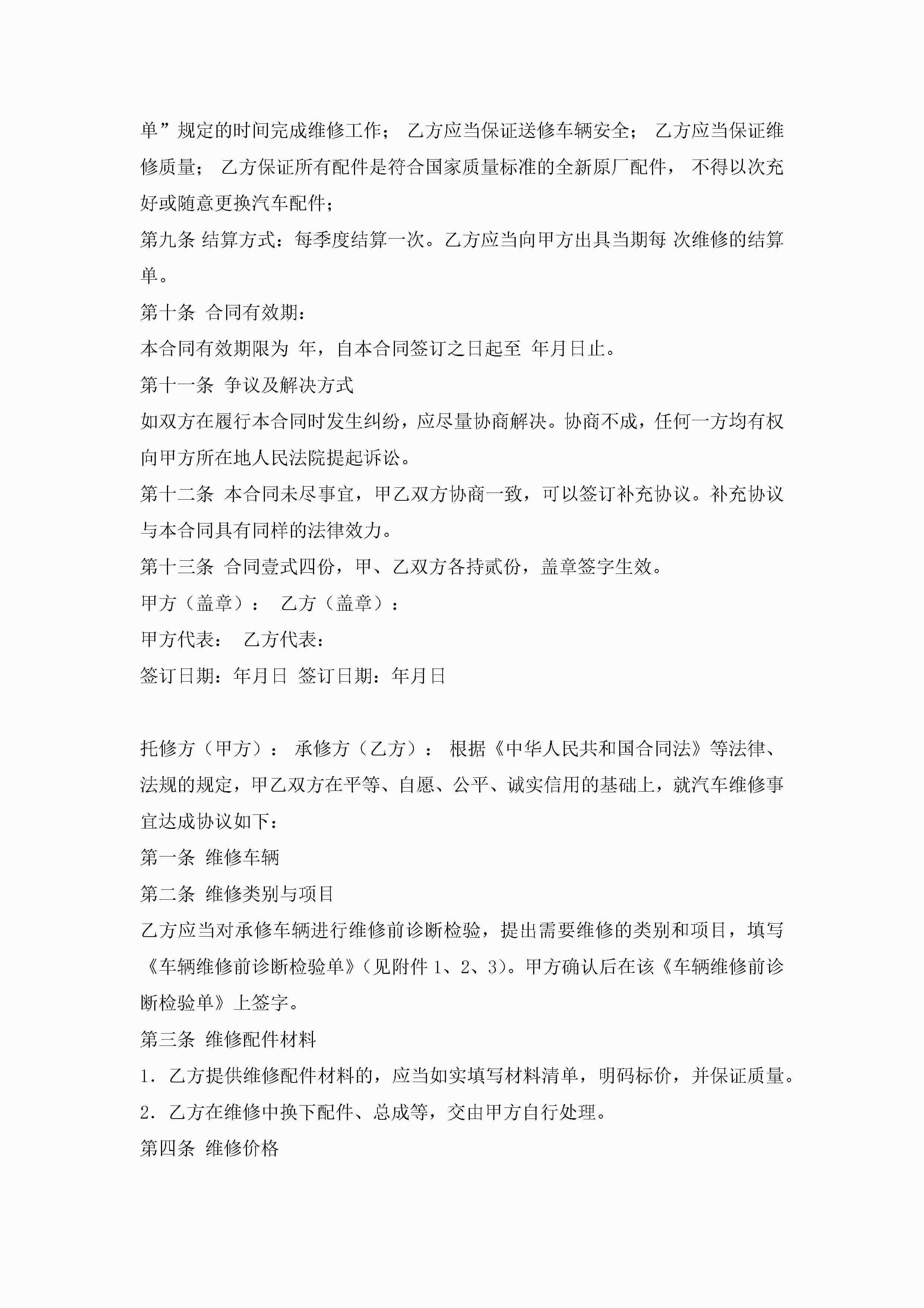 车辆维修合同模板7篇jugei3月23日 01:37发布关注384 车辆维修合同模板7篇此内容为付费资源,请付费后查看¥10.9 单篇文档限时特惠¥15个人会员开通企业会员开通立即下载无需登陆!可直接快捷下载单个模板付费资源© 版权声明THE ENDWord模板# 实用文档# 实用模板# 合同模板# 合同范本 如有问题,可点击最底部“联系我们”联系客服 分享QQ空间微博QQ好友海报分享复制链接收藏