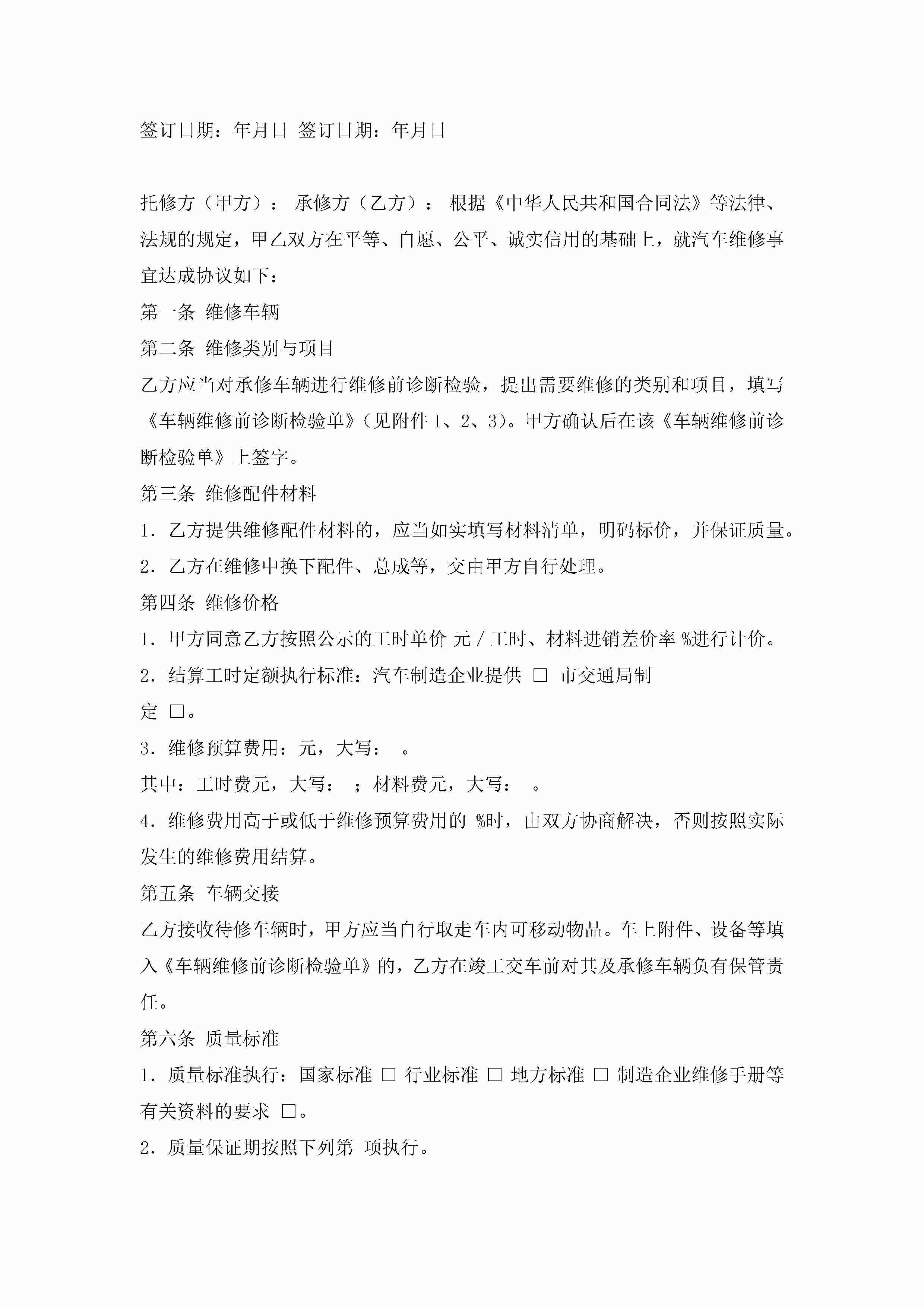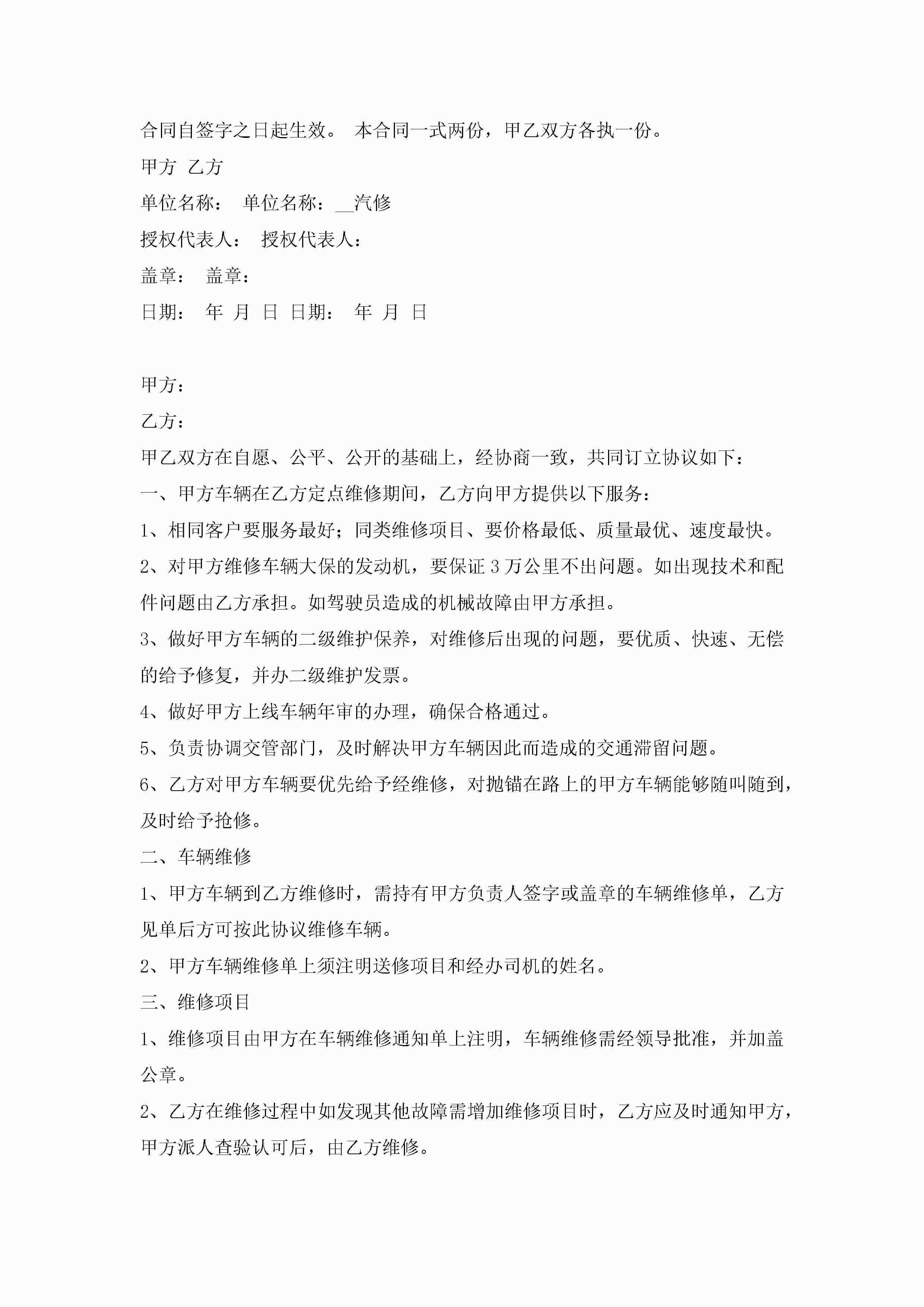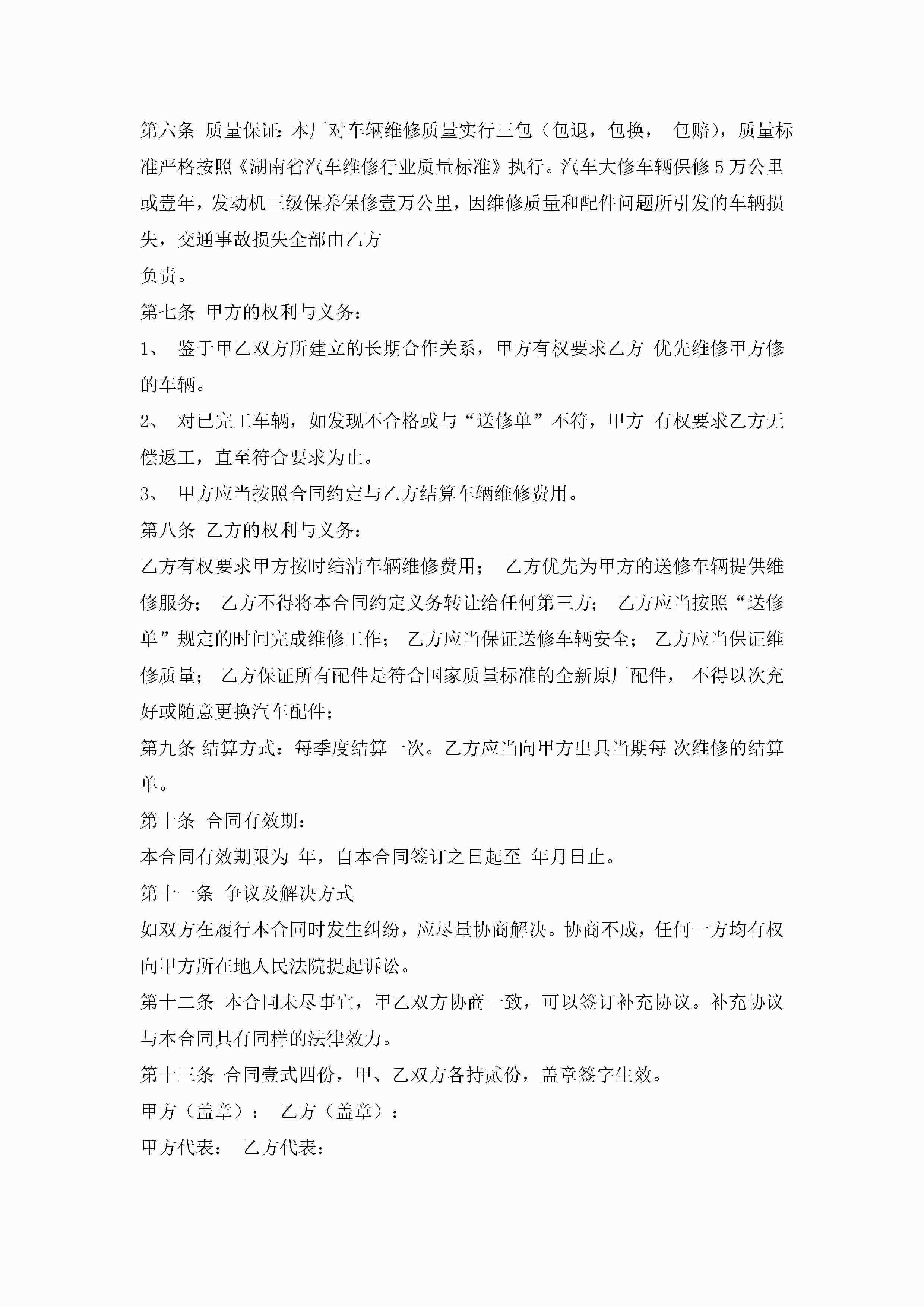 车辆维修合同模板(精选7篇)jugei3月23日 01:37发布关注271 车辆维修合同模板(精选7篇)此内容为付费资源,请付费后查看¥10.9 单篇文档限时特惠¥15个人会员开通企业会员开通立即下载无需登陆!可直接快捷下载单个模板付费资源© 版权声明THE ENDWord模板# 实用文档# 实用模板# 合同模板# 合同范本 如有问题,可点击最底部“联系我们”联系客服 分享QQ空间微博QQ好友海报分享复制链接收藏