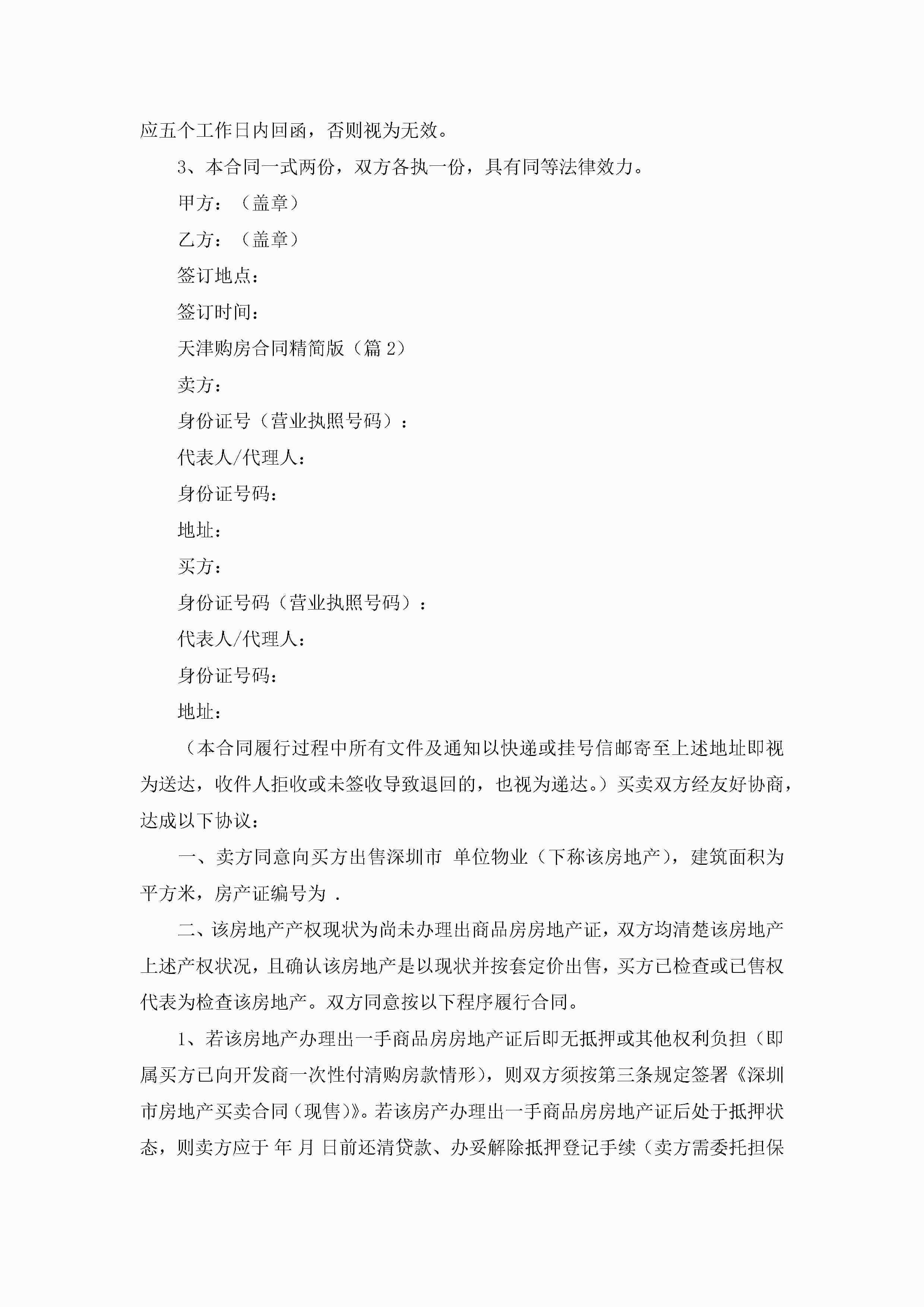 天津购房合同精简版7篇jugei3月23日 01:37发布关注238 天津购房合同精简版7篇此内容为付费资源,请付费后查看¥10.9 单篇文档限时特惠¥15个人会员开通企业会员开通立即下载无需登陆!可直接快捷下载单个模板付费资源© 版权声明THE ENDWord模板# 实用文档# 实用模板# 合同模板# 合同范本 如有问题,可点击最底部“联系我们”联系客服 分享QQ空间微博QQ好友海报分享复制链接收藏
