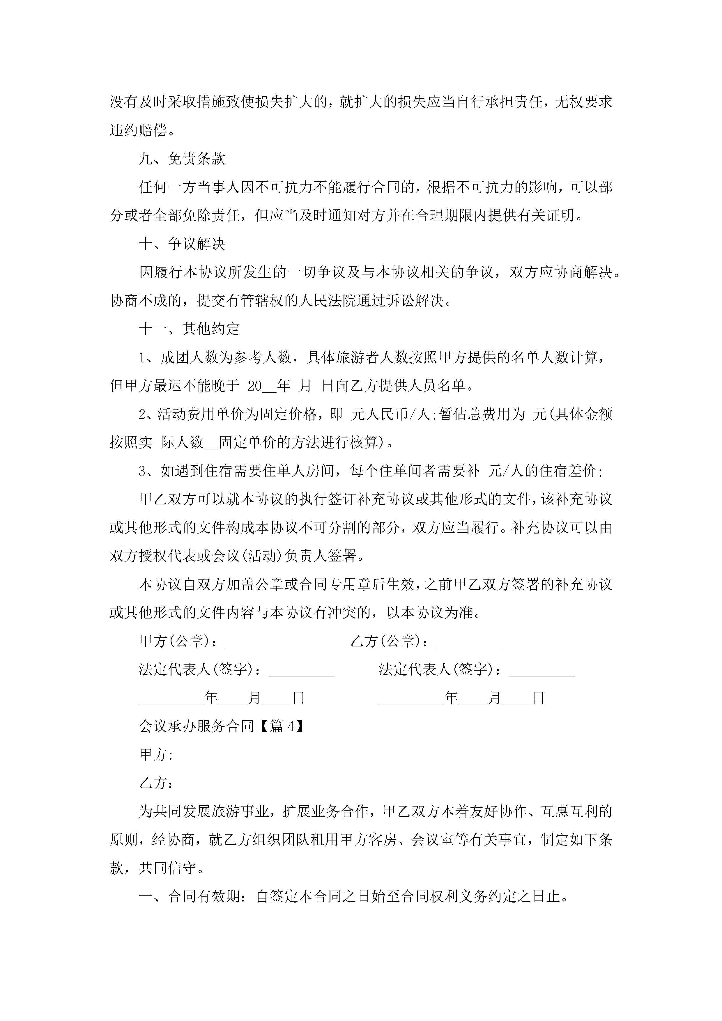 会议承办服务合同【通用7篇】jugei3月23日 01:37发布关注219 会议承办服务合同【通用7篇】此内容为付费资源,请付费后查看¥10.9 单篇文档限时特惠¥15个人会员开通企业会员开通立即下载无需登陆!可直接快捷下载单个模板付费资源© 版权声明THE ENDWord模板# 实用文档# 实用模板# 合同模板# 合同范本 如有问题,可点击最底部“联系我们”联系客服 分享QQ空间微博QQ好友海报分享复制链接收藏