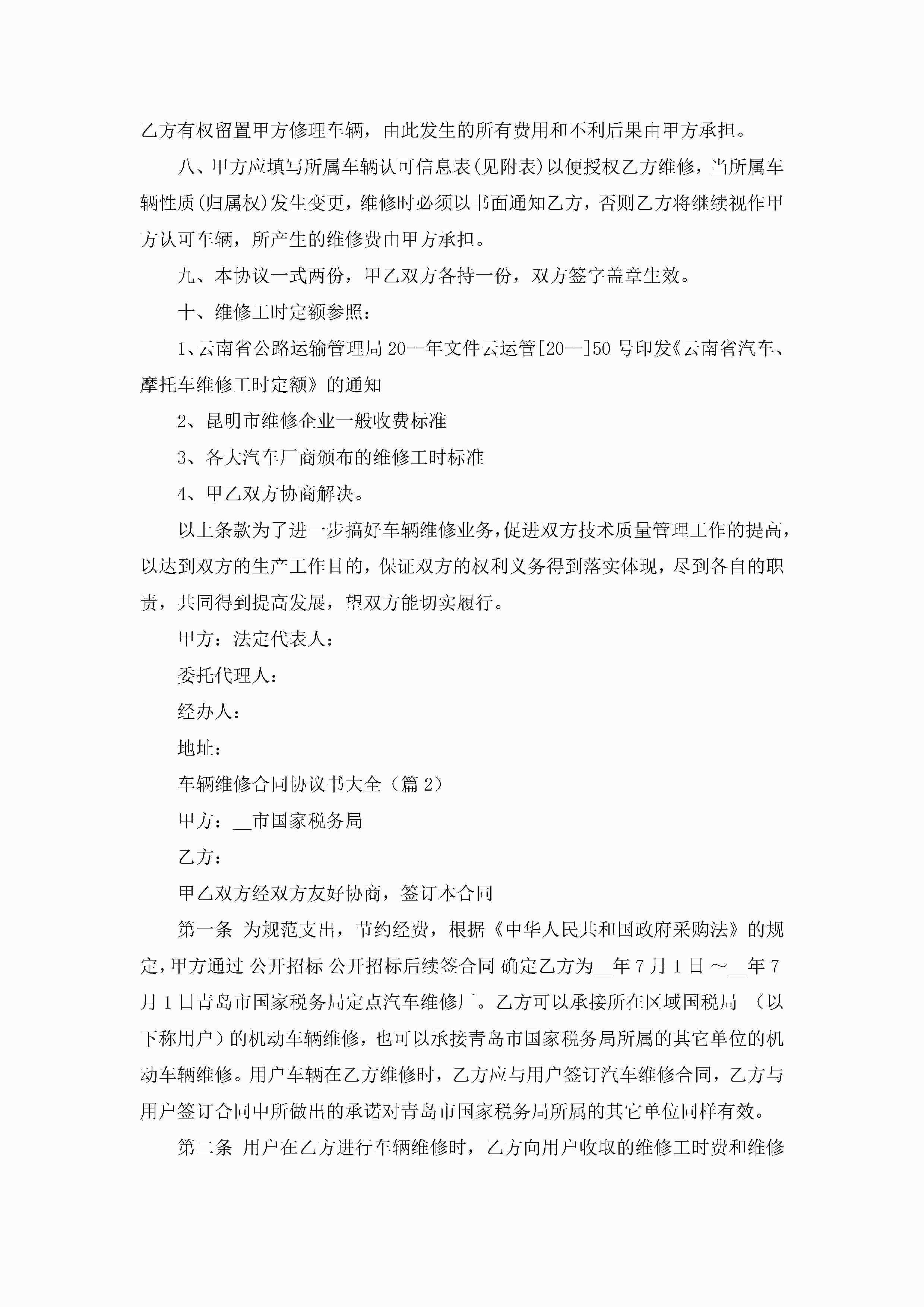 车辆维修合同协议书大全7篇jugei3月23日 01:37发布关注200 车辆维修合同协议书大全7篇此内容为付费资源,请付费后查看¥10.9 单篇文档限时特惠¥15个人会员开通企业会员开通立即下载无需登陆!可直接快捷下载单个模板付费资源© 版权声明THE ENDWord模板# 实用文档# 实用模板# 合同模板# 合同范本 如有问题,可点击最底部“联系我们”联系客服 分享QQ空间微博QQ好友海报分享复制链接收藏