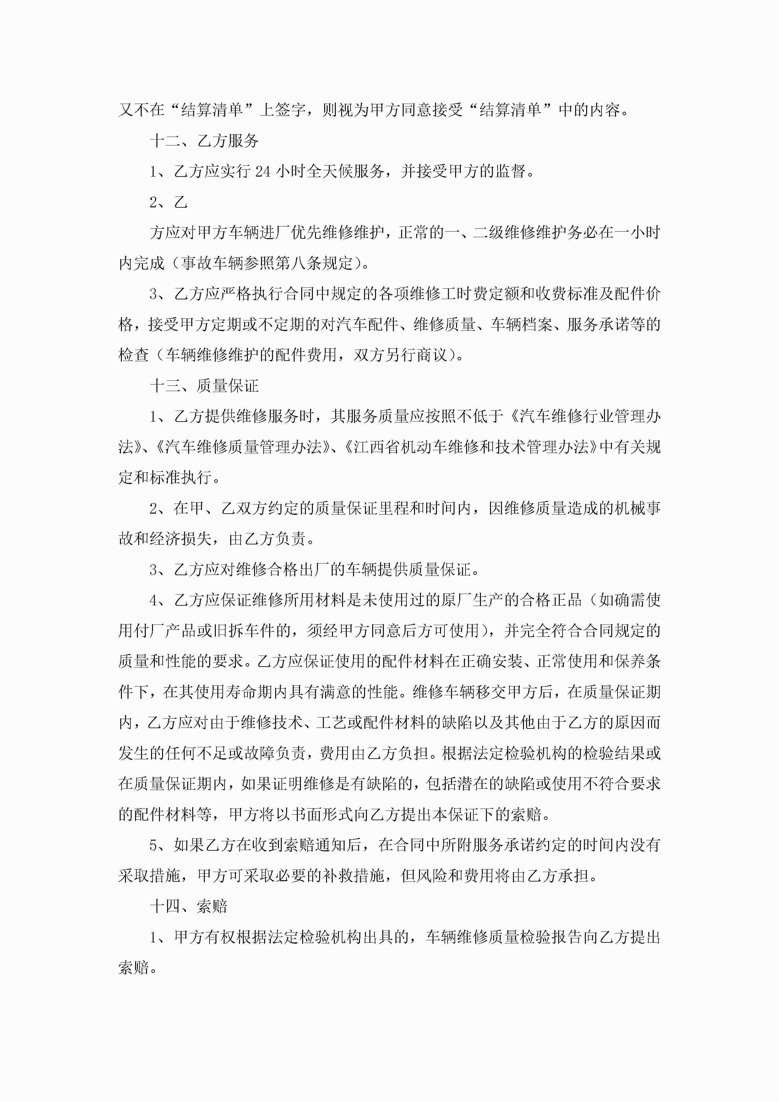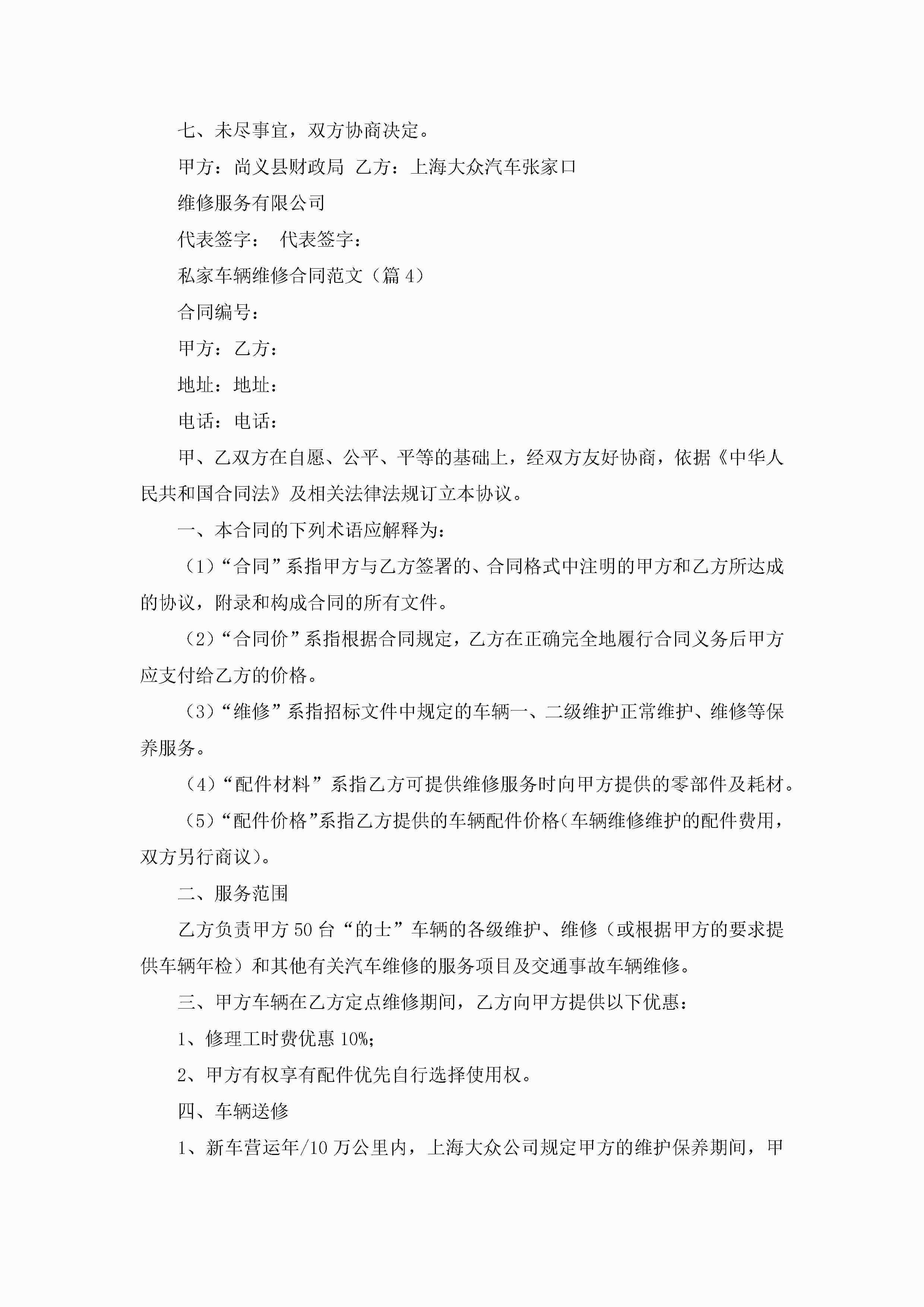 私家车辆维修合同范文7篇jugei3月23日 01:37发布关注198 私家车辆维修合同范文7篇此内容为付费资源,请付费后查看¥10.9 单篇文档限时特惠¥15个人会员开通企业会员开通立即下载无需登陆!可直接快捷下载单个模板付费资源© 版权声明THE ENDWord模板# 实用文档# 实用模板# 合同模板# 合同范本 如有问题,可点击最底部“联系我们”联系客服 分享QQ空间微博QQ好友海报分享复制链接收藏
