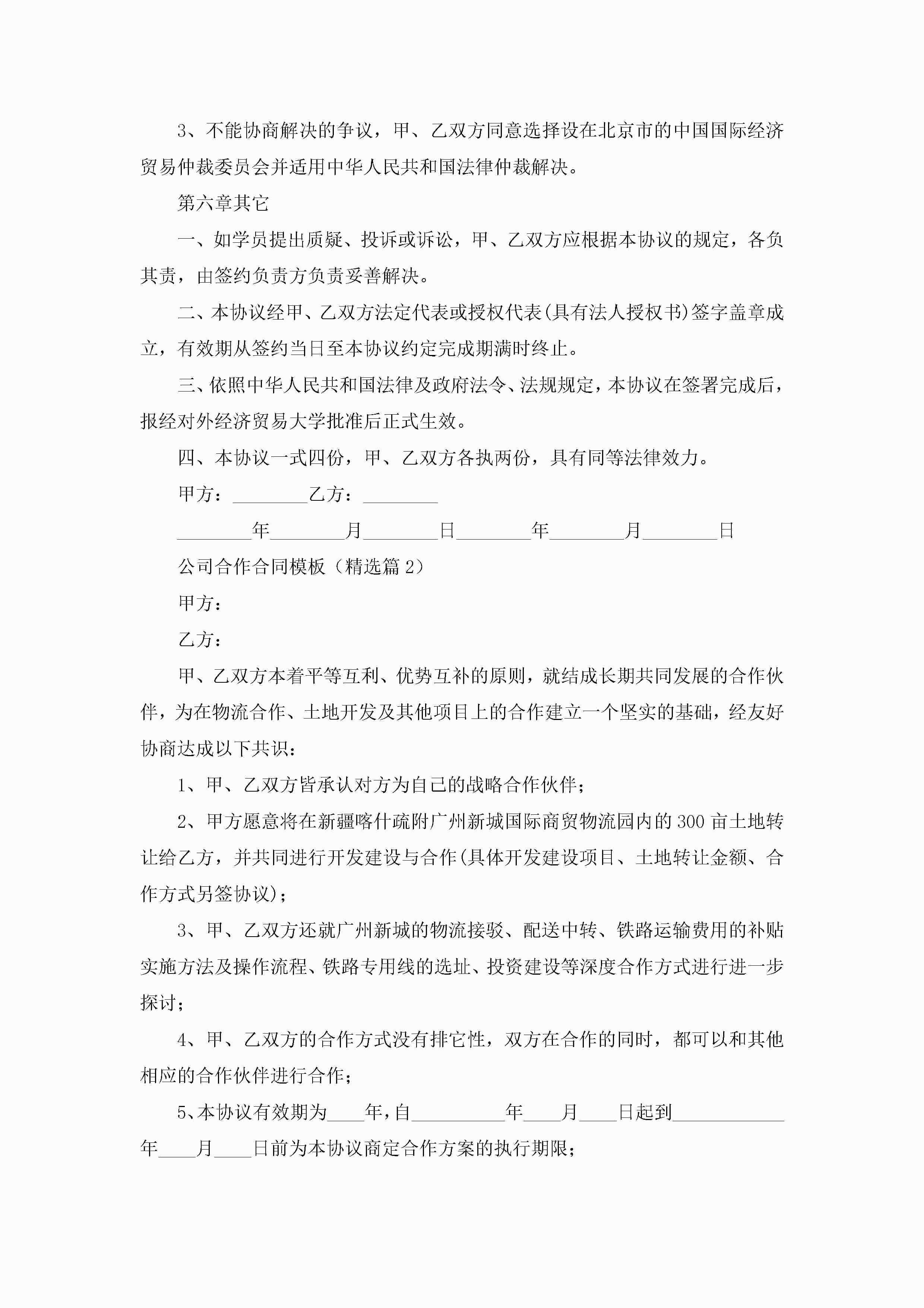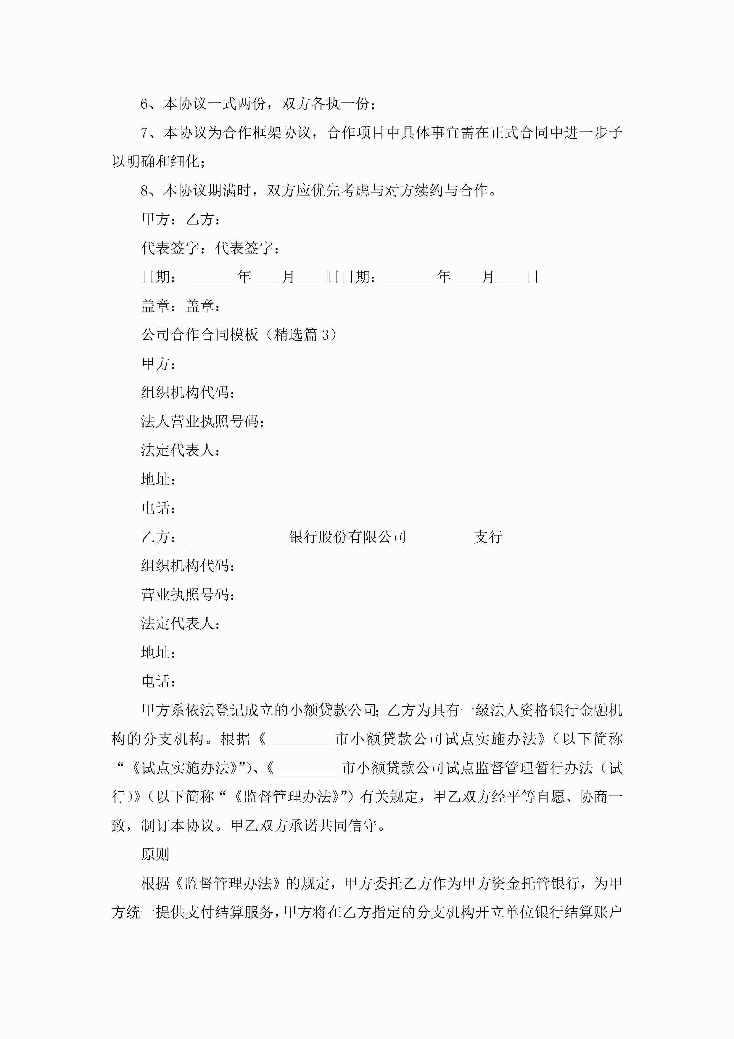 公司合作合同模板(优秀10篇)jugei3月23日 01:37发布关注308 公司合作合同模板(优秀10篇)此内容为付费资源,请付费后查看¥10.9 单篇文档限时特惠¥15个人会员开通企业会员开通立即下载无需登陆!可直接快捷下载单个模板付费资源© 版权声明THE ENDWord模板# 实用文档# 实用模板# 合同模板# 合同范本 如有问题,可点击最底部“联系我们”联系客服 分享QQ空间微博QQ好友海报分享复制链接收藏