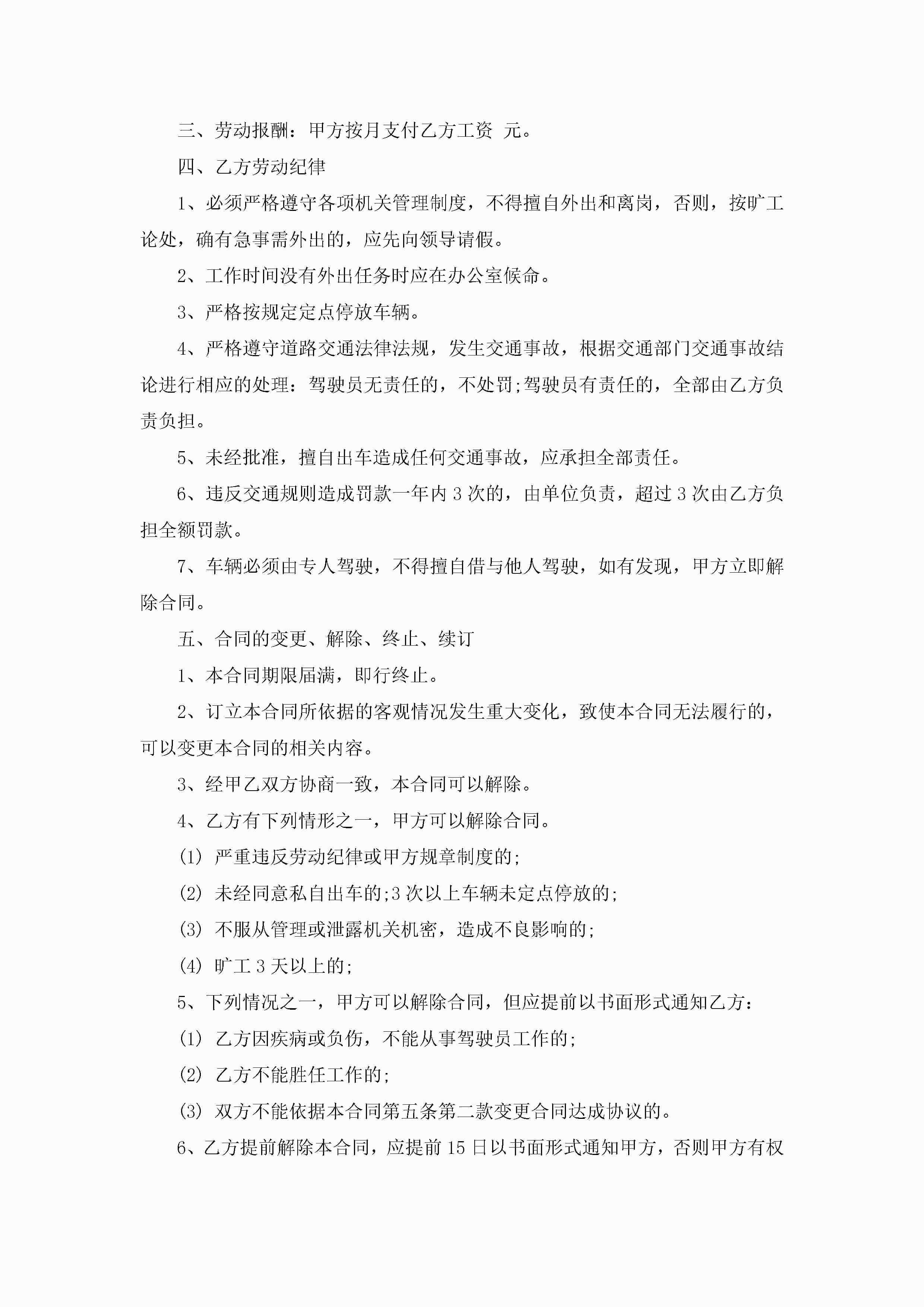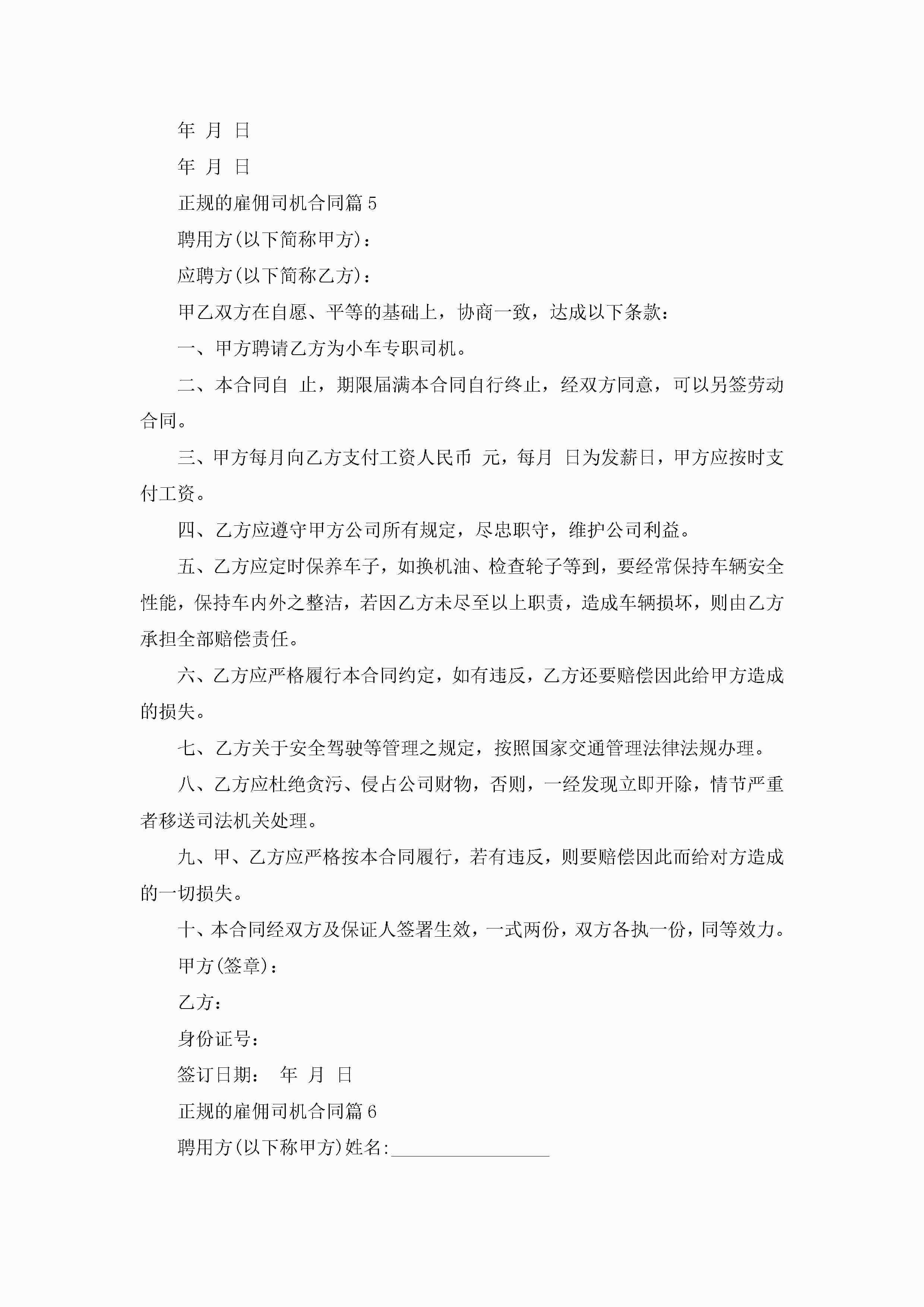 正规的雇佣司机合同7篇jugei3月23日 01:37发布关注219 正规的雇佣司机合同7篇此内容为付费资源,请付费后查看¥10.9 单篇文档限时特惠¥15个人会员开通企业会员开通立即下载无需登陆!可直接快捷下载单个模板付费资源© 版权声明THE ENDWord模板# 实用文档# 实用模板# 合同模板# 合同范本# 正规的雇佣司机合同7篇 如有问题,可点击最底部“联系我们”联系客服 分享QQ空间微博QQ好友海报分享复制链接收藏