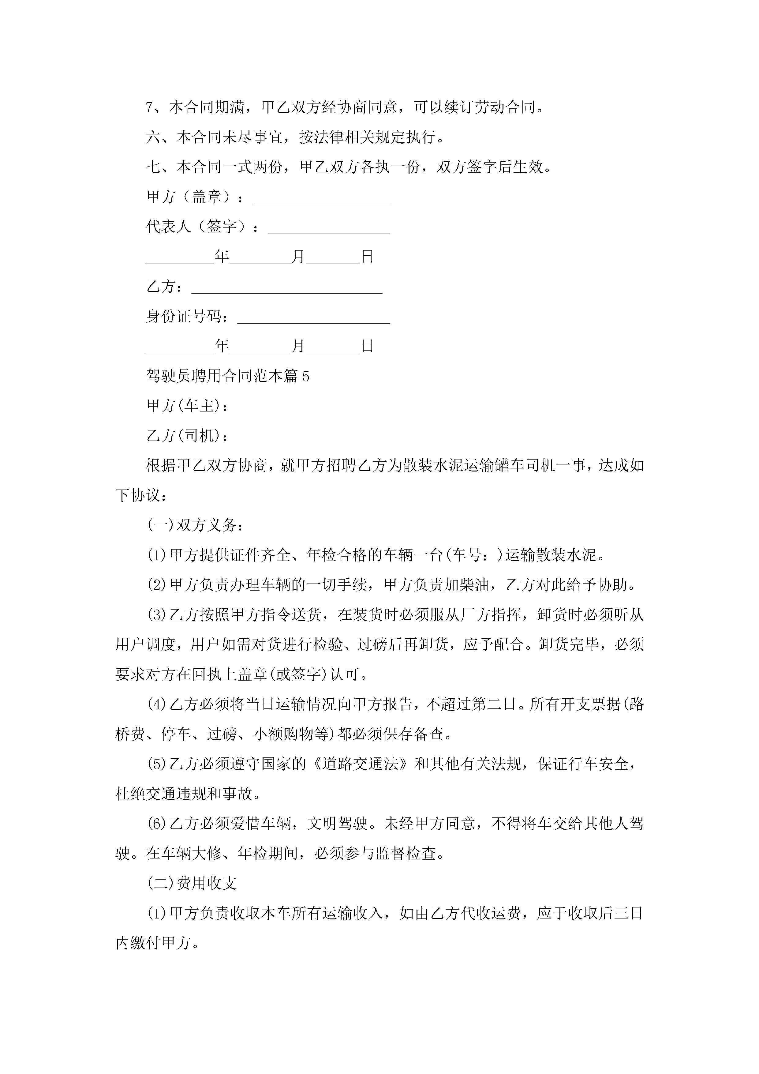 驾驶员聘用合同范本【精选8篇】jugei3月23日 01:37发布关注236 驾驶员聘用合同范本【精选8篇】此内容为付费资源,请付费后查看¥10.9 单篇文档限时特惠¥15个人会员开通企业会员开通立即下载无需登陆!可直接快捷下载单个模板付费资源© 版权声明THE ENDWord模板# 实用文档# 实用模板# 合同模板# 合同范本# 驾驶员聘用合同范本【8篇】 如有问题,可点击最底部“联系我们”联系客服 分享QQ空间微博QQ好友海报分享复制链接收藏