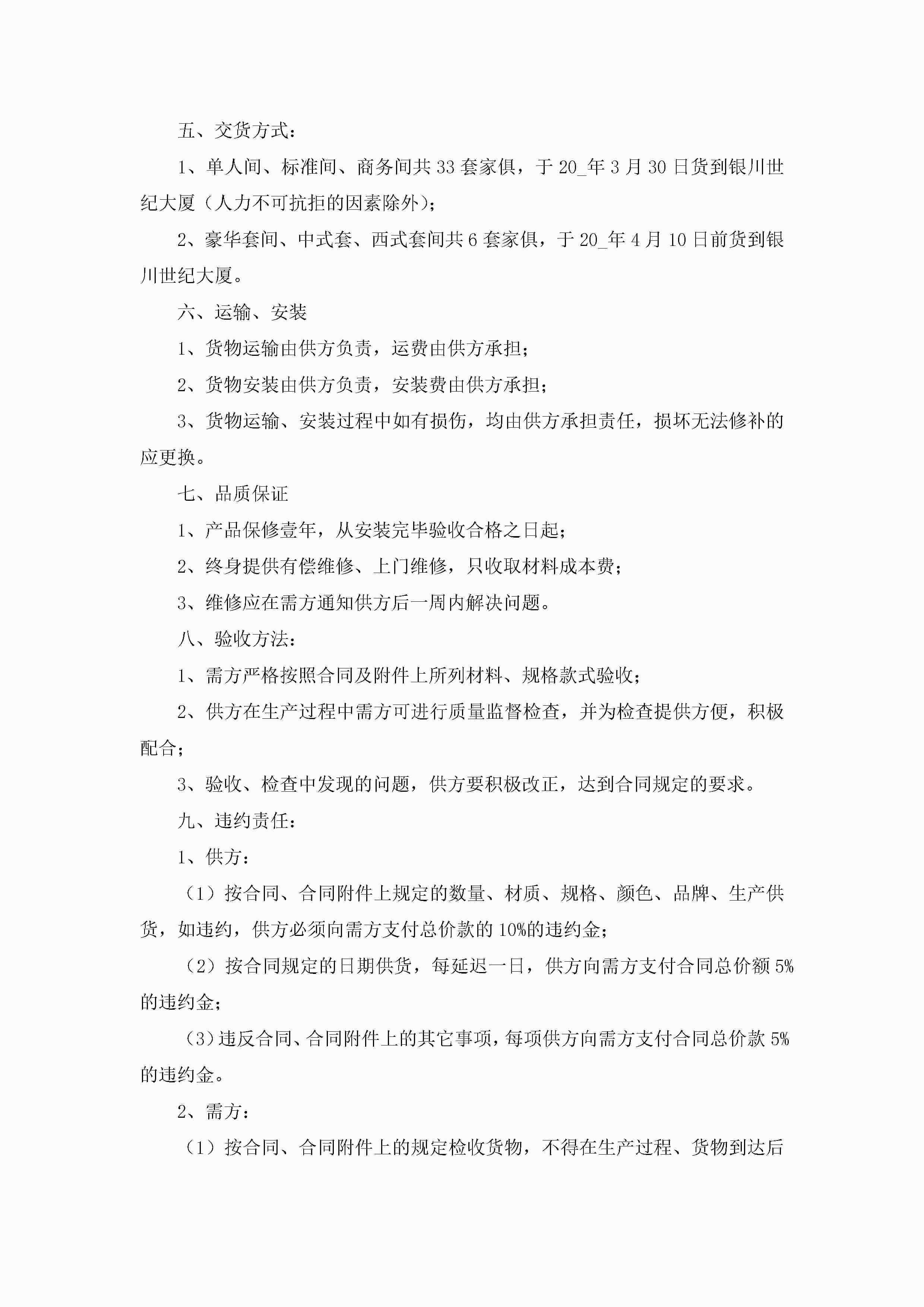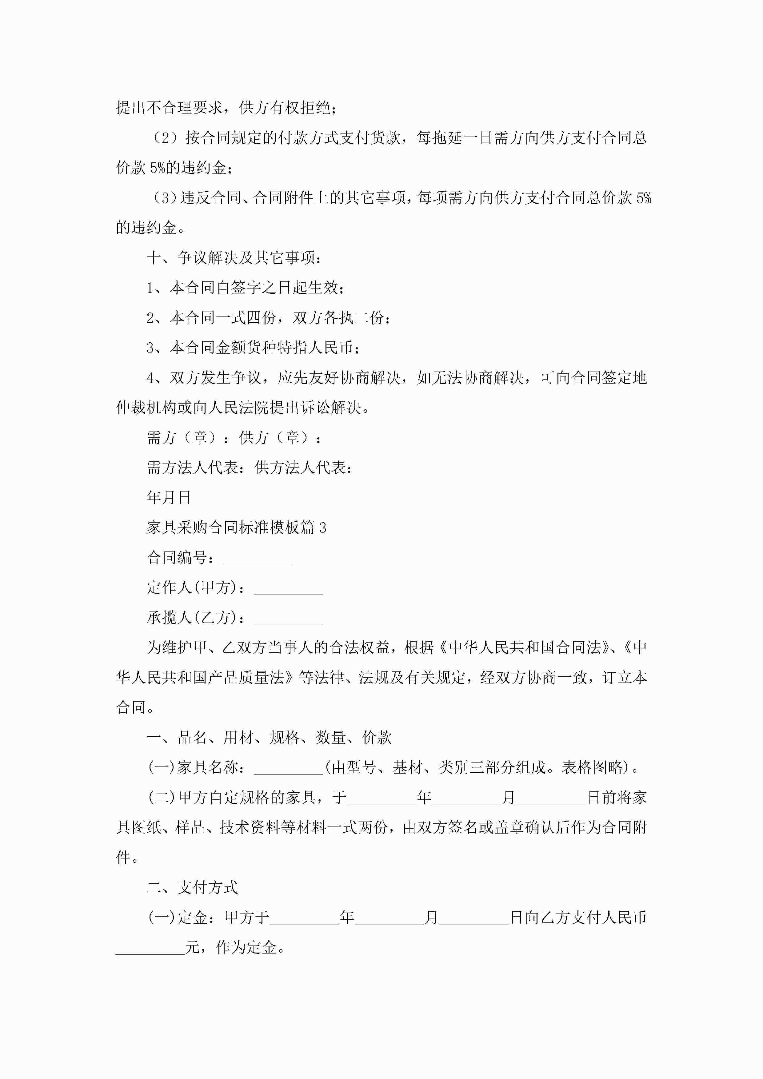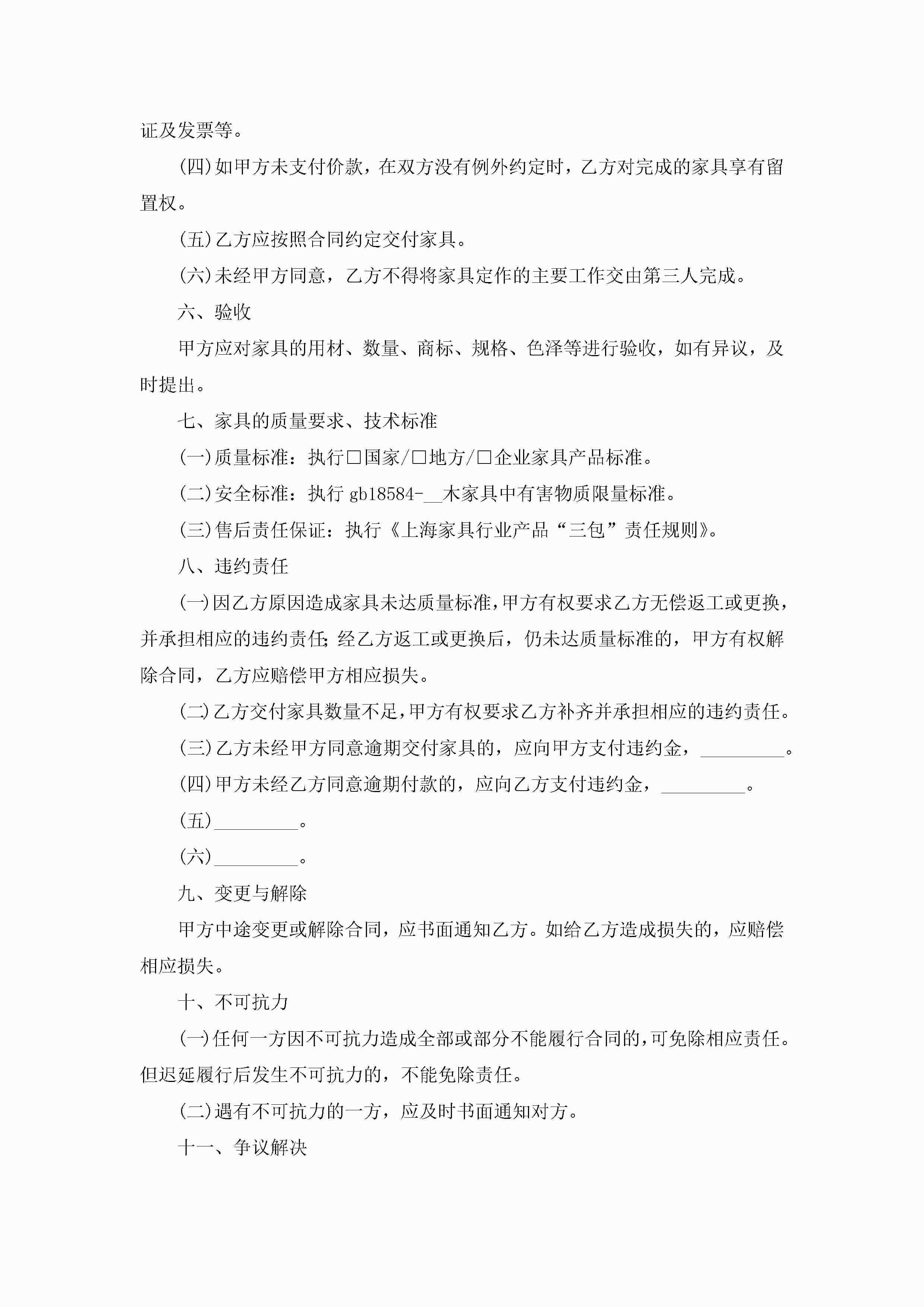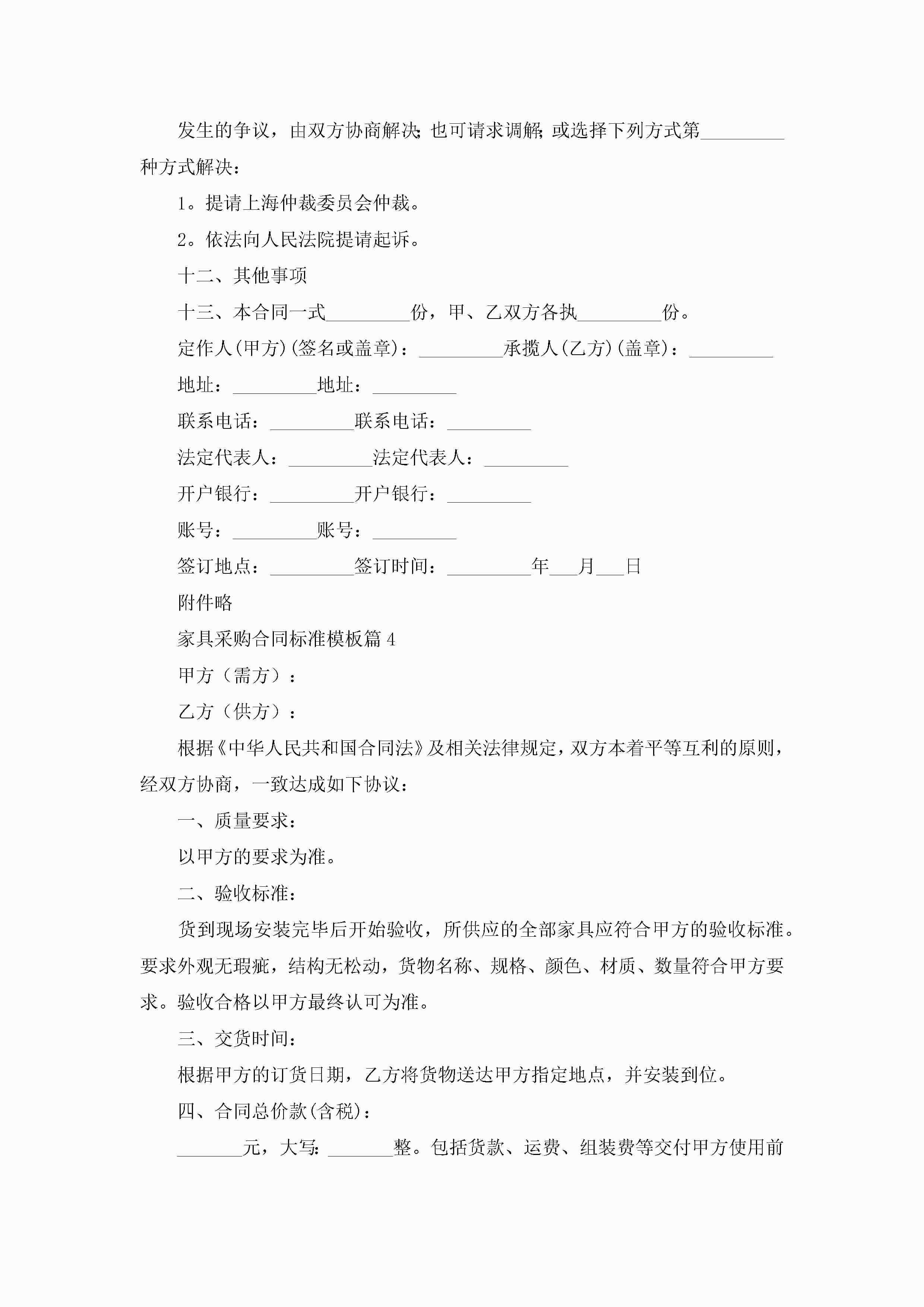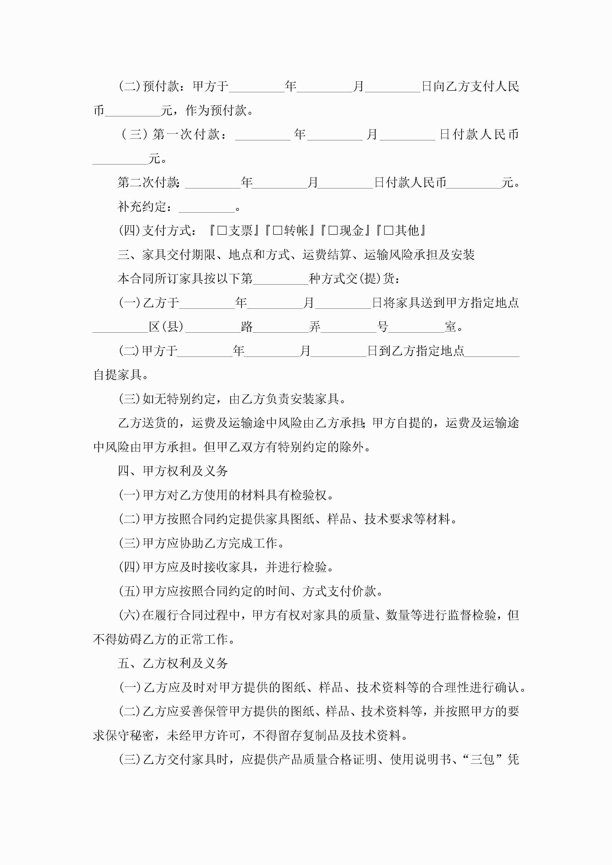 家具采购合同标准模板【通用8篇】jugei3月23日 01:37发布关注336 家具采购合同标准模板【通用8篇】此内容为付费资源,请付费后查看¥10.9 单篇文档限时特惠¥15个人会员开通企业会员开通立即下载无需登陆!可直接快捷下载单个模板付费资源© 版权声明THE ENDWord模板# 实用文档# 实用模板# 合同模板# 合同范本# 家具采购合同标准模板 如有问题,可点击最底部“联系我们”联系客服 分享QQ空间微博QQ好友海报分享复制链接收藏