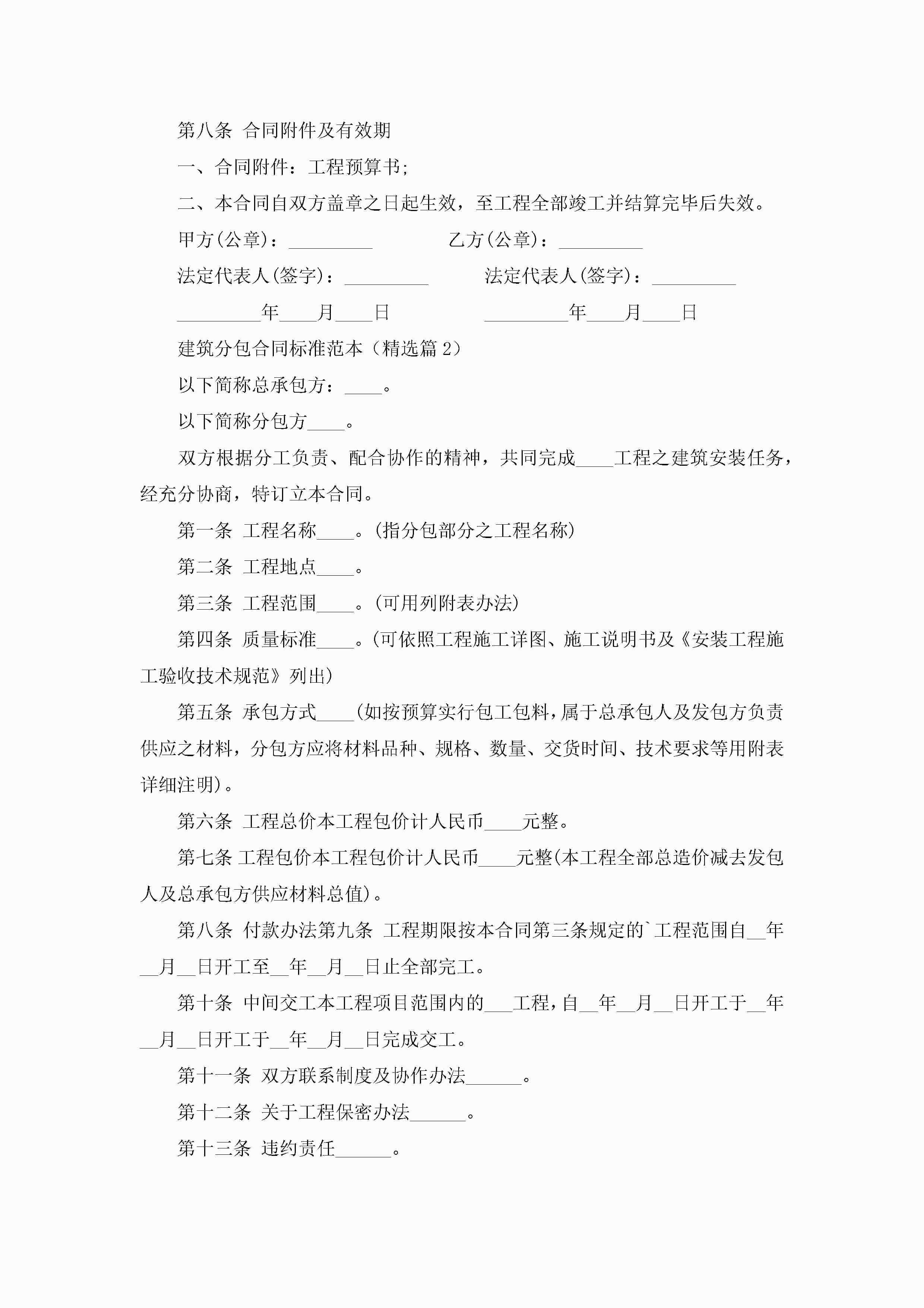 建筑分包合同标准范本【通用8篇】jugei3月23日 01:37发布关注213 建筑分包合同标准范本【通用8篇】此内容为付费资源,请付费后查看¥10.9 单篇文档限时特惠¥15个人会员开通企业会员开通立即下载无需登陆!可直接快捷下载单个模板付费资源© 版权声明THE ENDWord模板# 实用文档# 合同模板# 合同范本# 建筑分包合同标准范本 如有问题,可点击最底部“联系我们”联系客服 分享QQ空间微博QQ好友海报分享复制链接收藏