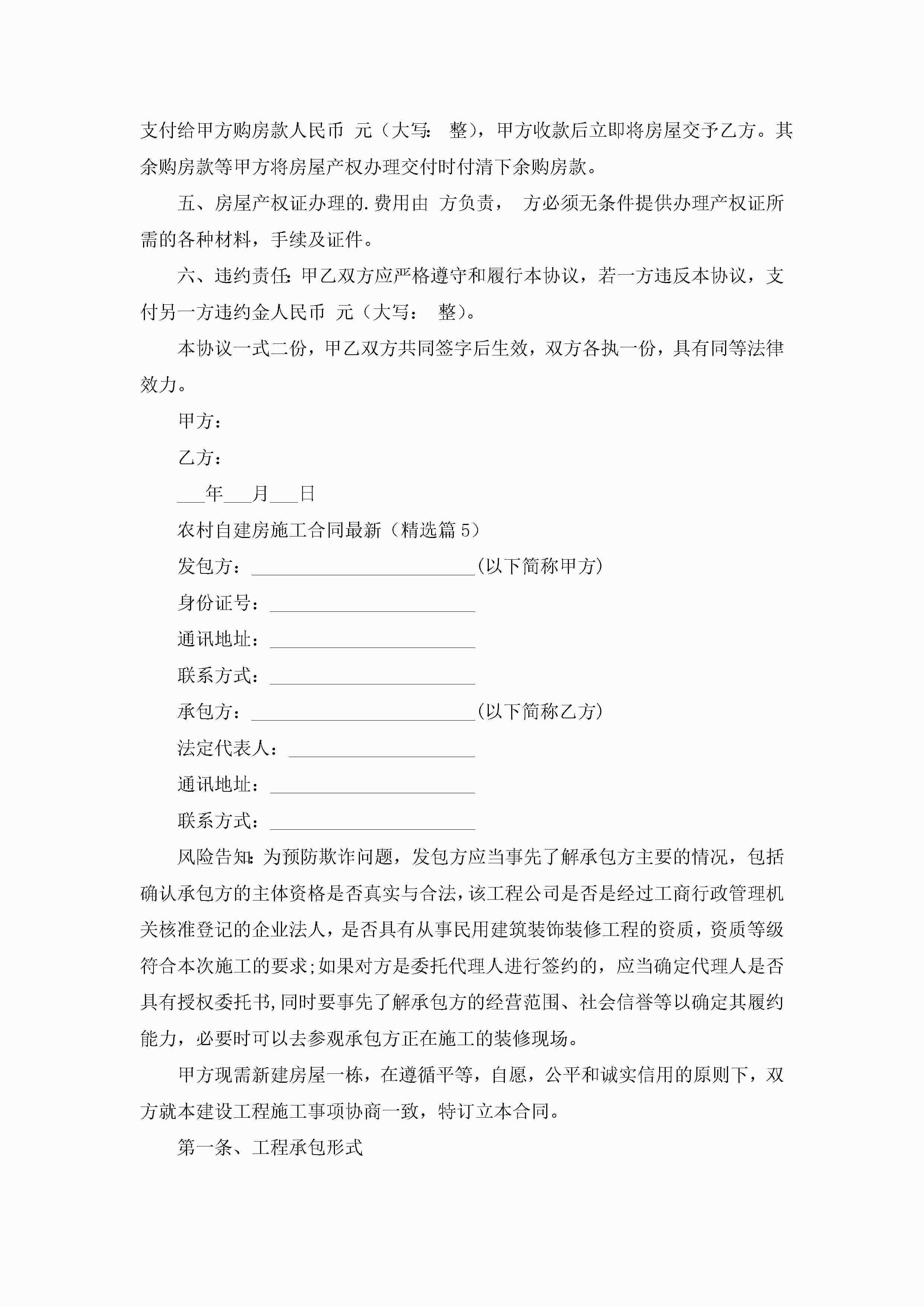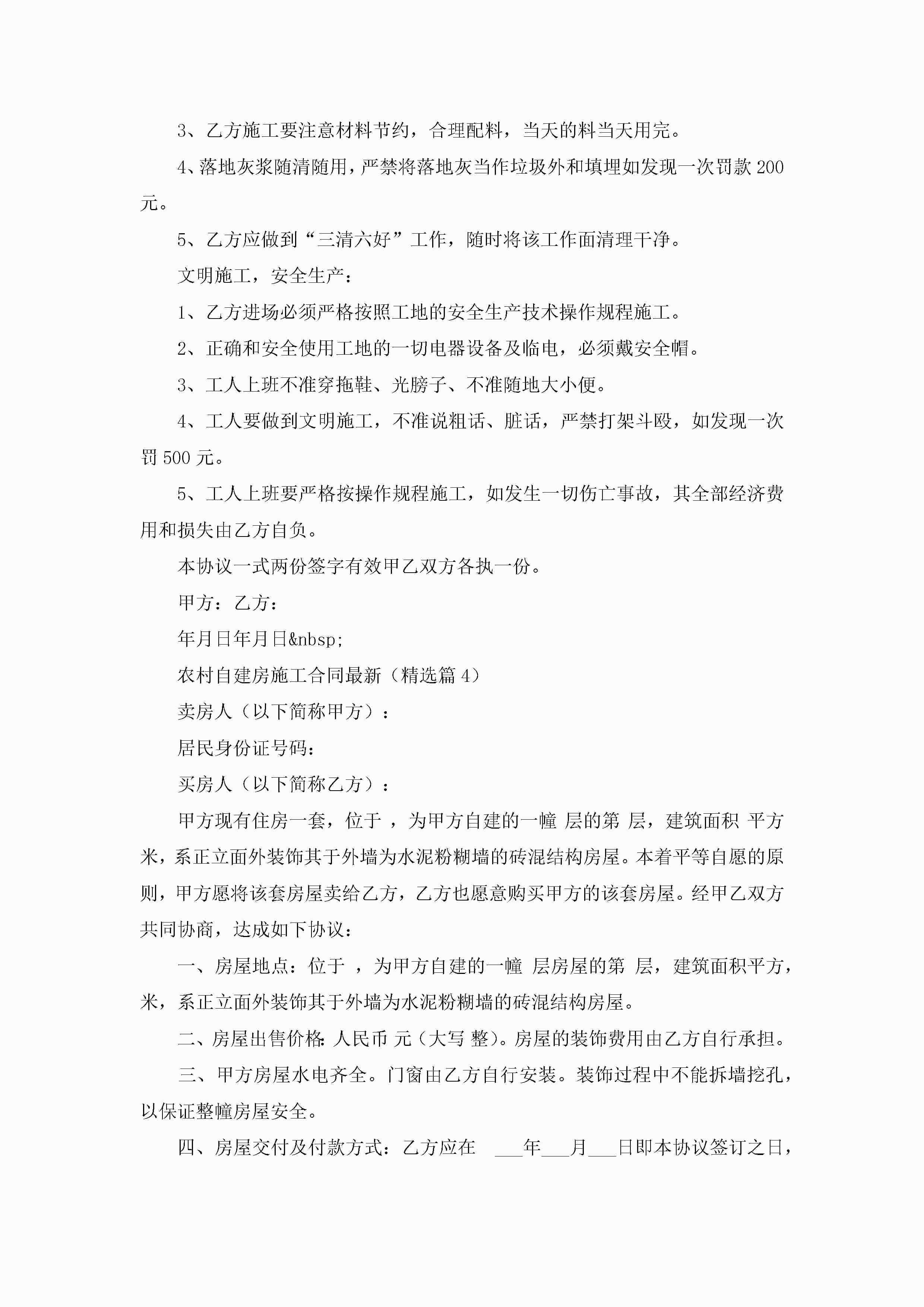 农村自建房施工合同最新【精选7篇】jugei3月23日 01:37发布关注201 农村自建房施工合同最新【精选7篇】此内容为付费资源,请付费后查看¥10.9 单篇文档限时特惠¥15个人会员开通企业会员开通立即下载无需登陆!可直接快捷下载单个模板付费资源© 版权声明THE ENDWord模板# 实用文档# 合同模板# 合同范本# 农村自建房施工合同最新 如有问题,可点击最底部“联系我们”联系客服 分享QQ空间微博QQ好友海报分享复制链接收藏