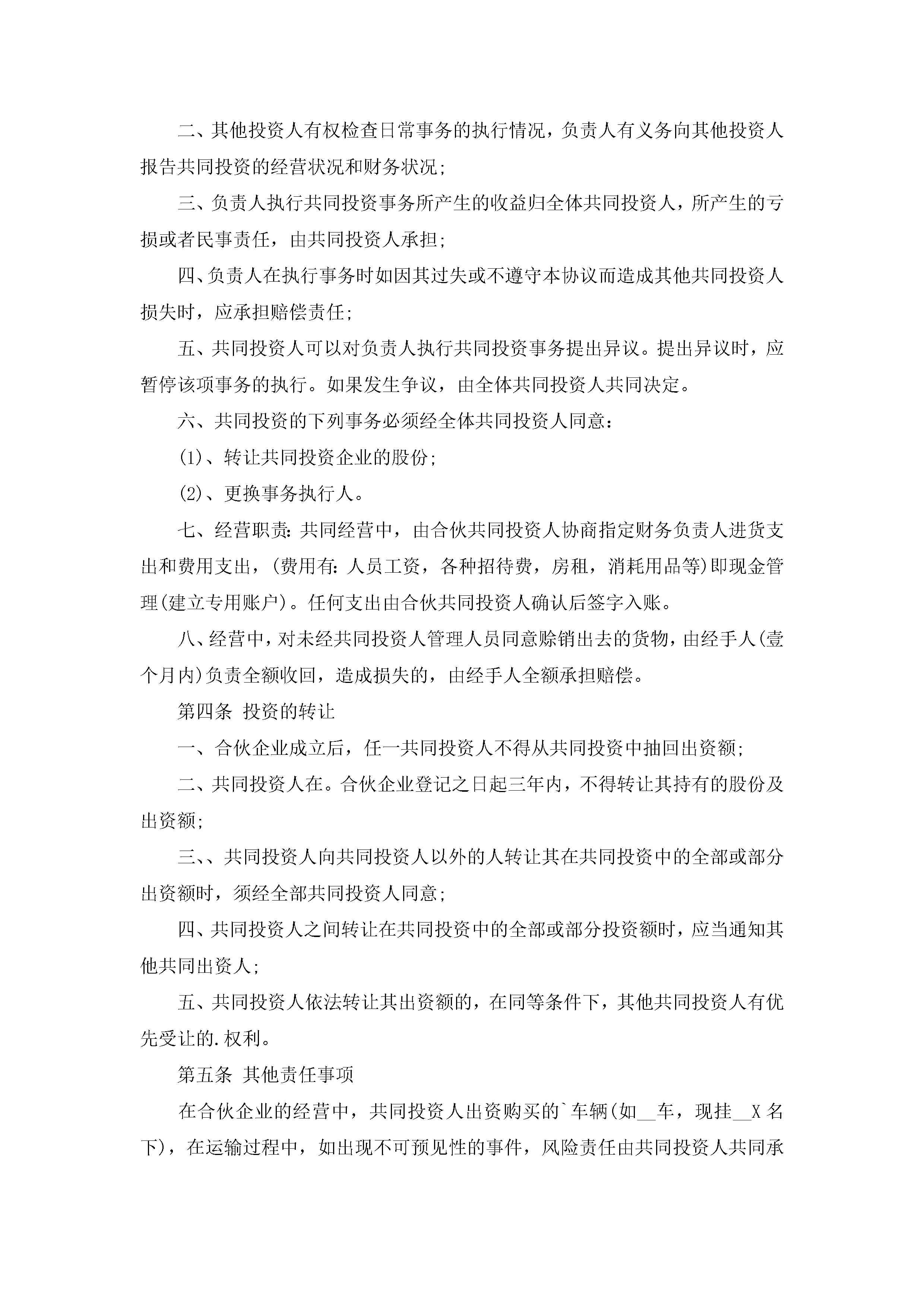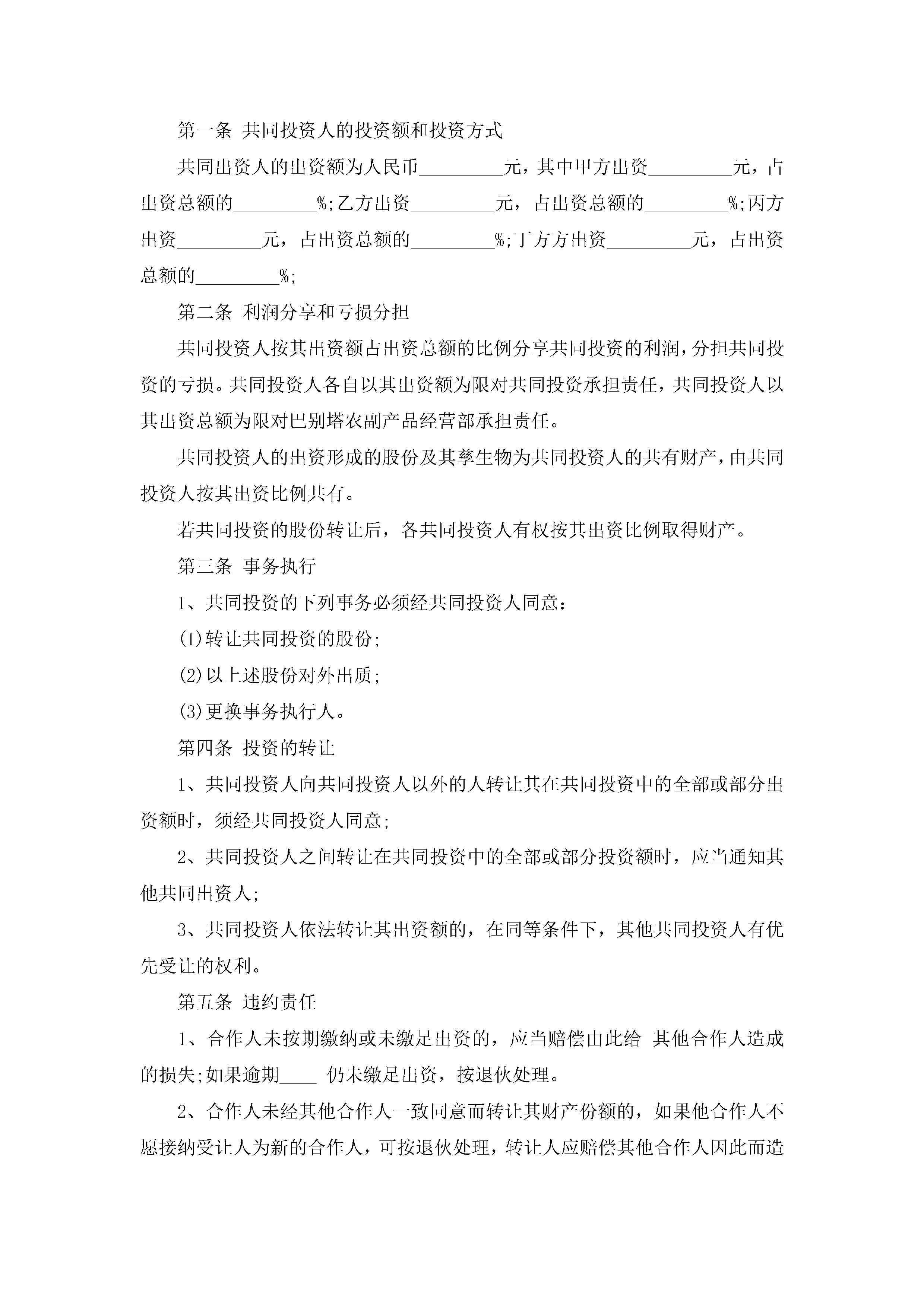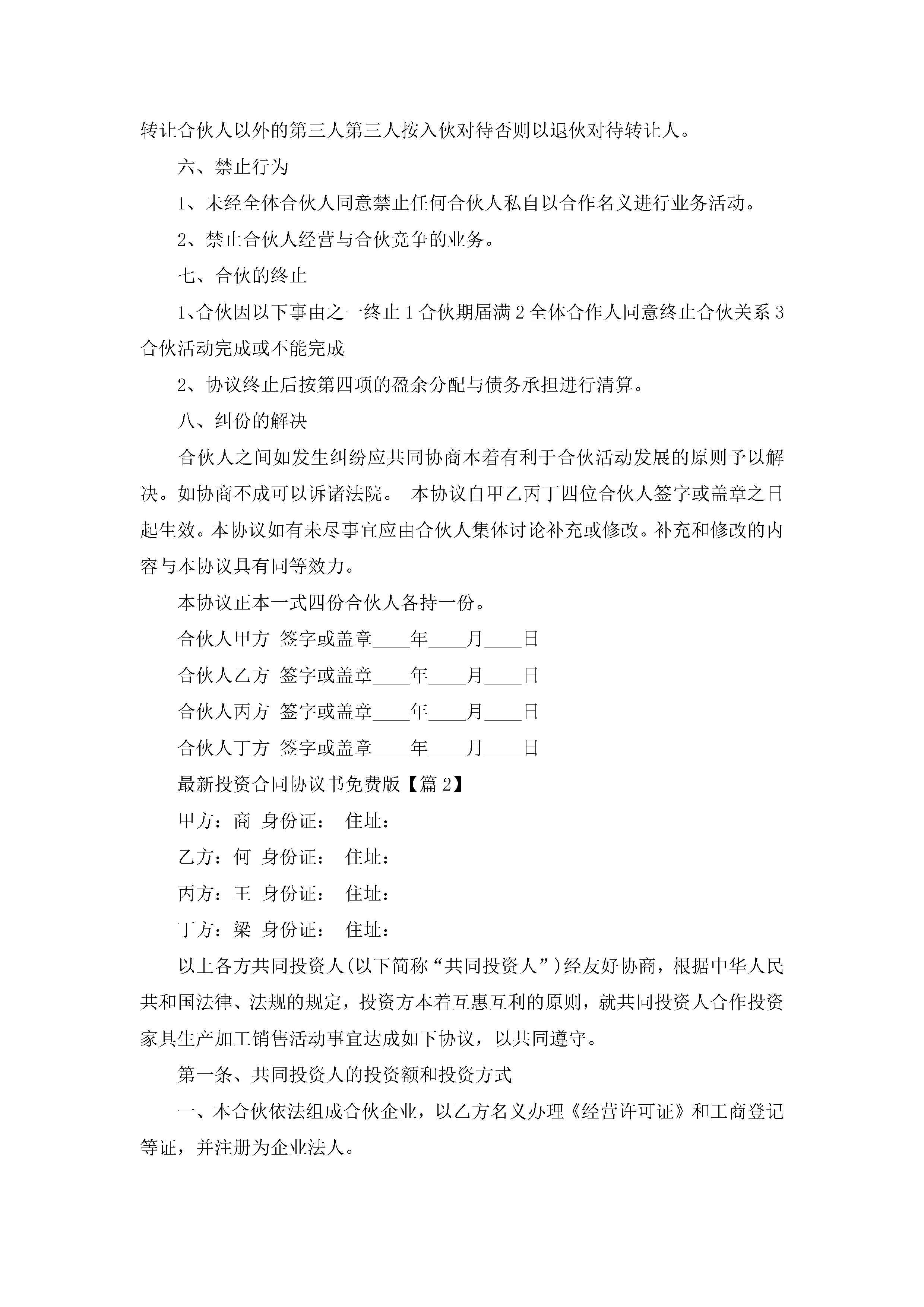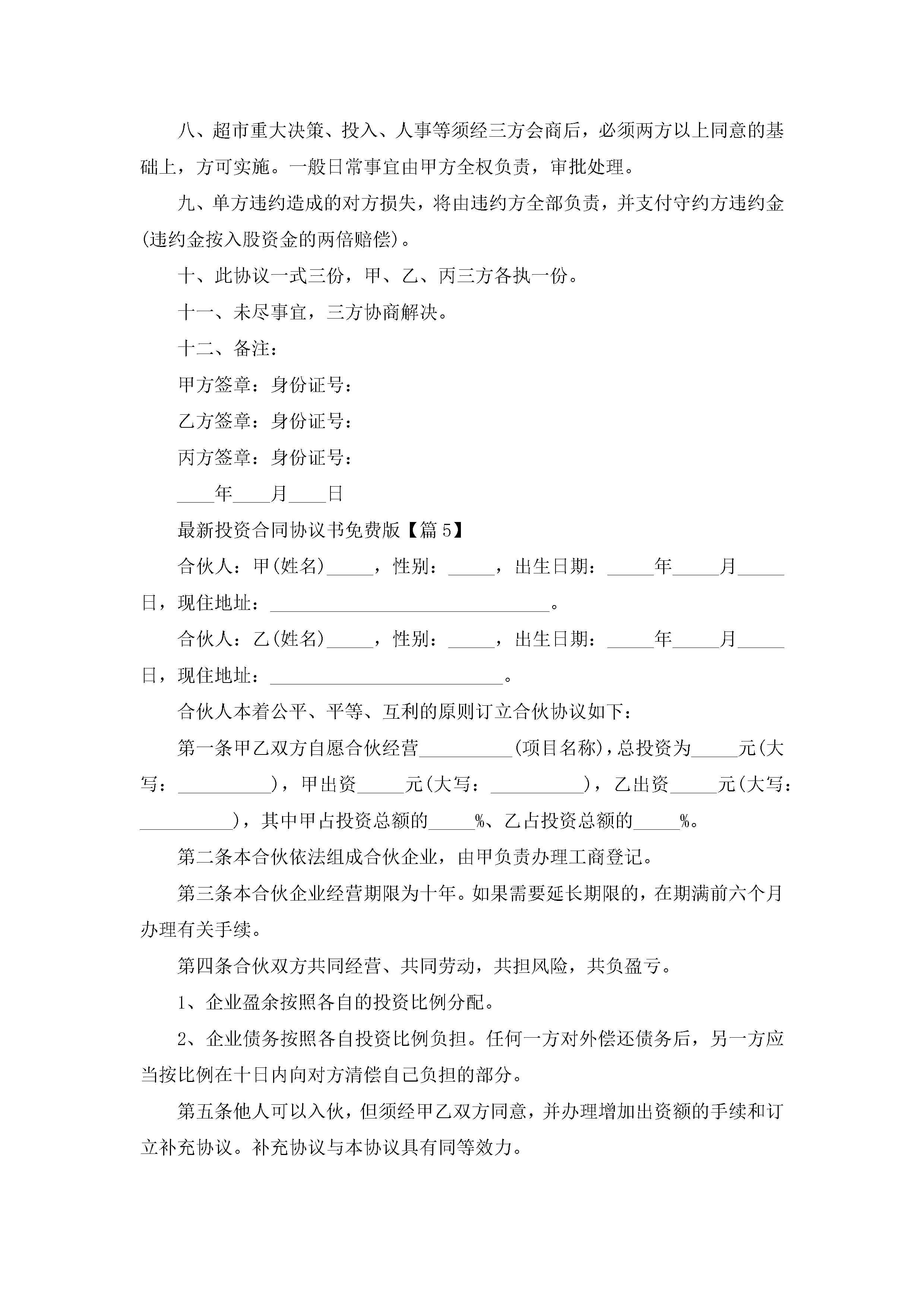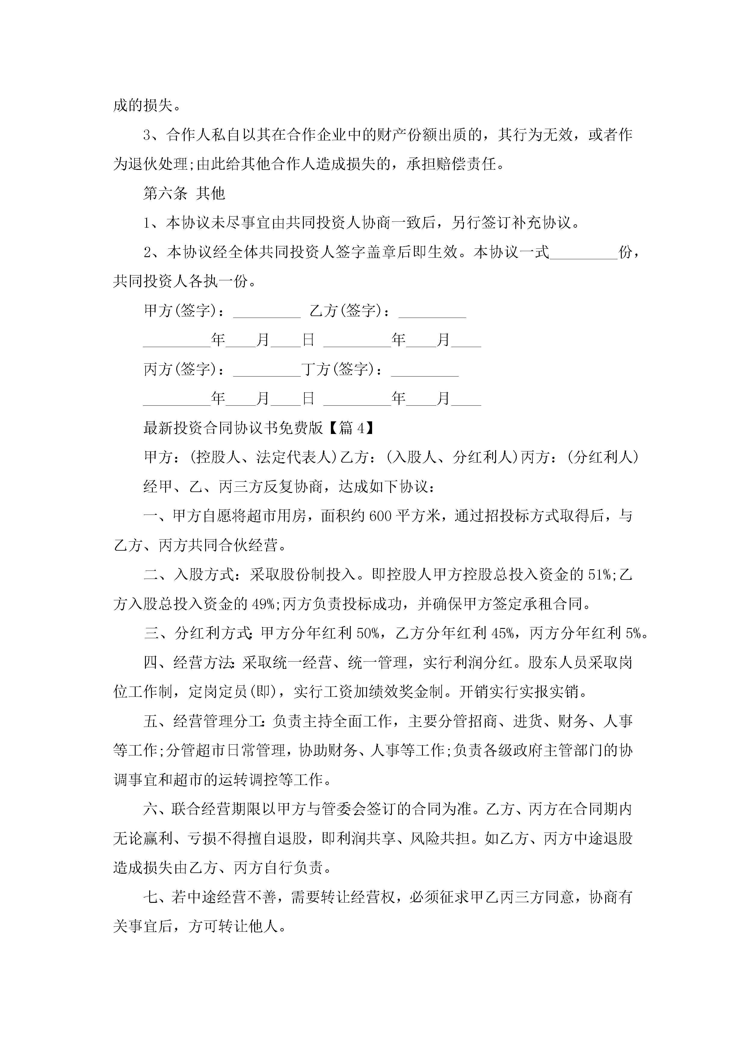 最新投资合同协议书免费版(11篇)jugei3月23日 01:37发布关注217 最新投资合同协议书免费版(11篇)此内容为付费资源,请付费后查看¥10.9 单篇文档限时特惠¥15个人会员开通企业会员开通立即下载无需登陆!可直接快捷下载单个模板付费资源© 版权声明THE ENDWord模板# 实用文档# 合同模板# 合同范本# 最新投资合同协议书免费版 如有问题,可点击最底部“联系我们”联系客服 分享QQ空间微博QQ好友海报分享复制链接收藏