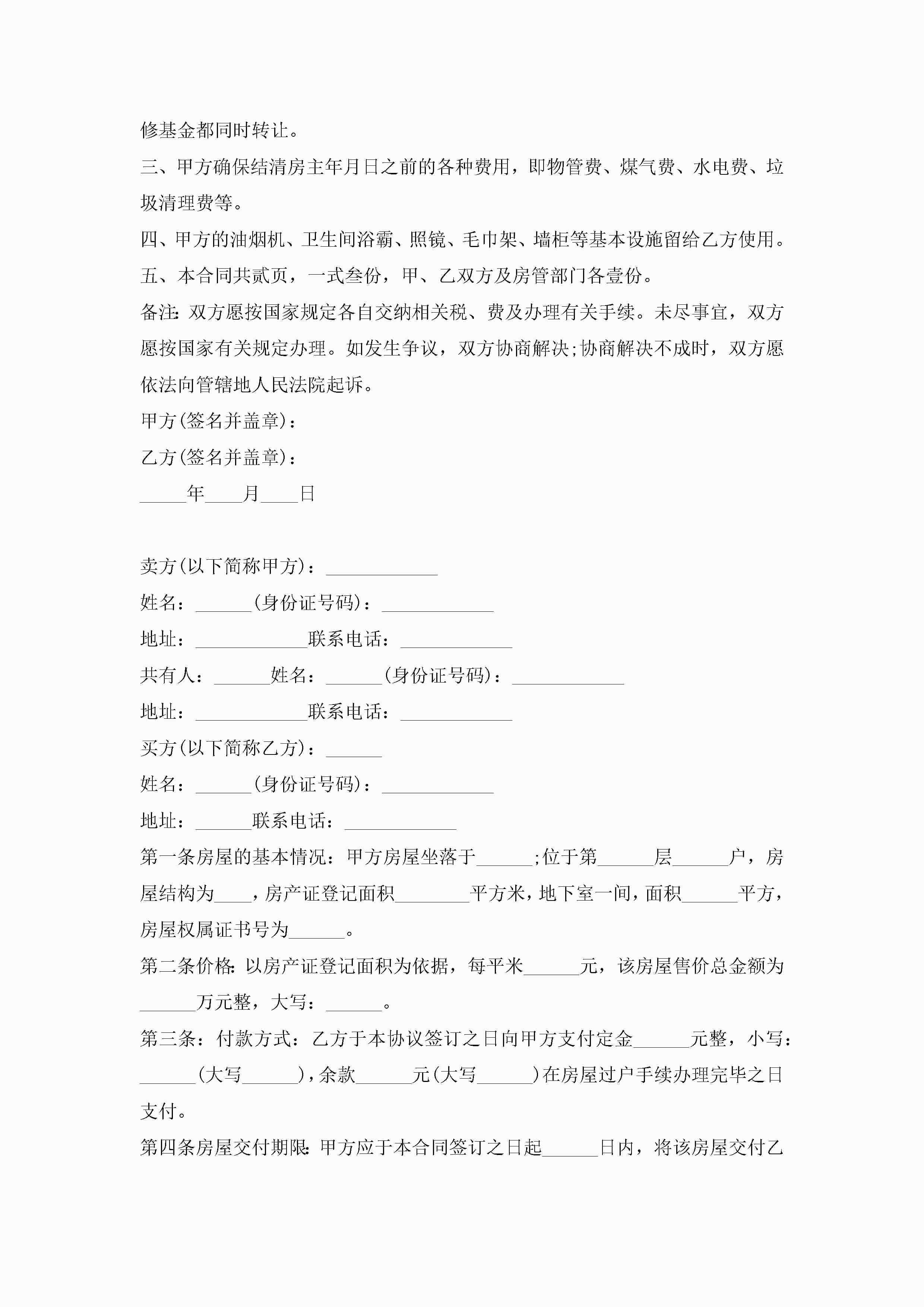 烟台市二手房买卖合同3篇模板jugei3月23日 01:37发布关注224 烟台市二手房买卖合同3篇模板此内容为付费资源,请付费后查看¥10.9 单篇文档限时特惠¥15个人会员开通企业会员开通立即下载无需登陆!可直接快捷下载单个模板付费资源© 版权声明THE ENDWord模板# 实用文档# 实用模板# 合同模板# 买卖合同 如有问题,可点击最底部“联系我们”联系客服 分享QQ空间微博QQ好友海报分享复制链接收藏