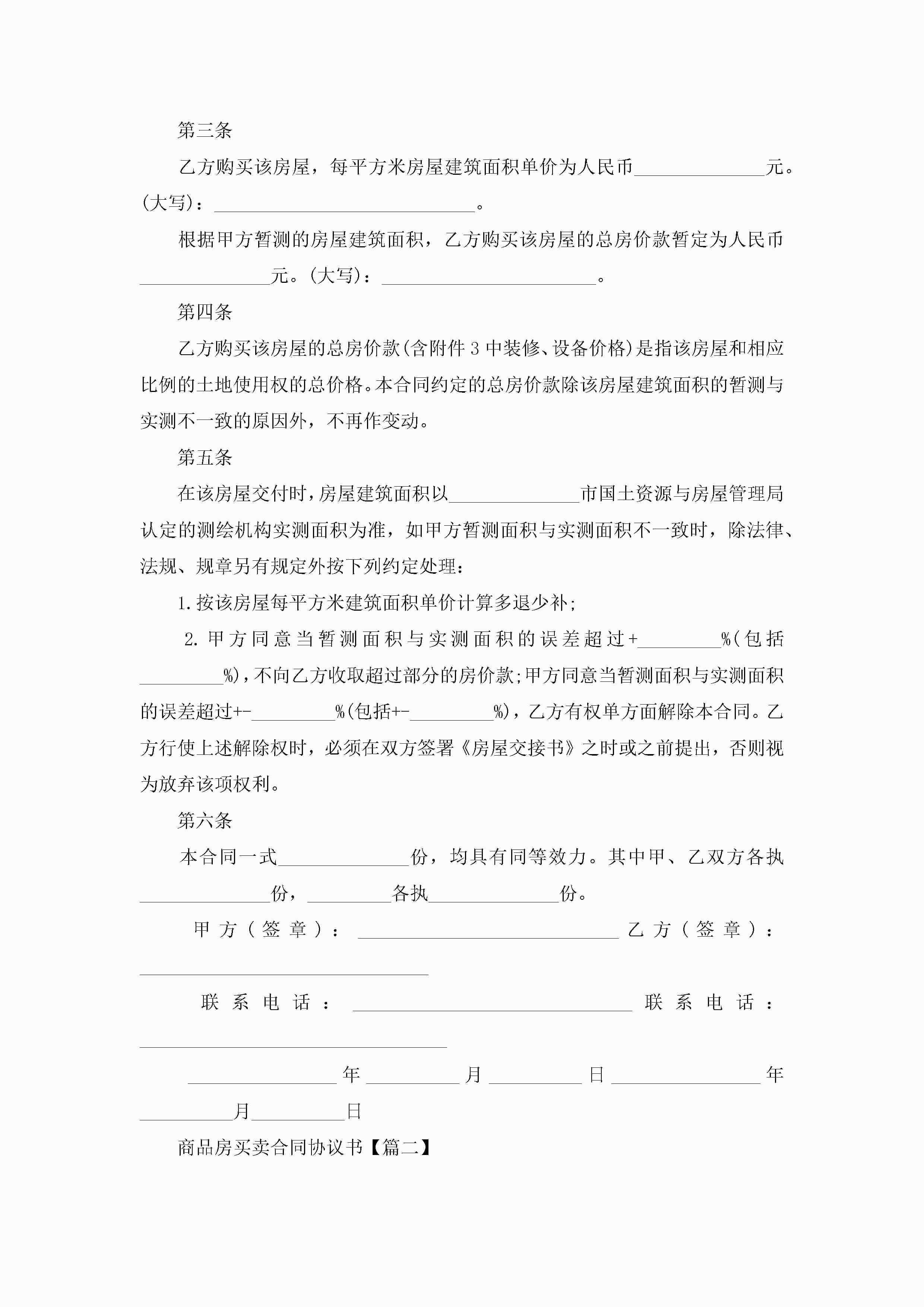 商品房买卖合同协议书范本5篇2022jugei3月23日 01:37发布关注189 商品房买卖合同协议书范本5篇2022此内容为付费资源,请付费后查看¥10.9 单篇文档限时特惠¥15个人会员开通企业会员开通立即下载无需登陆!可直接快捷下载单个模板付费资源© 版权声明THE ENDWord模板# 实用文档# 实用模板# 合同模板# 买卖合同 如有问题,可点击最底部“联系我们”联系客服 分享QQ空间微博QQ好友海报分享复制链接收藏