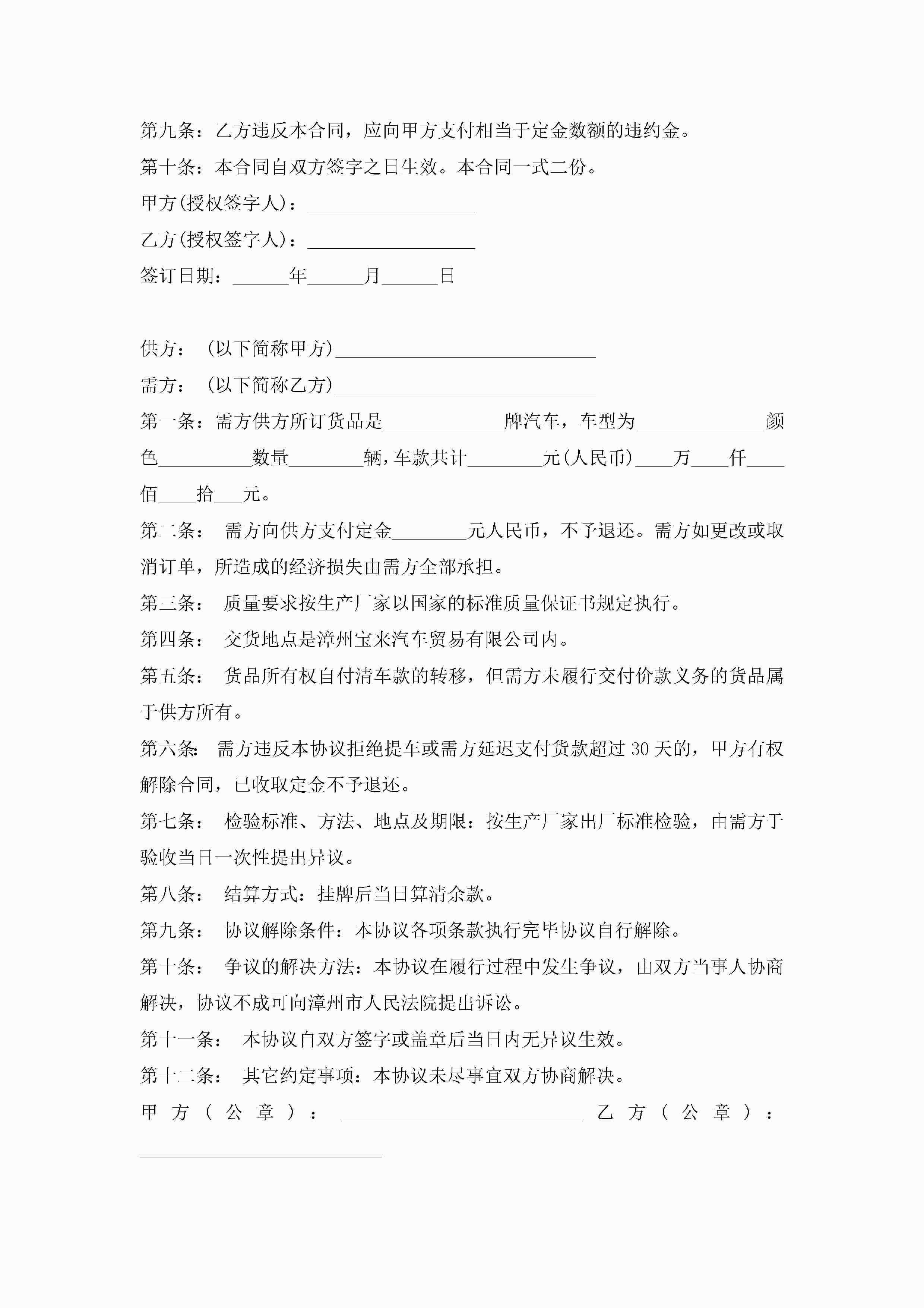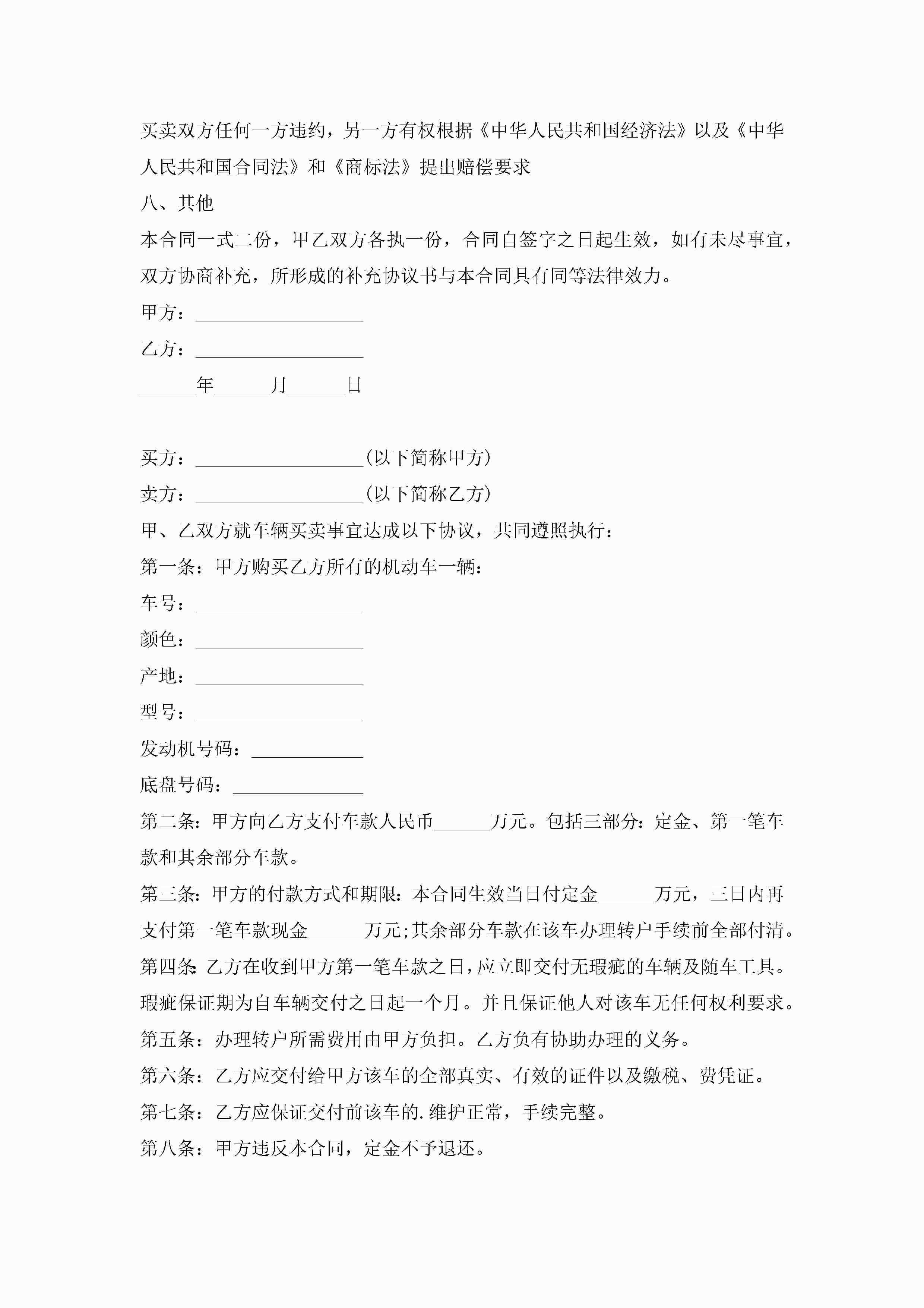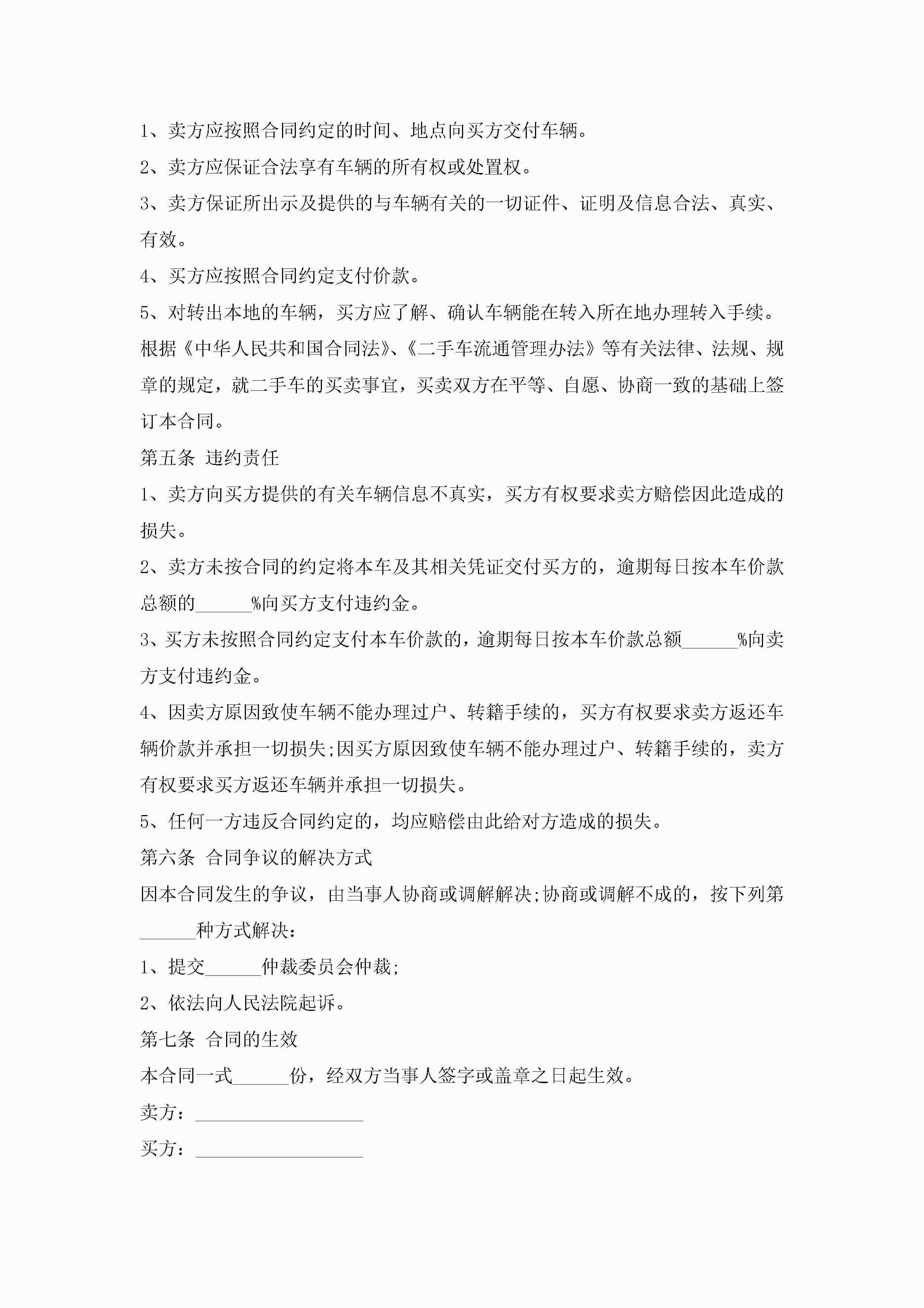 二手车买卖合同协议书范本5篇2022jugei3月23日 01:37发布关注186 二手车买卖合同协议书范本5篇2022此内容为付费资源,请付费后查看¥10.9 单篇文档限时特惠¥15个人会员开通企业会员开通立即下载无需登陆!可直接快捷下载单个模板付费资源© 版权声明THE ENDWord模板# 实用文档# 实用模板# 合同模板# 买卖合同 如有问题,可点击最底部“联系我们”联系客服 分享QQ空间微博QQ好友海报分享复制链接收藏