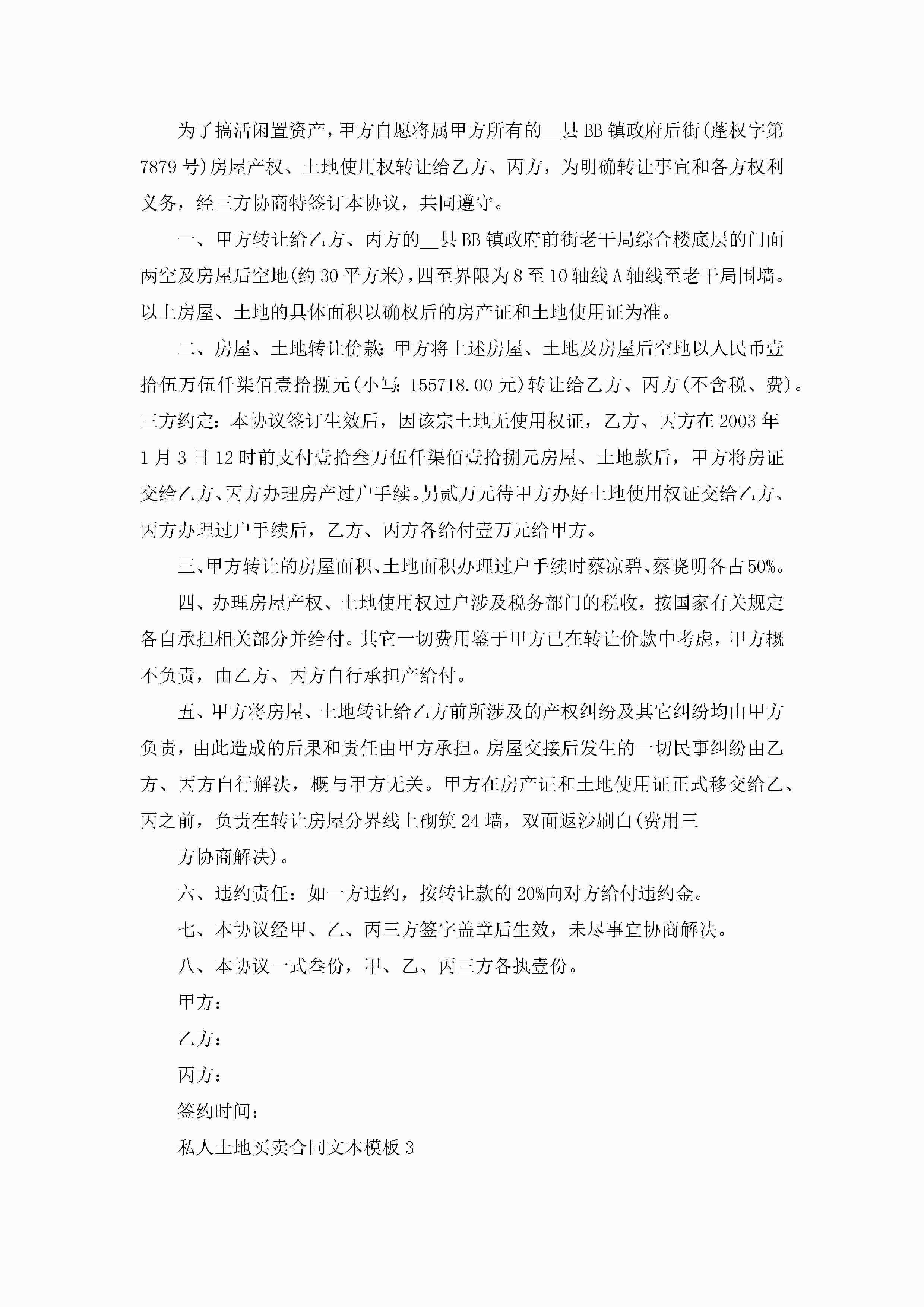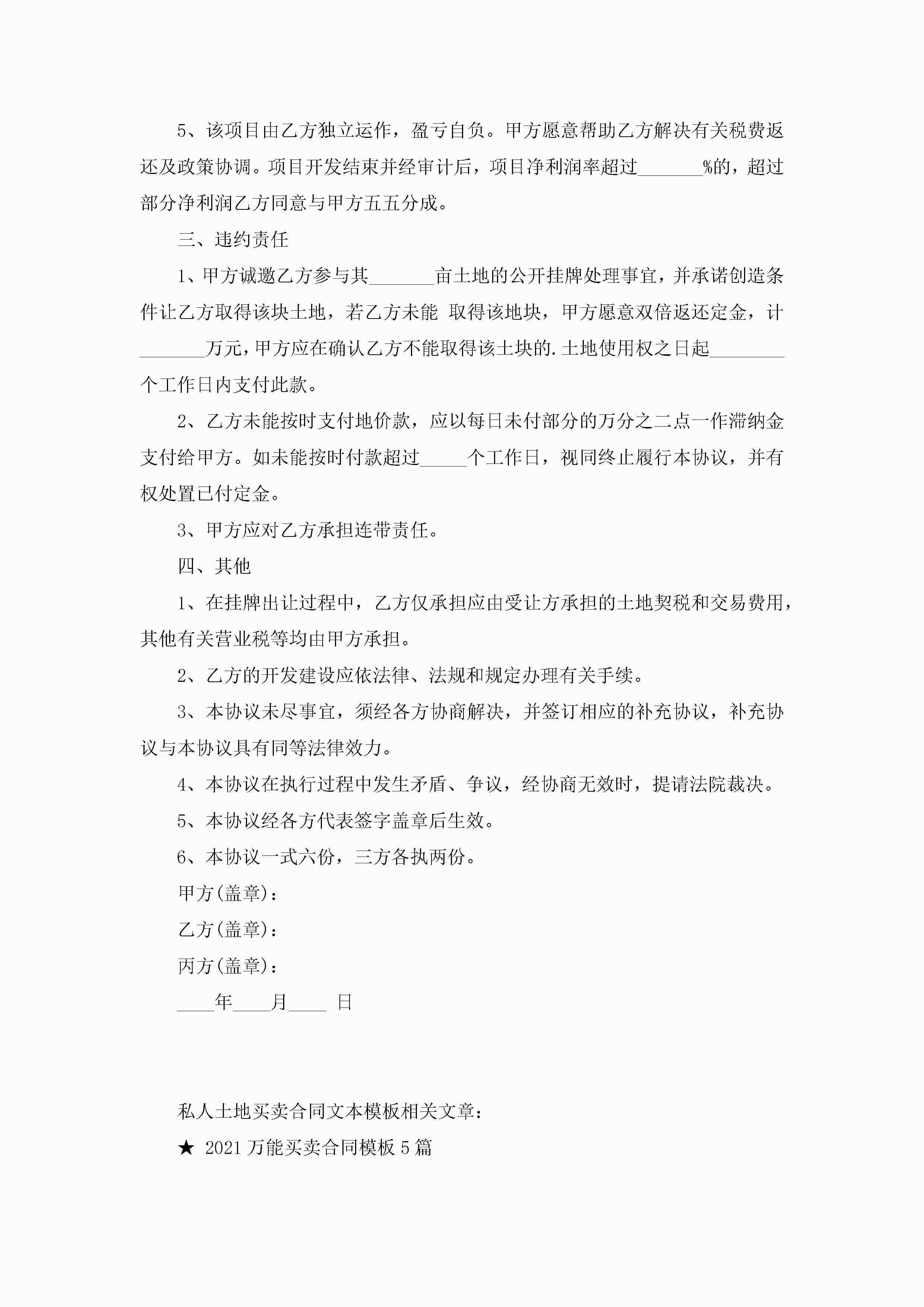 私人土地买卖合同文本模板3篇jugei3月23日 01:37发布关注222 私人土地买卖合同文本模板3篇此内容为付费资源,请付费后查看¥10.9 单篇文档限时特惠¥15个人会员开通企业会员开通立即下载无需登陆!可直接快捷下载单个模板付费资源© 版权声明THE ENDWord模板# 实用文档# 实用模板# 合同模板# 买卖合同 如有问题,可点击最底部“联系我们”联系客服 分享QQ空间微博QQ好友海报分享复制链接收藏