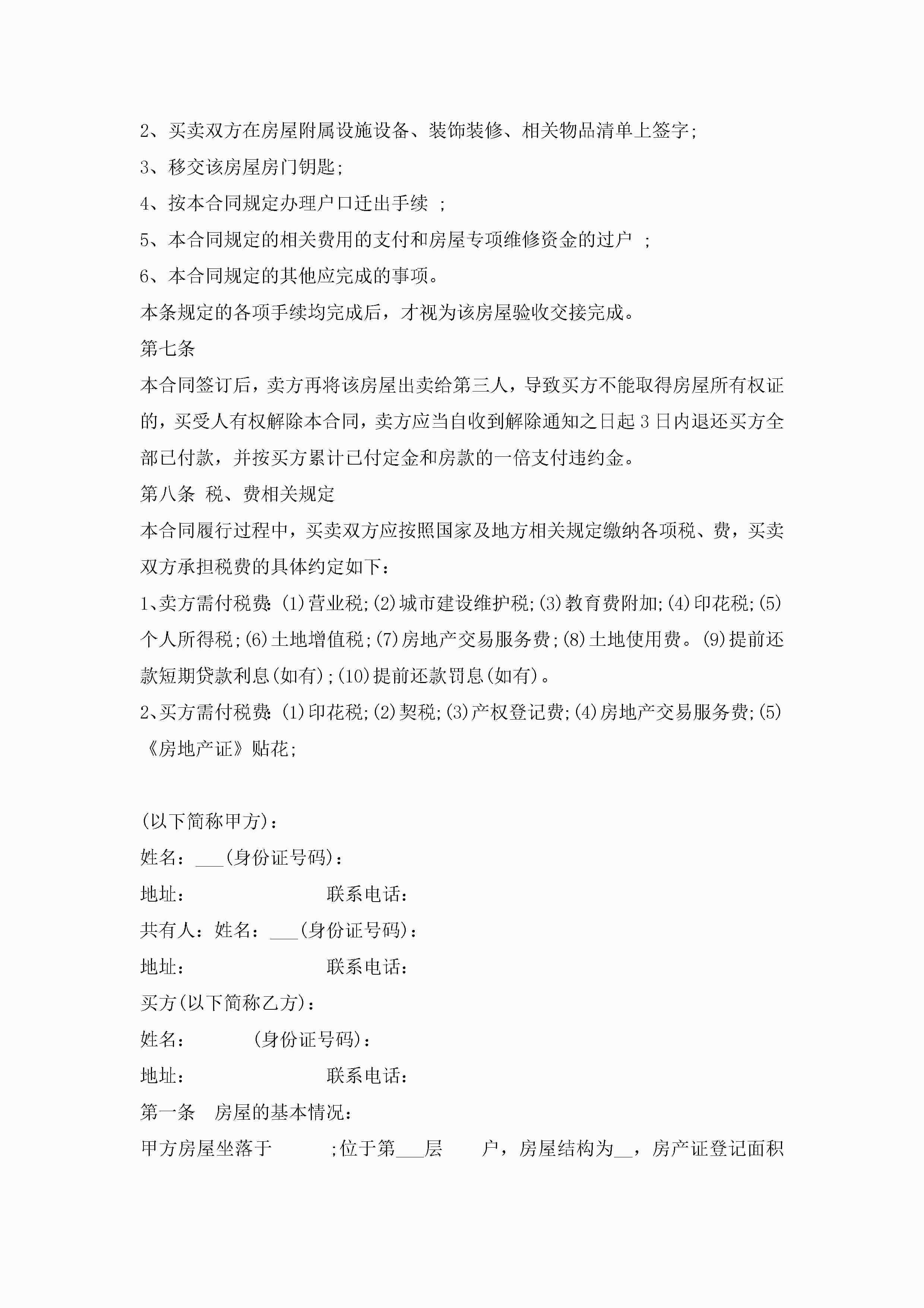 浙江二手房买卖合同协议3篇jugei3月23日 01:37发布关注259 浙江二手房买卖合同协议3篇此内容为付费资源,请付费后查看¥10.9 单篇文档限时特惠¥15个人会员开通企业会员开通立即下载无需登陆!可直接快捷下载单个模板付费资源© 版权声明THE ENDWord模板# 实用文档# 实用模板# 合同模板# 买卖合同 如有问题,可点击最底部“联系我们”联系客服 分享QQ空间微博QQ好友海报分享复制链接收藏