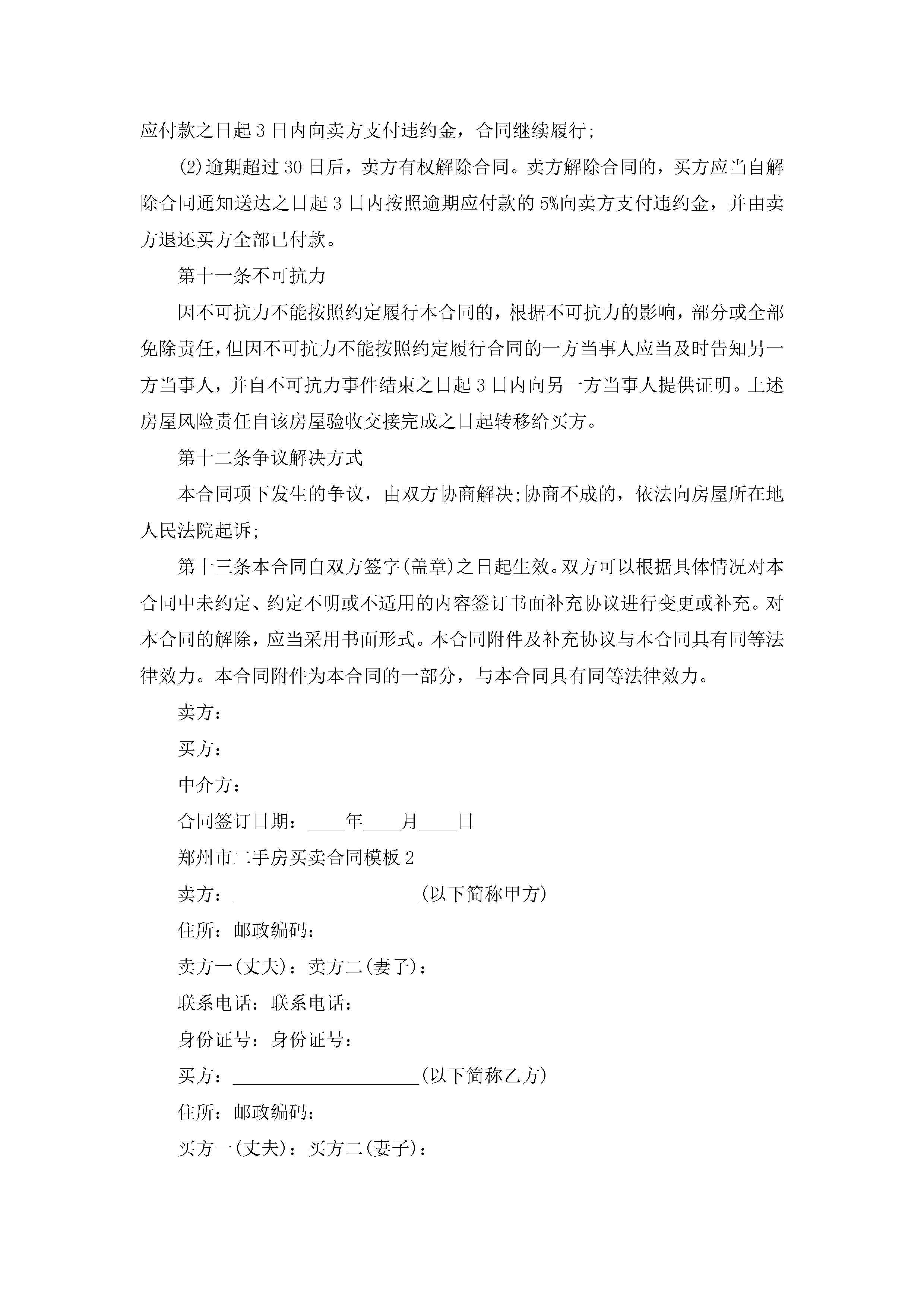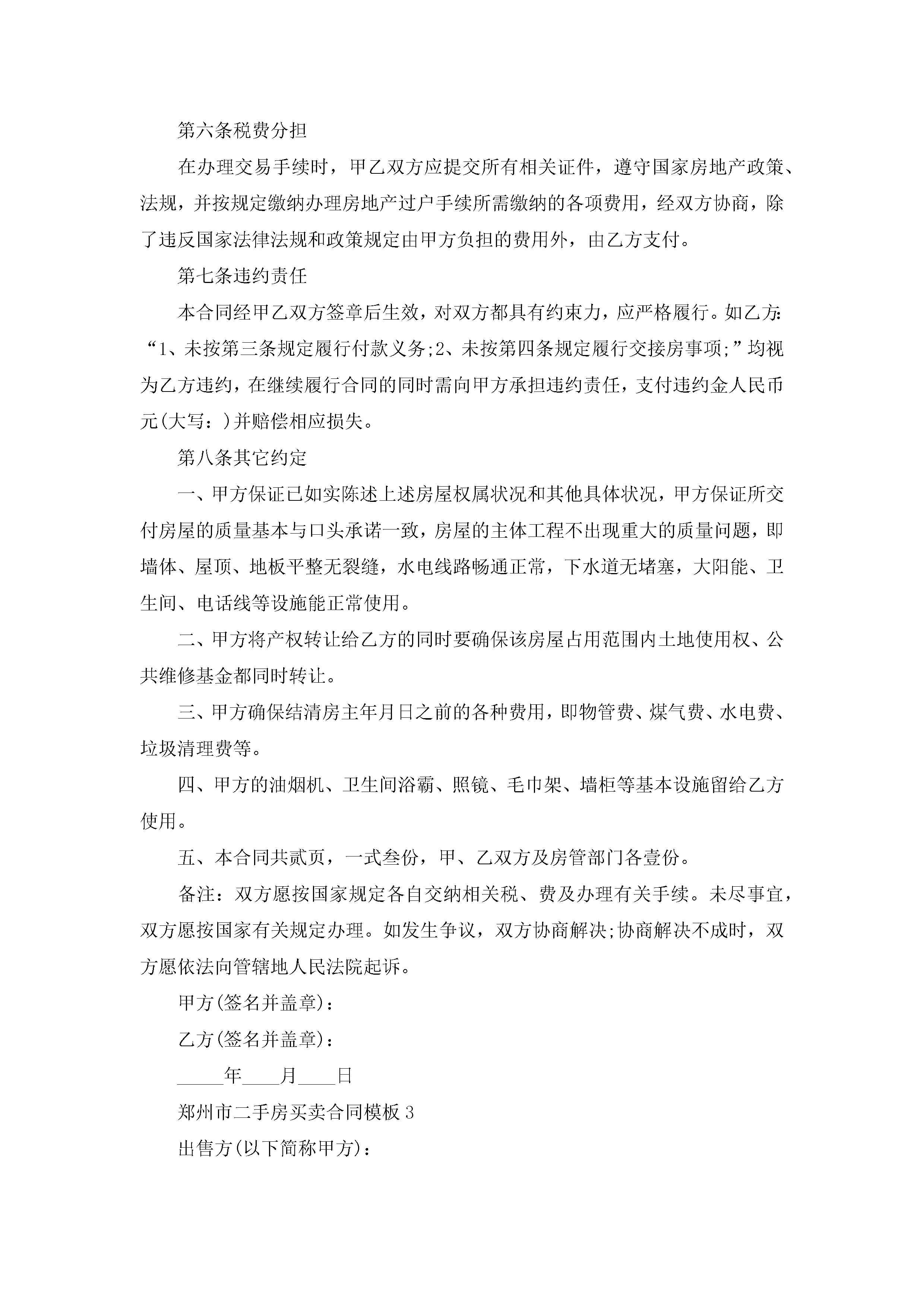 郑州市二手房买卖合同模板【3篇】jugei3月23日 01:37发布关注269 郑州市二手房买卖合同模板【3篇】此内容为付费资源,请付费后查看¥10.9 单篇文档限时特惠¥15个人会员开通企业会员开通立即下载无需登陆!可直接快捷下载单个模板付费资源© 版权声明THE ENDWord模板# 实用文档# 实用模板# 合同模板# 买卖合同 如有问题,可点击最底部“联系我们”联系客服 分享QQ空间微博QQ好友海报分享复制链接收藏