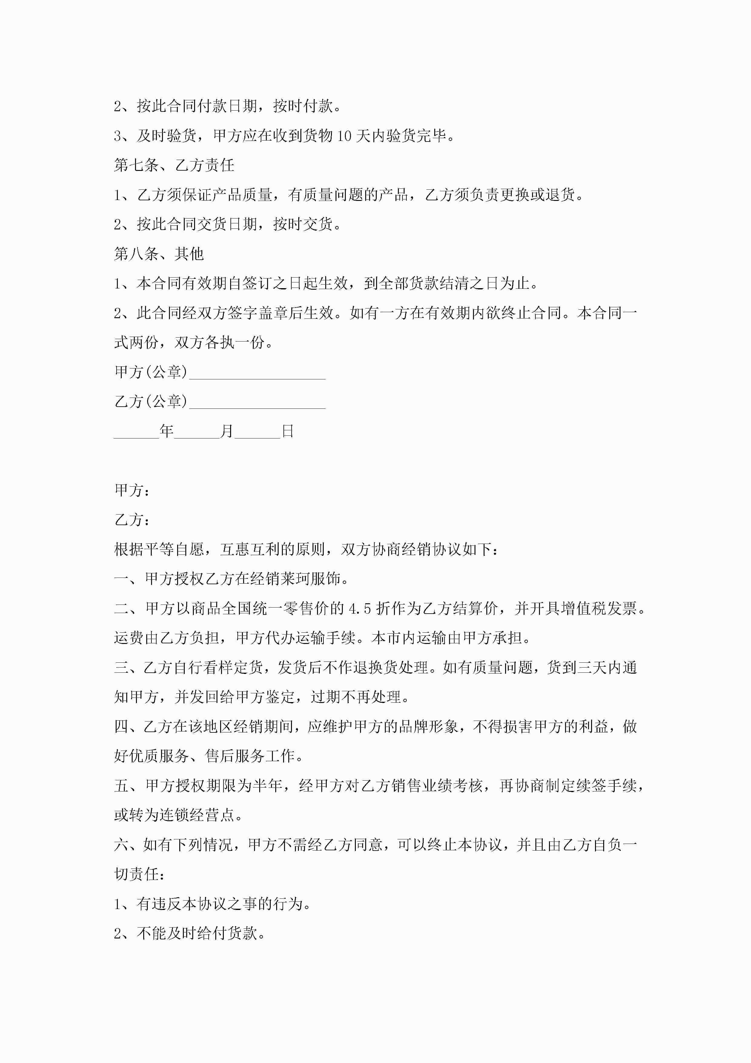 服装买卖合同格式范文【3篇】jugei3月23日 01:37发布关注186 服装买卖合同格式范文【3篇】此内容为付费资源,请付费后查看¥10.9 单篇文档限时特惠¥15个人会员开通企业会员开通立即下载无需登陆!可直接快捷下载单个模板付费资源© 版权声明THE ENDWord模板# 实用文档# 实用模板# 合同模板# 买卖合同 如有问题,可点击最底部“联系我们”联系客服 分享QQ空间微博QQ好友海报分享复制链接收藏