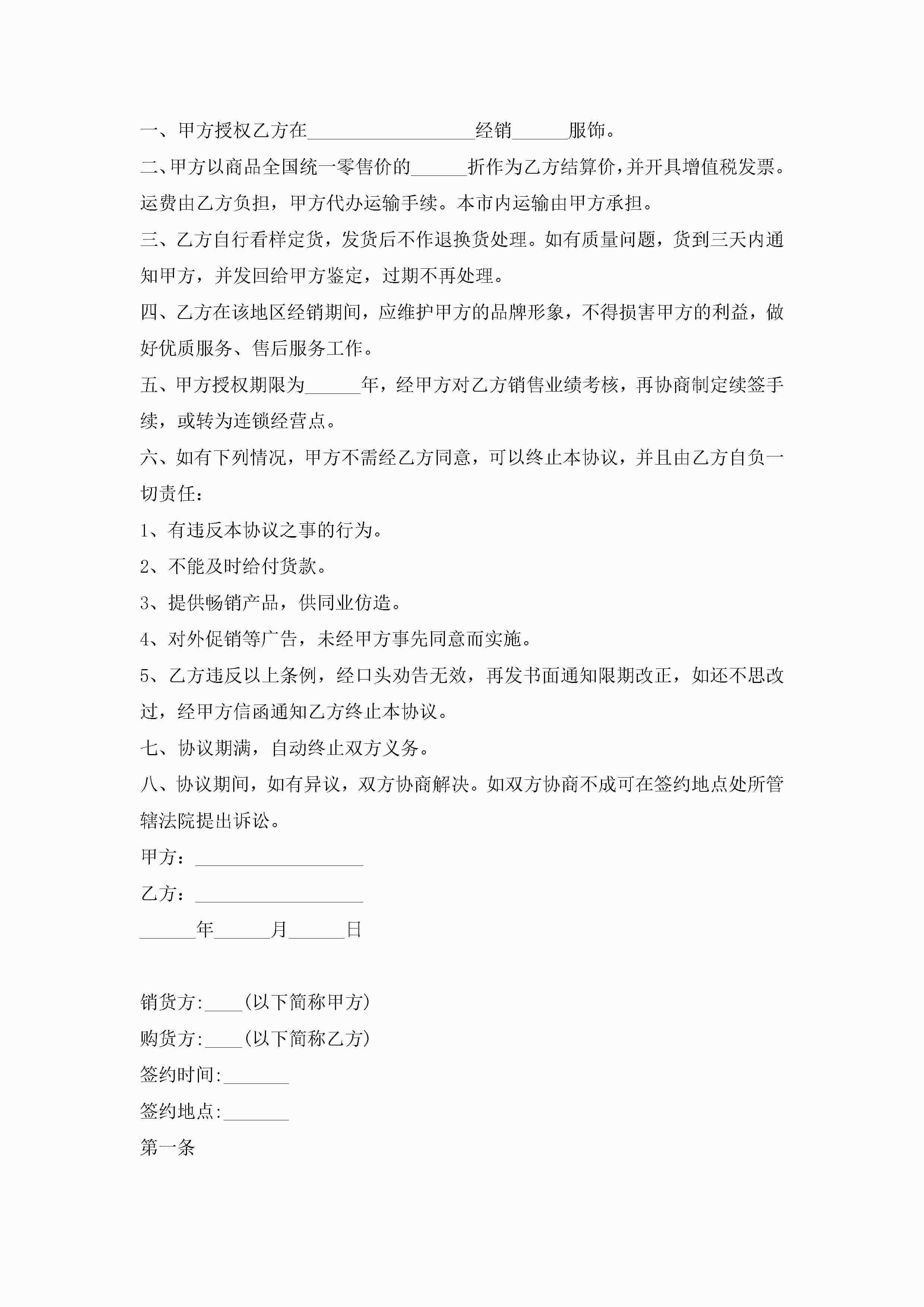 服装买卖合同协议书模板【3篇】jugei3月23日 01:37发布关注211 服装买卖合同协议书模板【3篇】此内容为付费资源,请付费后查看¥10.9 单篇文档限时特惠¥15个人会员开通企业会员开通立即下载无需登陆!可直接快捷下载单个模板付费资源© 版权声明THE ENDWord模板# 实用文档# 实用模板# 合同模板# 买卖合同 如有问题,可点击最底部“联系我们”联系客服 分享QQ空间微博QQ好友海报分享复制链接收藏