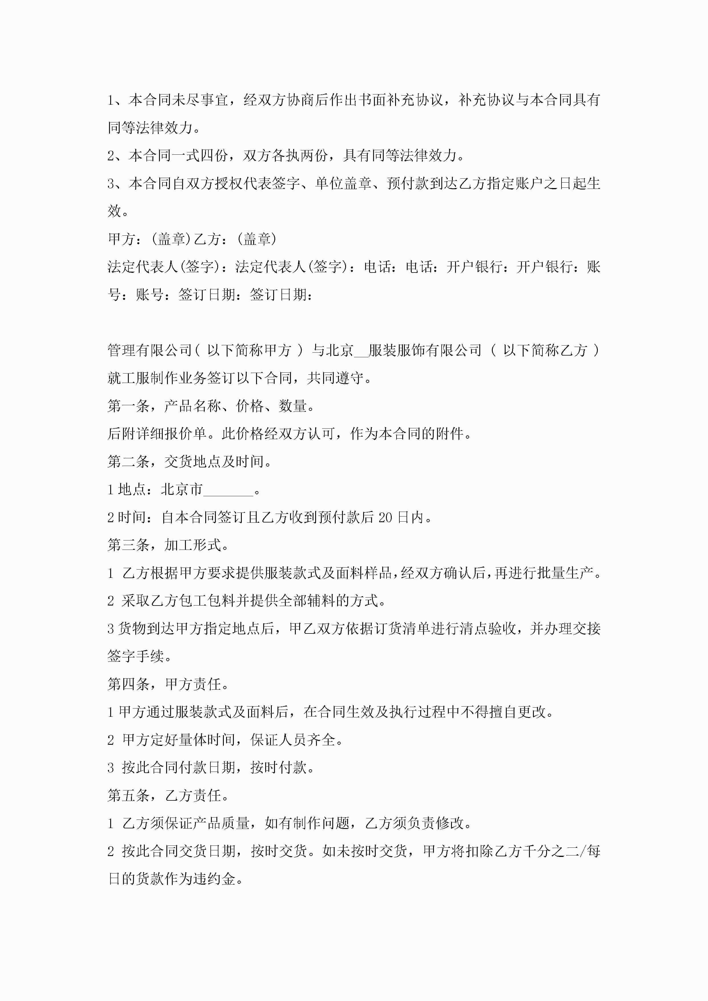 服装厂买卖合同【3篇】jugei3月23日 01:37发布关注239 服装厂买卖合同【3篇】此内容为付费资源,请付费后查看¥10.9 单篇文档限时特惠¥15个人会员开通企业会员开通立即下载无需登陆!可直接快捷下载单个模板付费资源© 版权声明THE ENDWord模板# 实用文档# 实用模板# 合同模板# 买卖合同 如有问题,可点击最底部“联系我们”联系客服 分享QQ空间微博QQ好友海报分享复制链接收藏