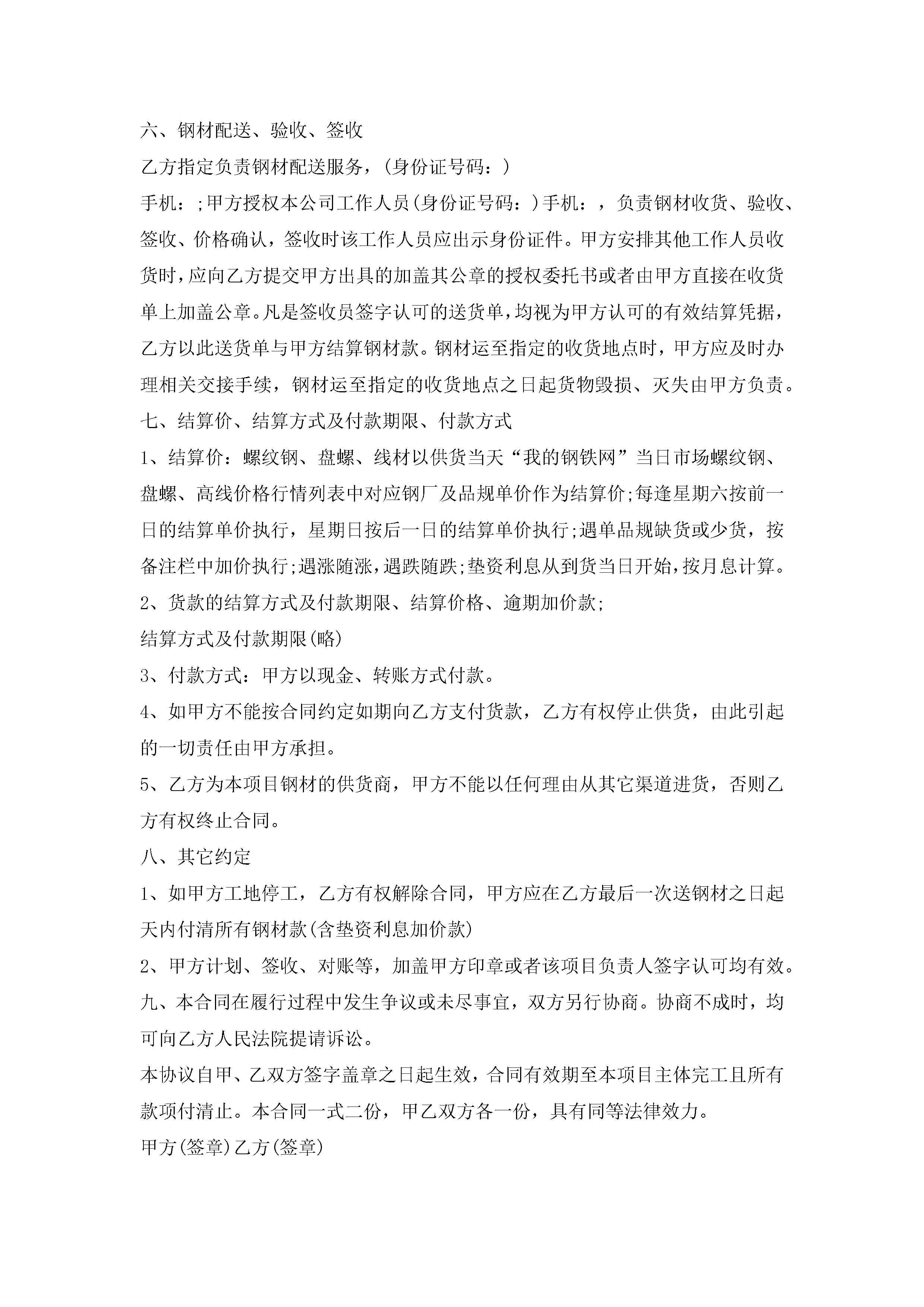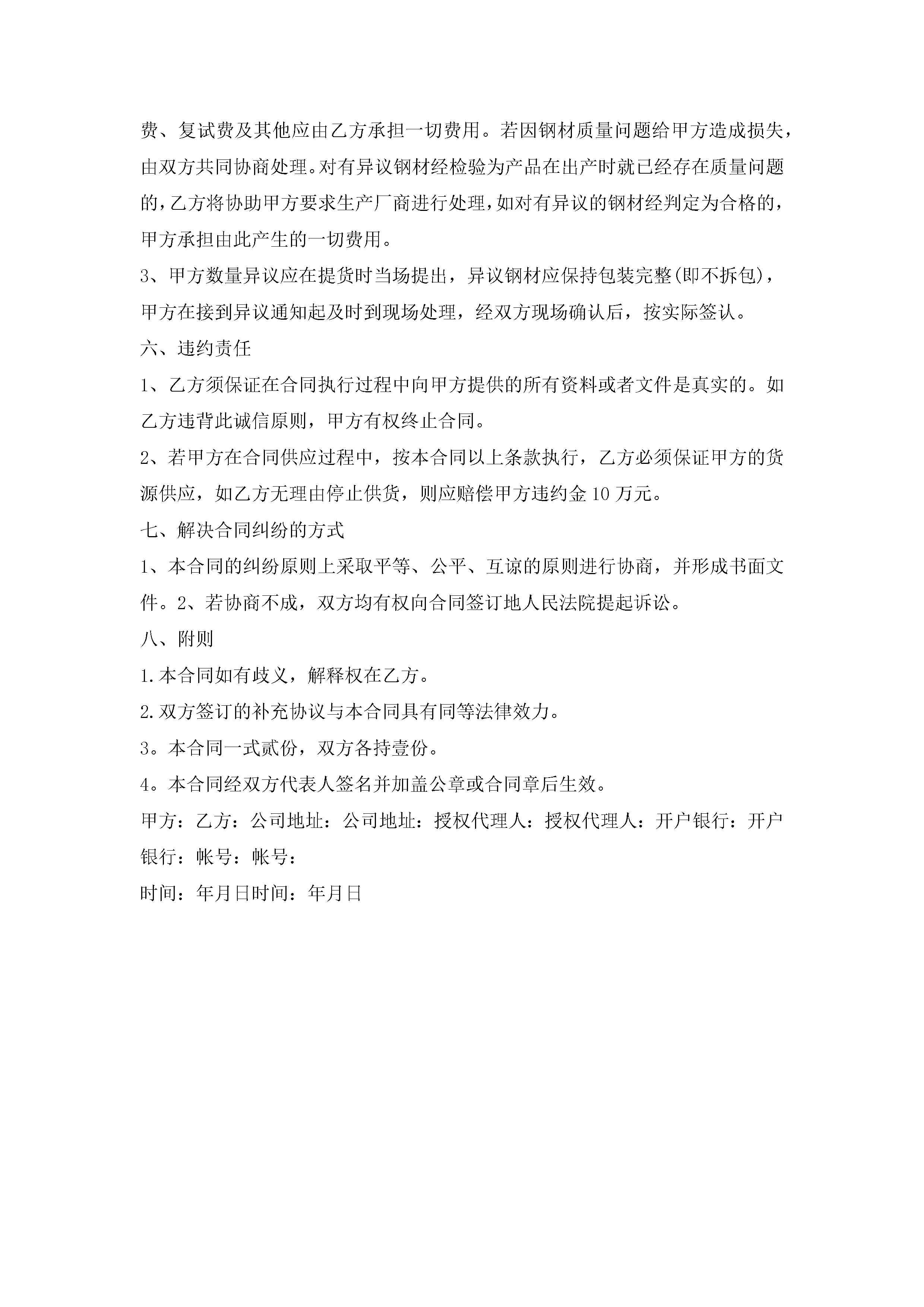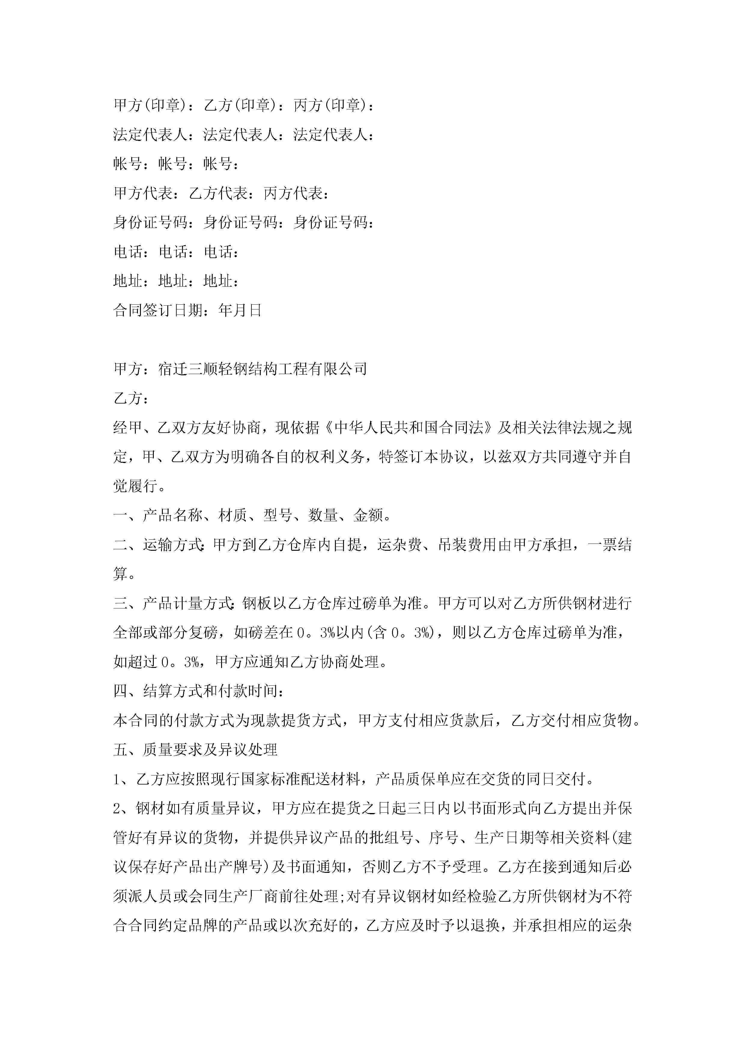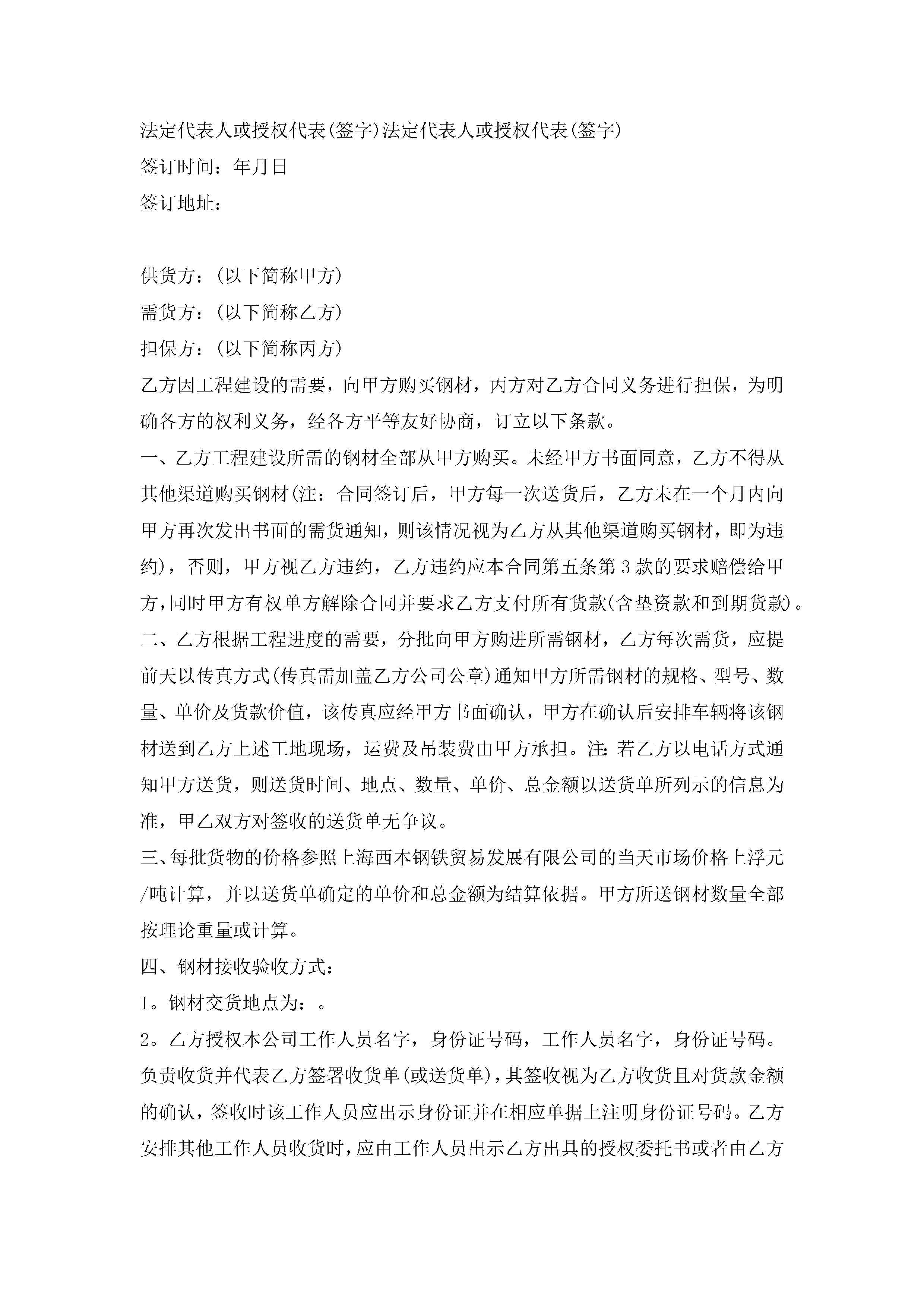 钢材买卖合同模板范文【3篇】jugei3月23日 01:37发布关注287 钢材买卖合同模板范文【3篇】此内容为付费资源,请付费后查看¥10.9 单篇文档限时特惠¥15个人会员开通企业会员开通立即下载无需登陆!可直接快捷下载单个模板付费资源© 版权声明THE ENDWord模板# 实用文档# 实用模板# 合同模板# 买卖合同 如有问题,可点击最底部“联系我们”联系客服 分享QQ空间微博QQ好友海报分享复制链接收藏