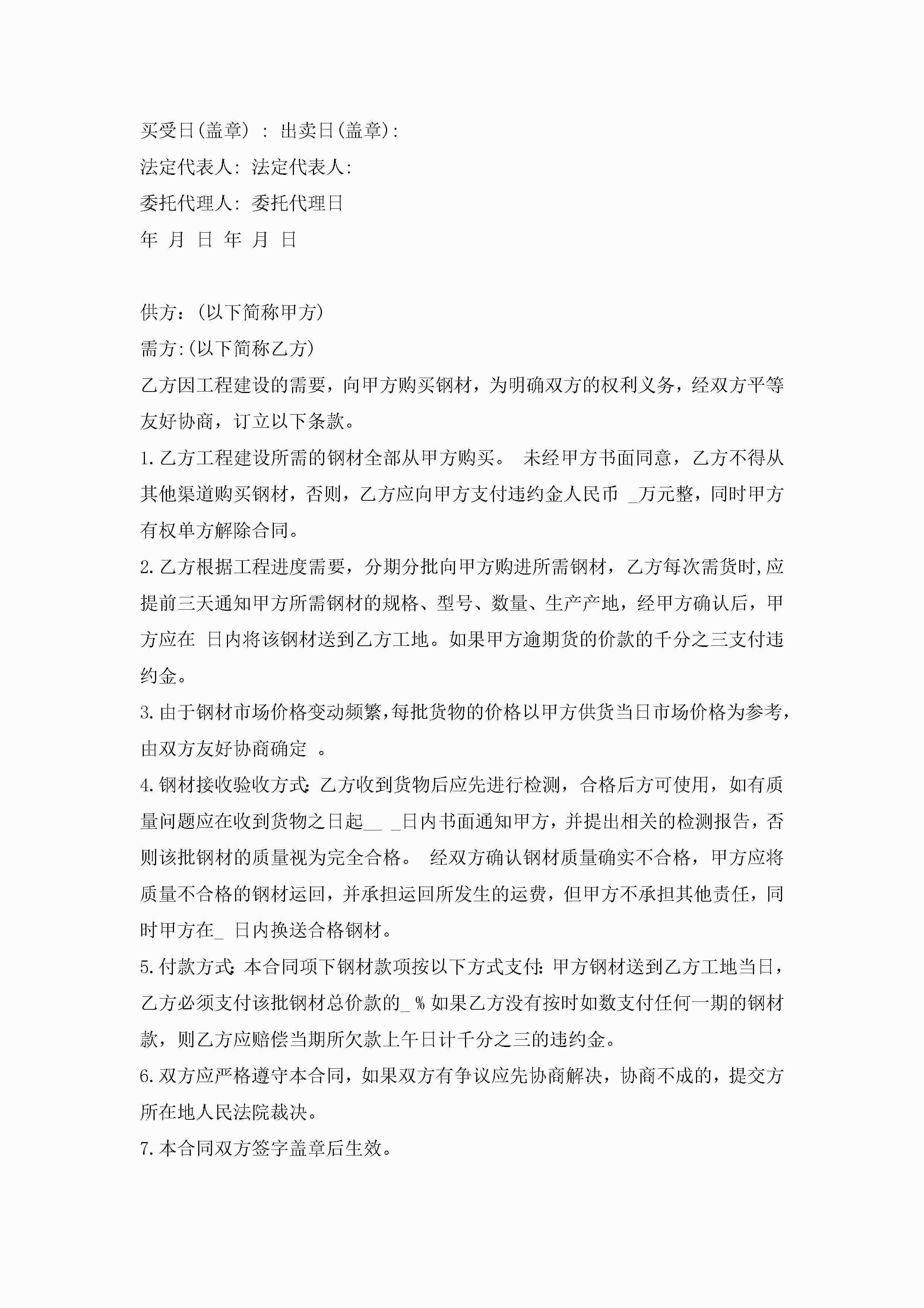 钢材货物买卖合同简洁版模板jugei3月23日 01:37发布关注195 钢材货物买卖合同简洁版模板此内容为付费资源,请付费后查看¥10.9 单篇文档限时特惠¥15个人会员开通企业会员开通立即下载无需登陆!可直接快捷下载单个模板付费资源© 版权声明THE ENDWord模板# 实用文档# 实用模板# 合同模板# 买卖合同 如有问题,可点击最底部“联系我们”联系客服 分享QQ空间微博QQ好友海报分享复制链接收藏