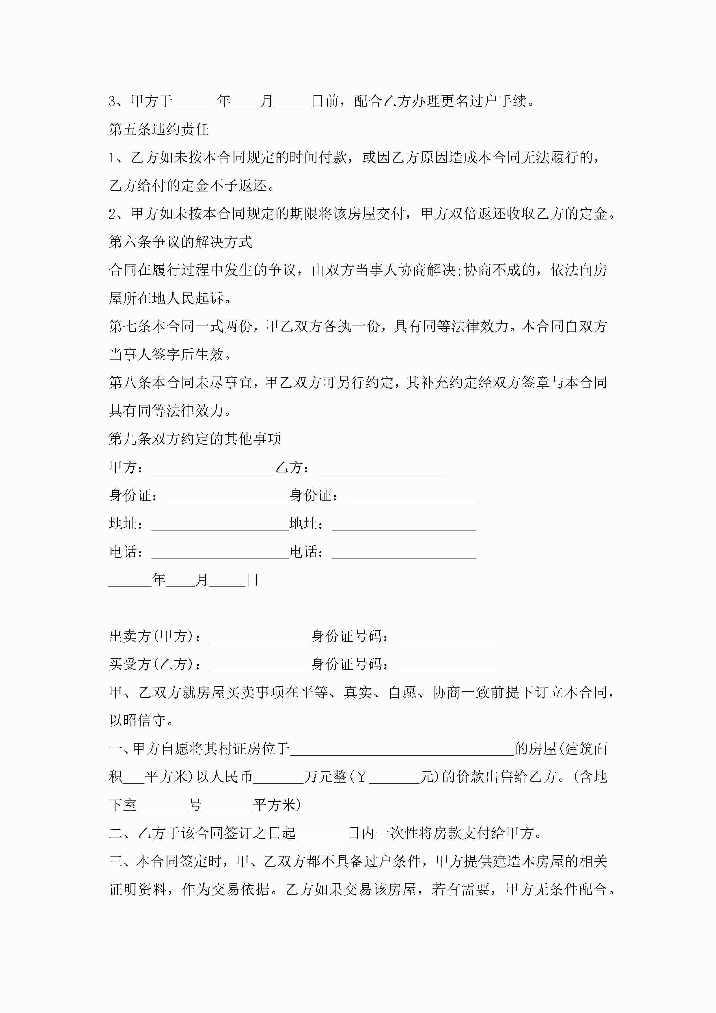 个人房屋买卖合同协议书范本jugei3月23日 01:37发布关注194 个人房屋买卖合同协议书范本此内容为付费资源,请付费后查看¥10.9 单篇文档限时特惠¥15个人会员开通企业会员开通立即下载无需登陆!可直接快捷下载单个模板付费资源© 版权声明THE ENDWord模板# 实用文档# 实用模板# 合同模板# 买卖合同 如有问题,可点击最底部“联系我们”联系客服 分享QQ空间微博QQ好友海报分享复制链接收藏