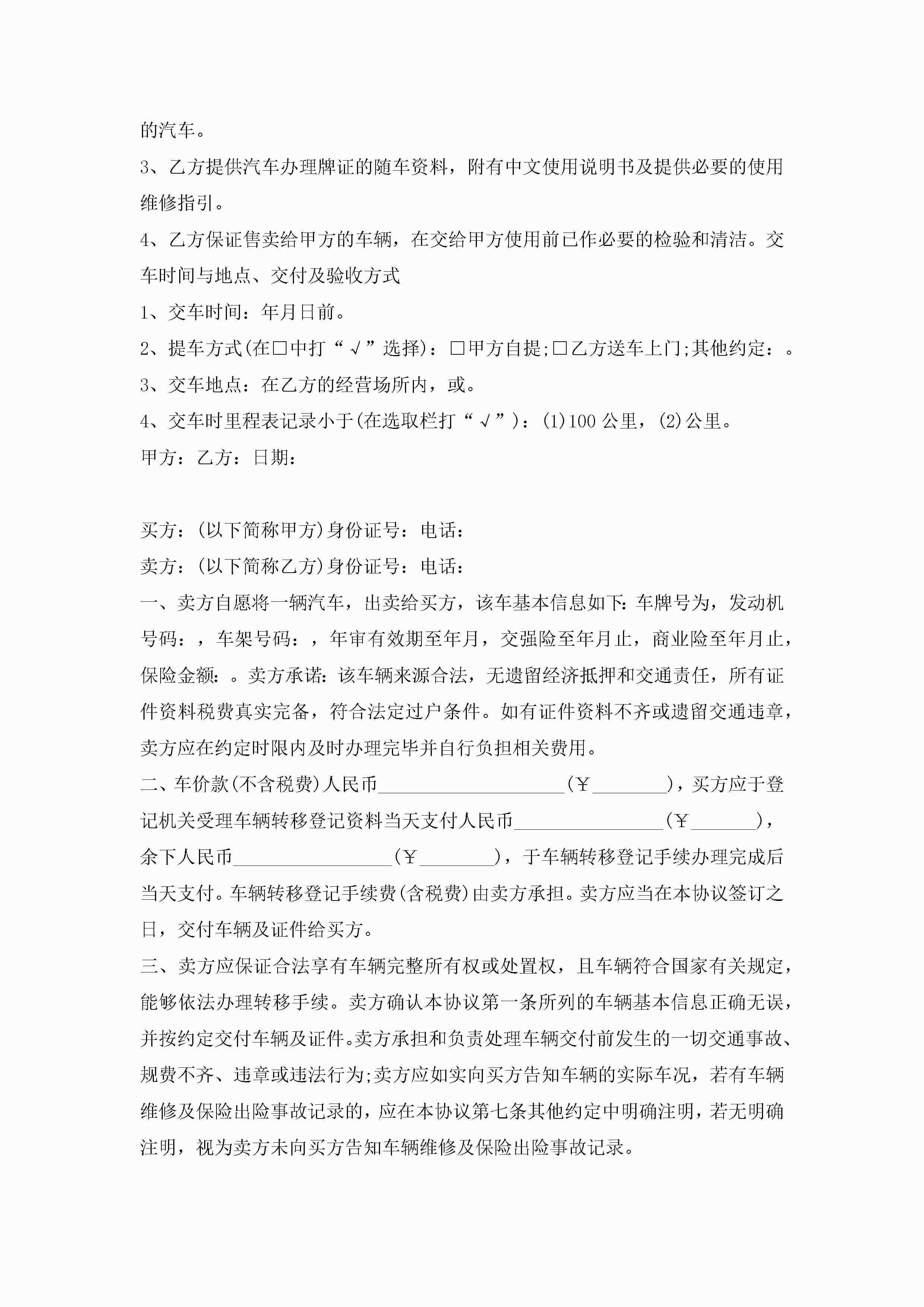 二手车买卖合同最新五篇jugei3月23日 01:37发布关注193 二手车买卖合同最新五篇此内容为付费资源,请付费后查看¥10.9 单篇文档限时特惠¥15个人会员开通企业会员开通立即下载无需登陆!可直接快捷下载单个模板付费资源© 版权声明THE ENDWord模板# 实用文档# 实用模板# 合同模板# 买卖合同 如有问题,可点击最底部“联系我们”联系客服 分享QQ空间微博QQ好友海报分享复制链接收藏