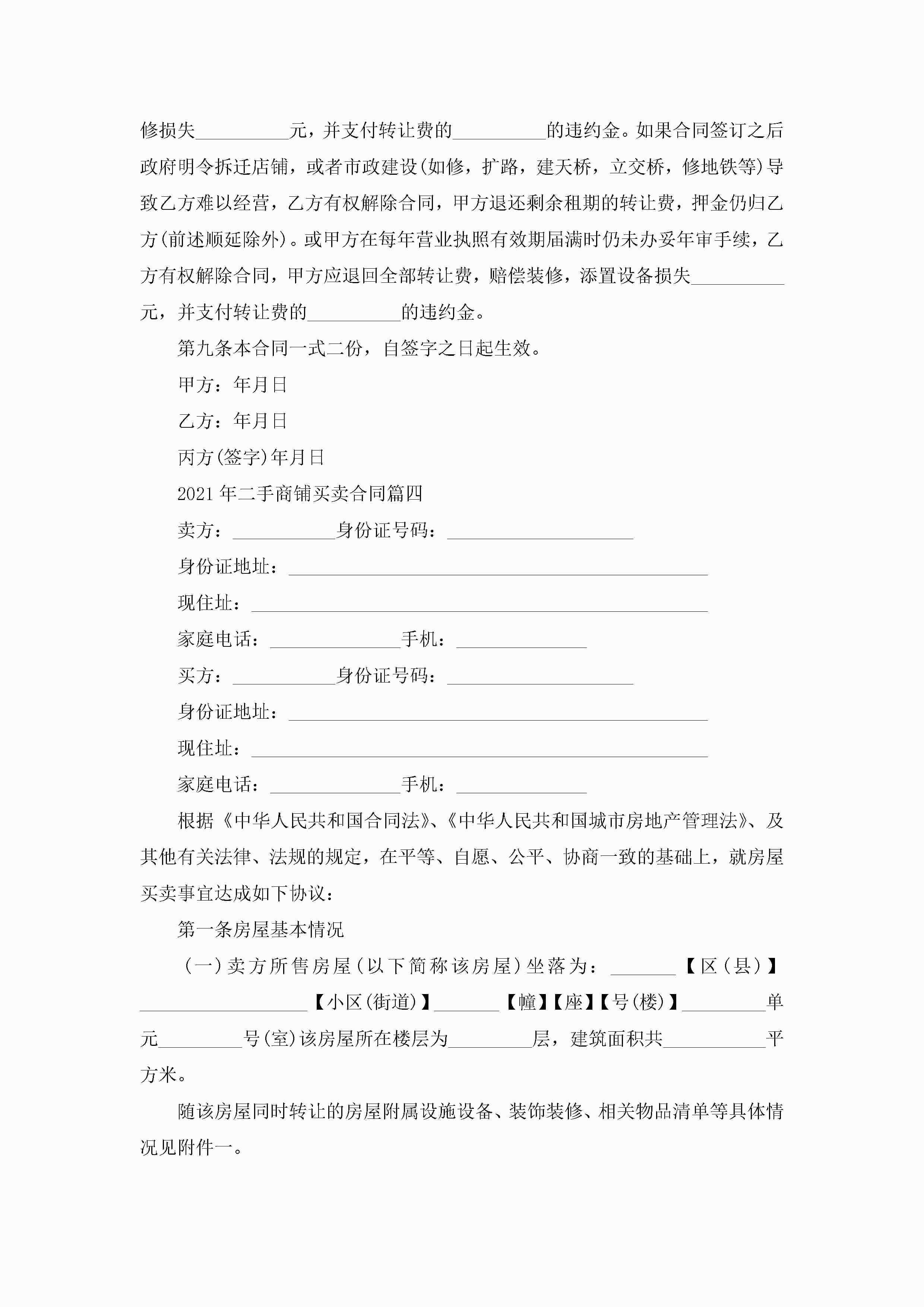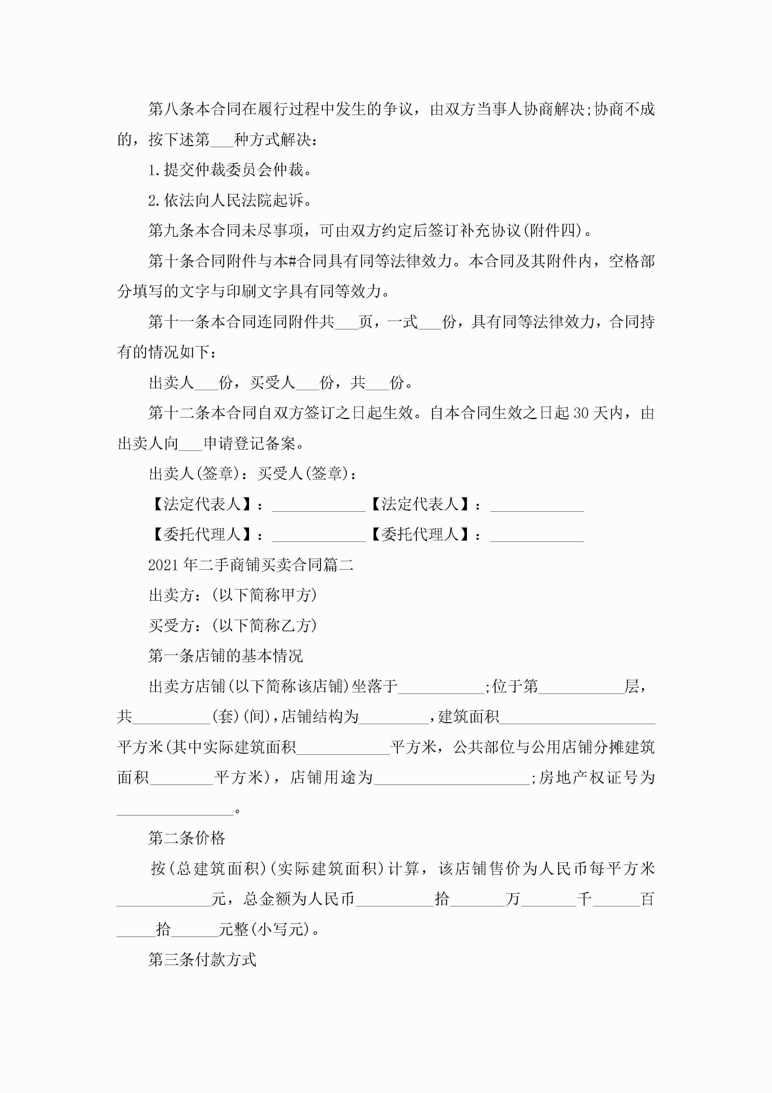 2022年二手商铺买卖合同范本5篇最新jugei3月23日 01:37发布关注184 2022年二手商铺买卖合同范本5篇最新此内容为付费资源,请付费后查看¥10.9 单篇文档限时特惠¥15个人会员开通企业会员开通立即下载无需登陆!可直接快捷下载单个模板付费资源© 版权声明THE ENDWord模板# 实用文档# 实用模板# 合同模板# 买卖合同 如有问题,可点击最底部“联系我们”联系客服 分享QQ空间微博QQ好友海报分享复制链接收藏