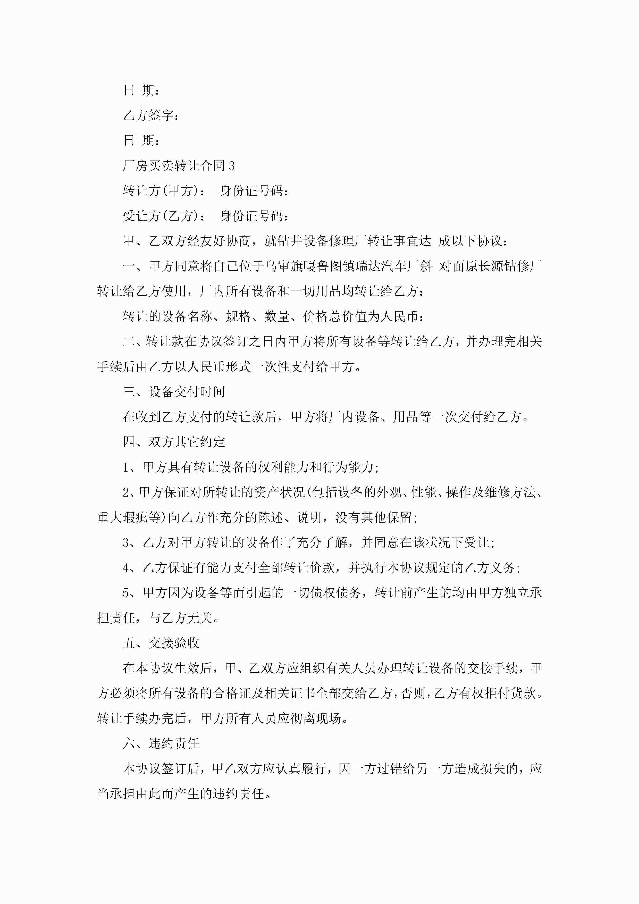厂房买卖转让合同5篇jugei3月23日 01:38发布关注185 厂房买卖转让合同5篇此内容为付费资源,请付费后查看¥10.9 单篇文档限时特惠¥15个人会员开通企业会员开通立即下载无需登陆!可直接快捷下载单个模板付费资源© 版权声明THE ENDWord模板# 实用文档# 实用模板# 合同模板# 买卖合同 如有问题,可点击最底部“联系我们”联系客服 分享QQ空间微博QQ好友海报分享复制链接收藏