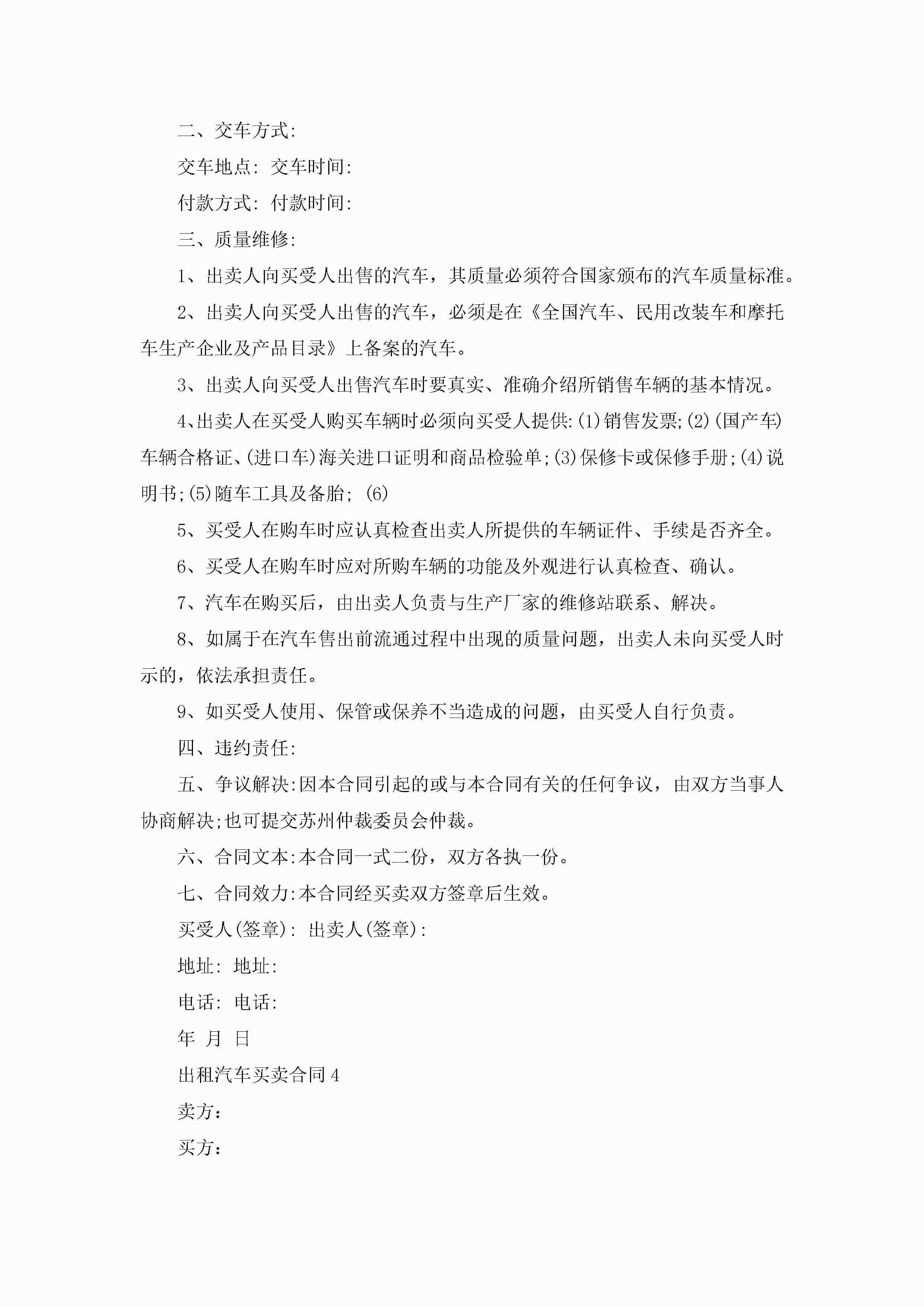 出租汽车买卖合同5篇jugei3月23日 01:38发布关注185 出租汽车买卖合同5篇此内容为付费资源,请付费后查看¥10.9 单篇文档限时特惠¥15个人会员开通企业会员开通立即下载无需登陆!可直接快捷下载单个模板付费资源© 版权声明THE ENDWord模板# 实用文档# 实用模板# 合同模板# 买卖合同 如有问题,可点击最底部“联系我们”联系客服 分享QQ空间微博QQ好友海报分享复制链接收藏