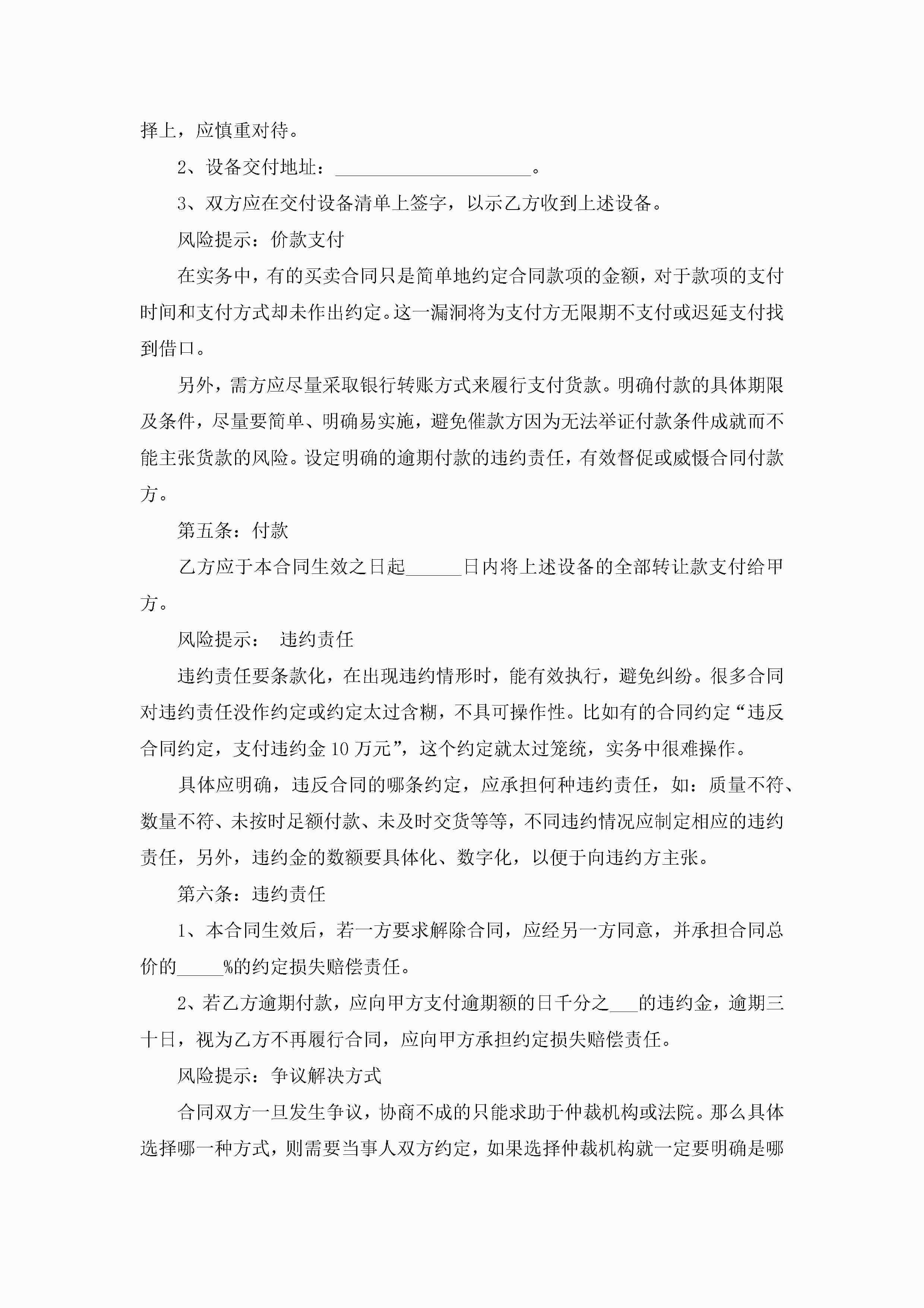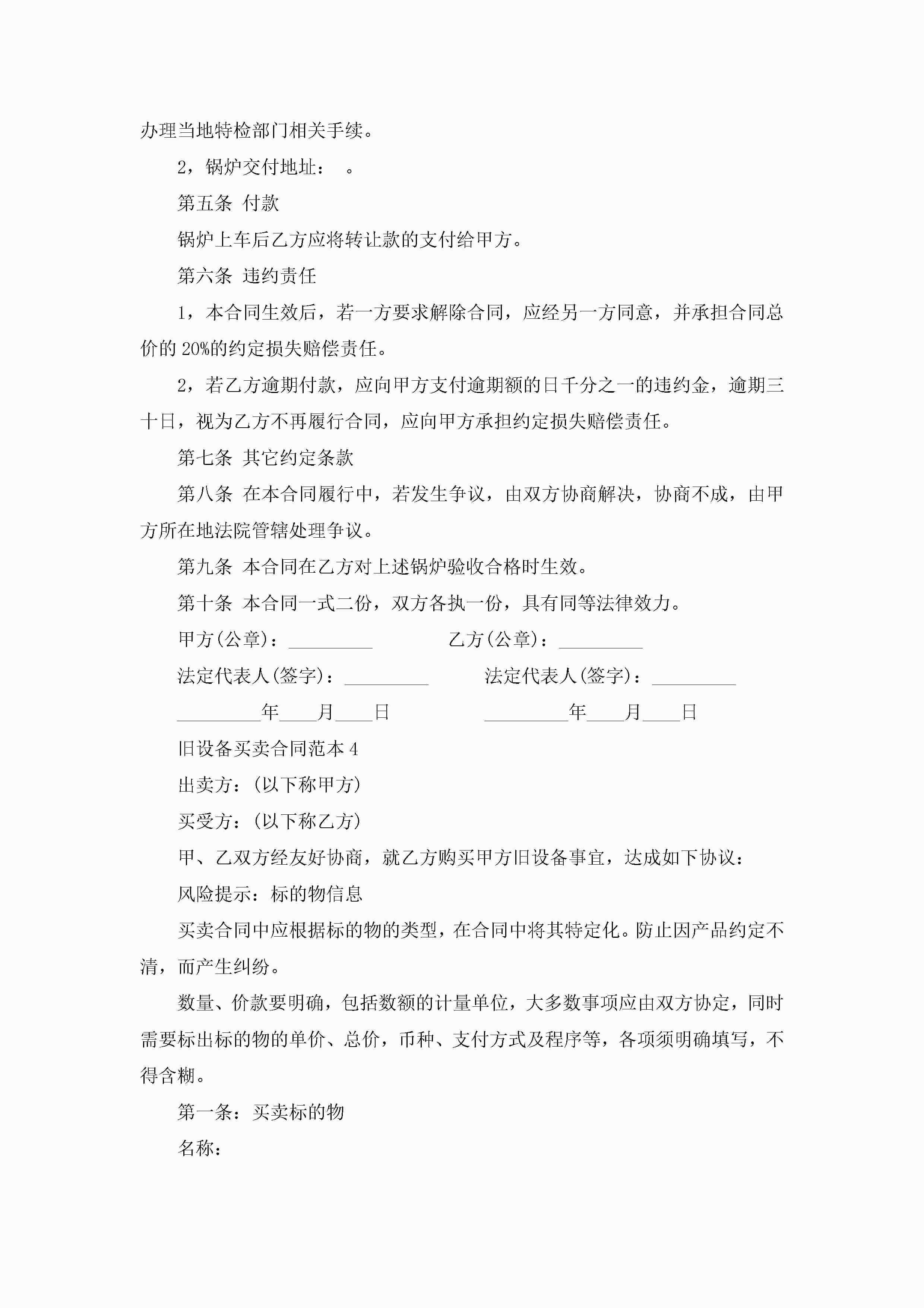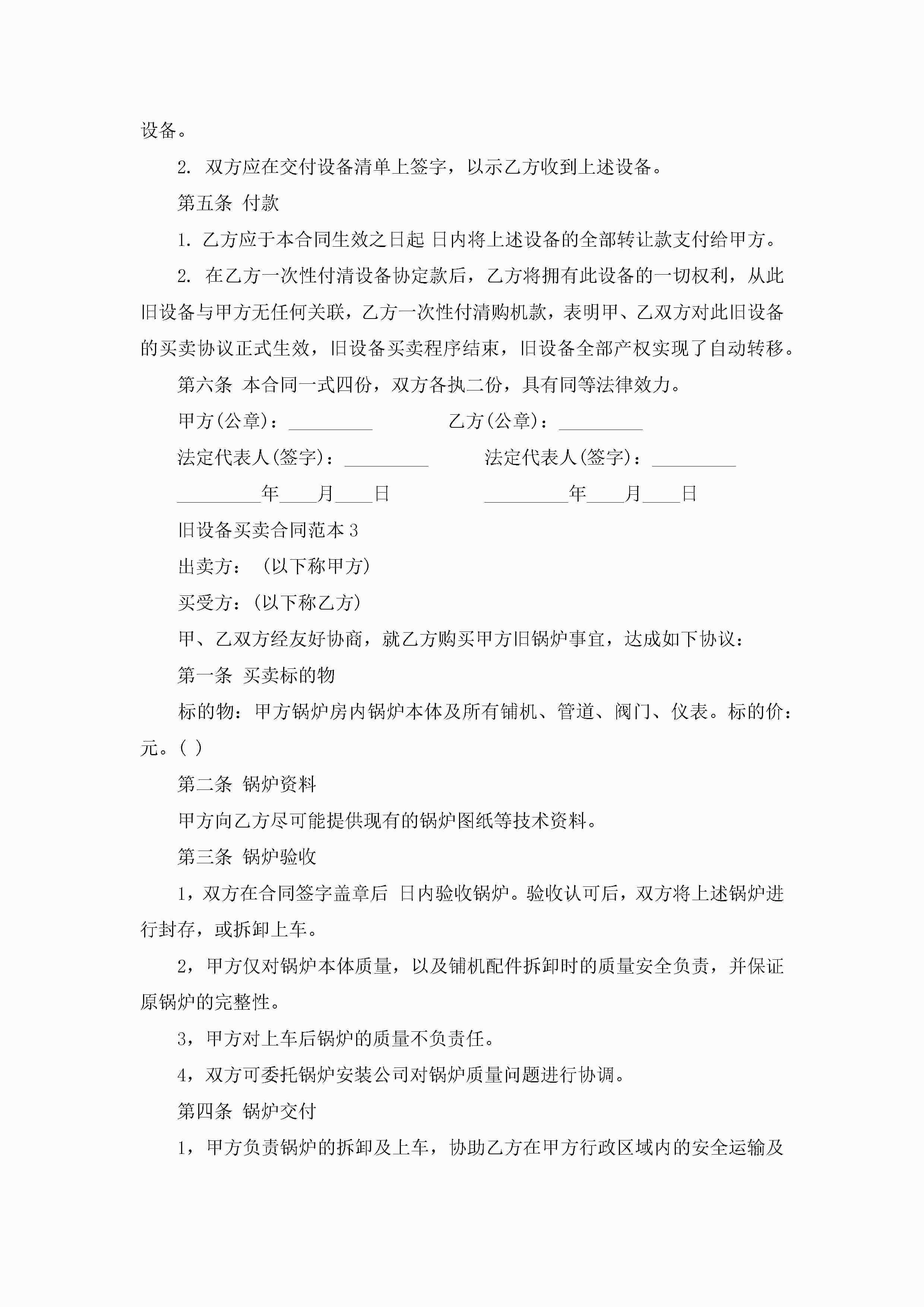 旧设备买卖合同范本5篇jugei3月23日 01:38发布关注236 旧设备买卖合同范本5篇此内容为付费资源,请付费后查看¥10.9 单篇文档限时特惠¥15个人会员开通企业会员开通立即下载无需登陆!可直接快捷下载单个模板付费资源© 版权声明THE ENDWord模板# 实用文档# 实用模板# 合同模板# 买卖合同 如有问题,可点击最底部“联系我们”联系客服 分享QQ空间微博QQ好友海报分享复制链接收藏