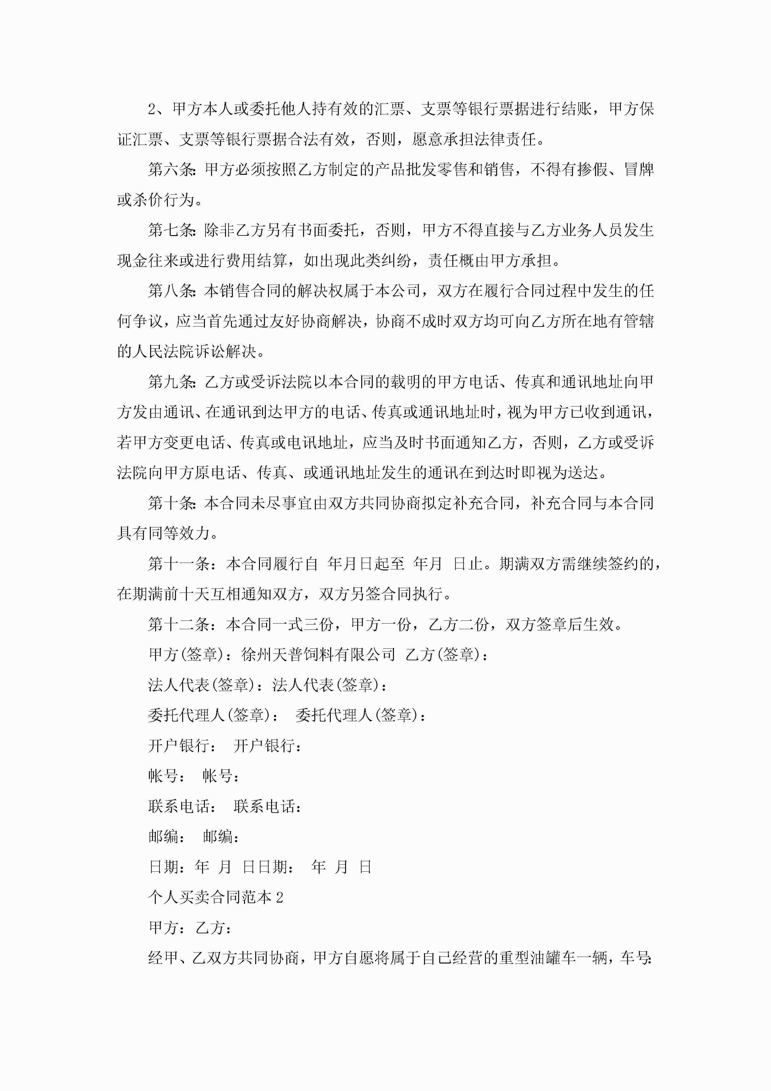 关于个人买卖合同的范本5篇jugei3月23日 01:38发布关注193 关于个人买卖合同的范本5篇此内容为付费资源,请付费后查看¥10.9 单篇文档限时特惠¥15个人会员开通企业会员开通立即下载无需登陆!可直接快捷下载单个模板付费资源© 版权声明THE ENDWord模板# 实用文档# 实用模板# 合同模板# 买卖合同 如有问题,可点击最底部“联系我们”联系客服 分享QQ空间微博QQ好友海报分享复制链接收藏