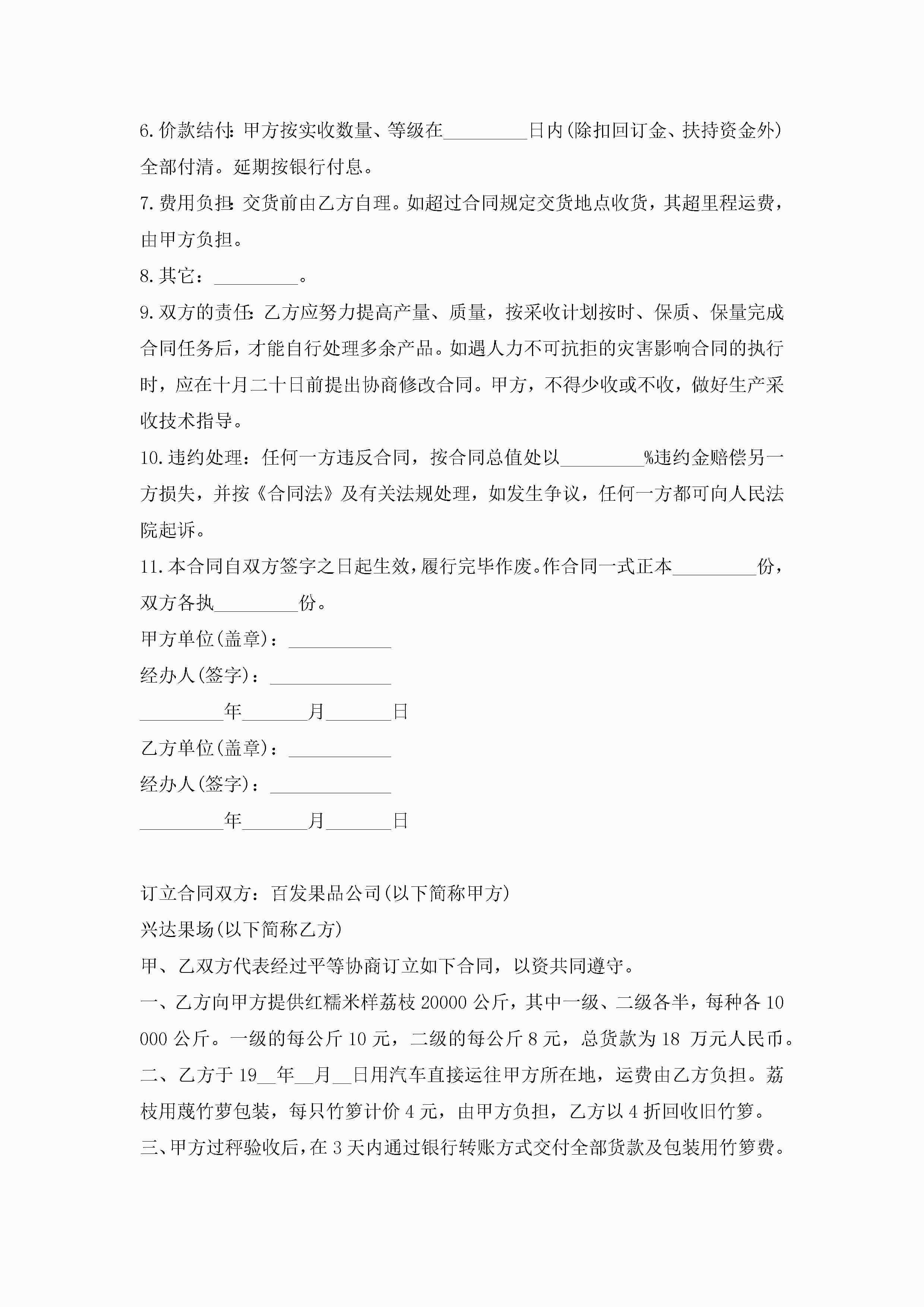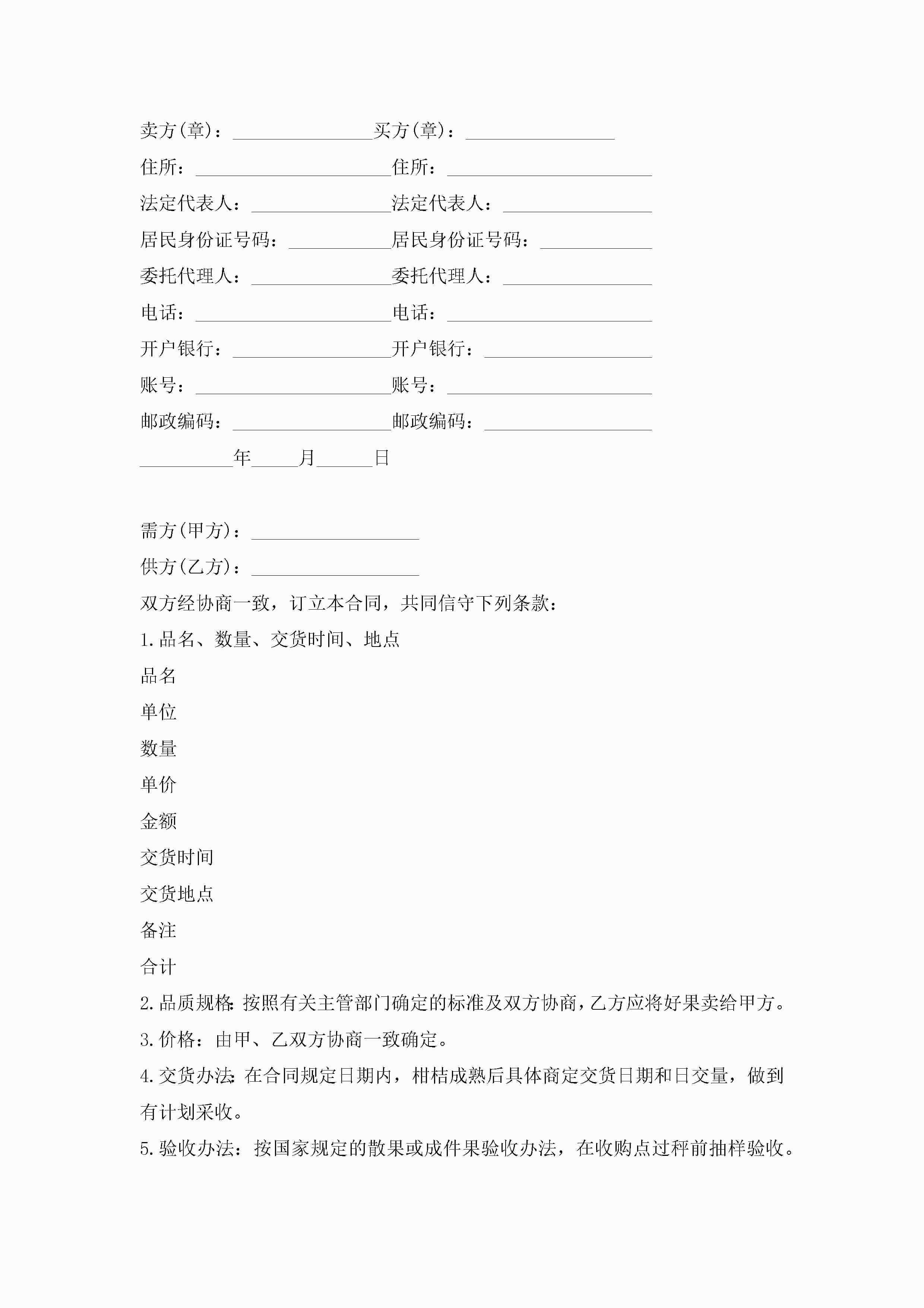 水果买卖合同范本5篇jugei3月23日 01:38发布关注190 水果买卖合同范本5篇此内容为付费资源,请付费后查看¥10.9 单篇文档限时特惠¥15个人会员开通企业会员开通立即下载无需登陆!可直接快捷下载单个模板付费资源© 版权声明THE ENDWord模板# 实用文档# 实用模板# 合同模板# 买卖合同 如有问题,可点击最底部“联系我们”联系客服 分享QQ空间微博QQ好友海报分享复制链接收藏