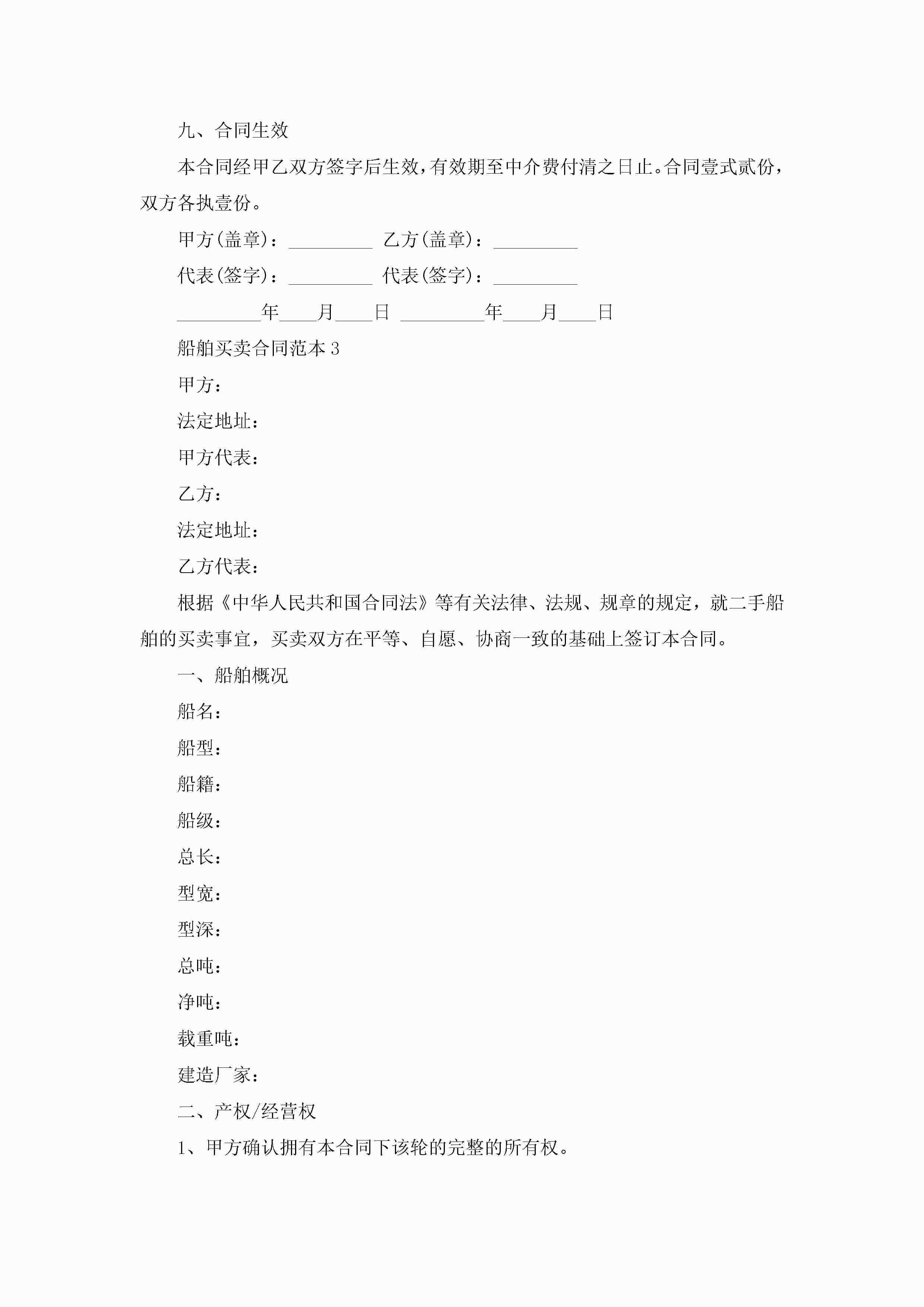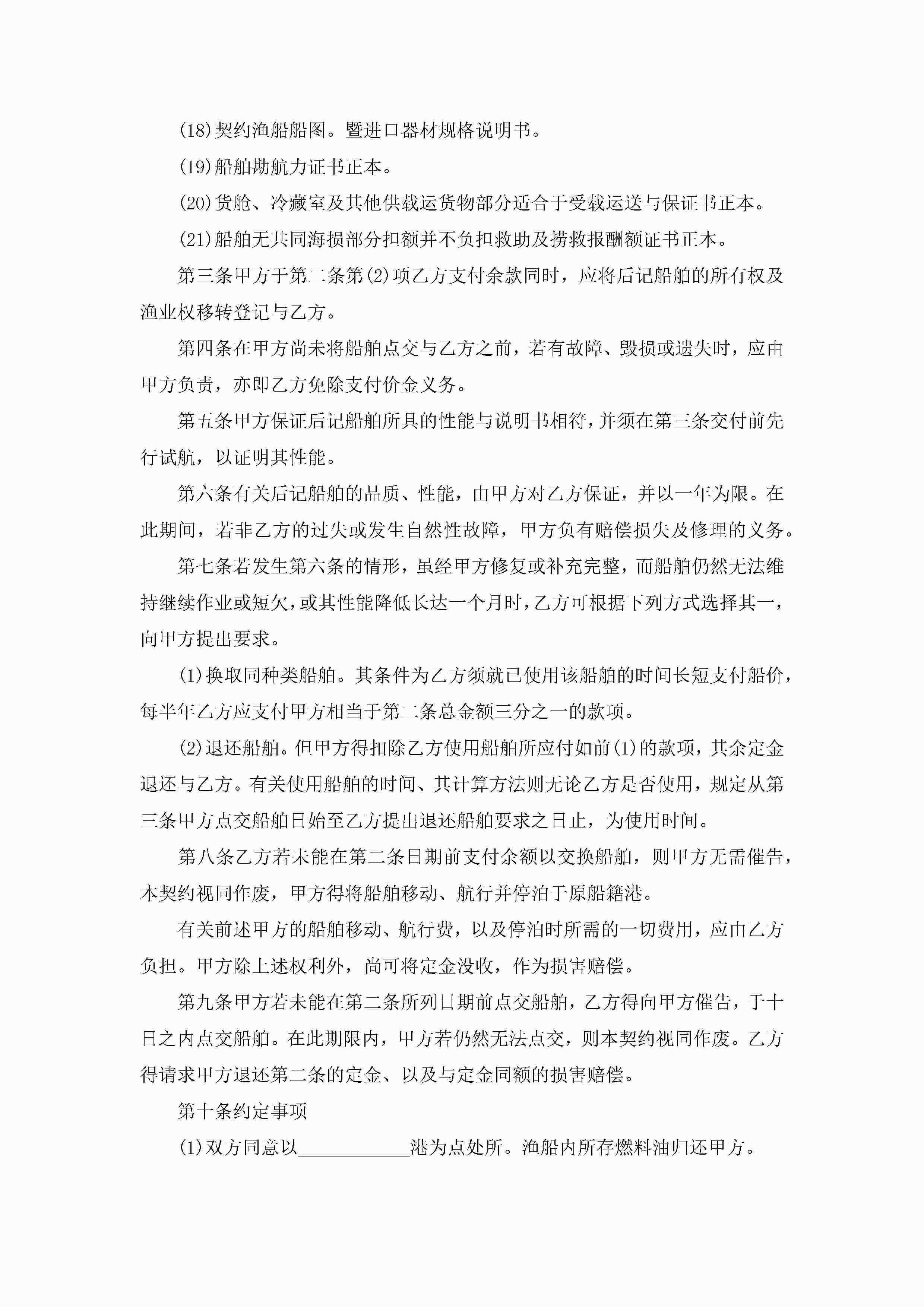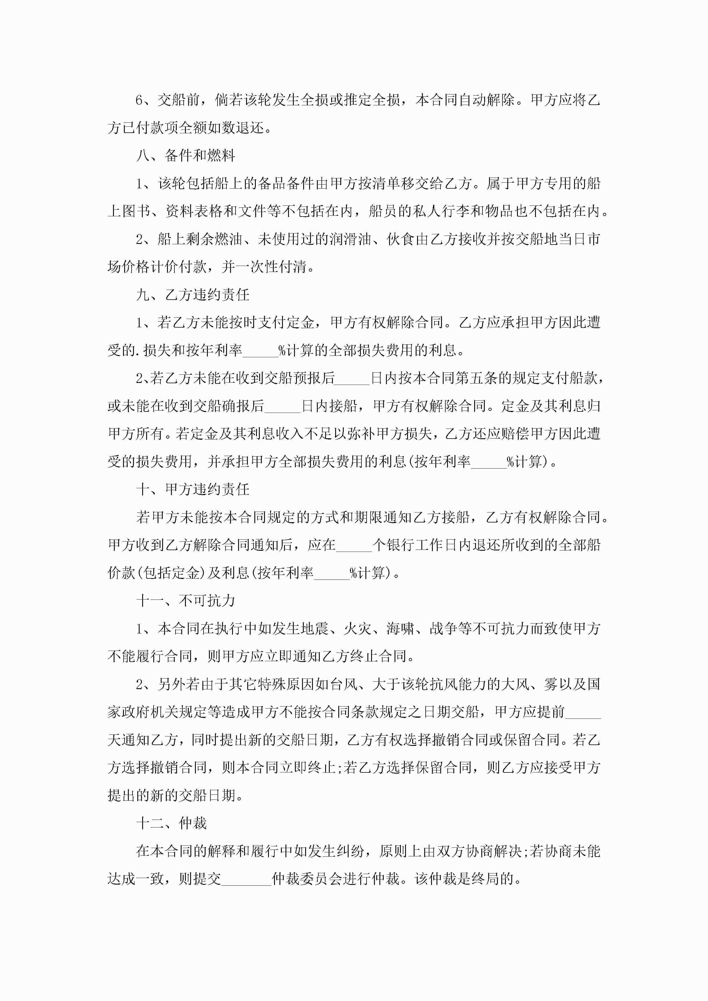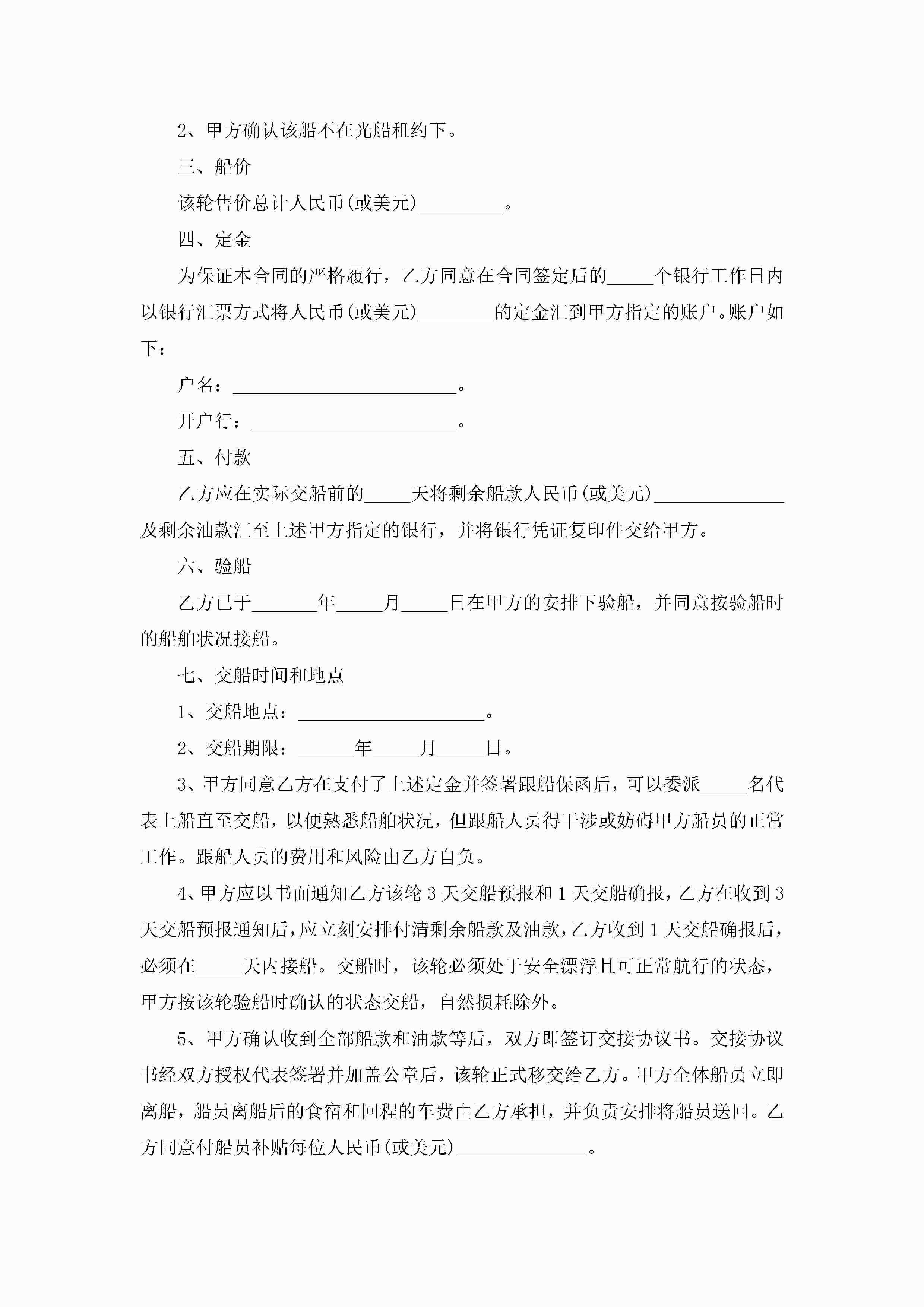 关于船舶买卖的合同范本5篇jugei3月23日 01:38发布关注193 关于船舶买卖的合同范本5篇此内容为付费资源,请付费后查看¥10.9 单篇文档限时特惠¥15个人会员开通企业会员开通立即下载无需登陆!可直接快捷下载单个模板付费资源© 版权声明THE ENDWord模板# 实用文档# 实用模板# 合同模板# 买卖合同 如有问题,可点击最底部“联系我们”联系客服 分享QQ空间微博QQ好友海报分享复制链接收藏