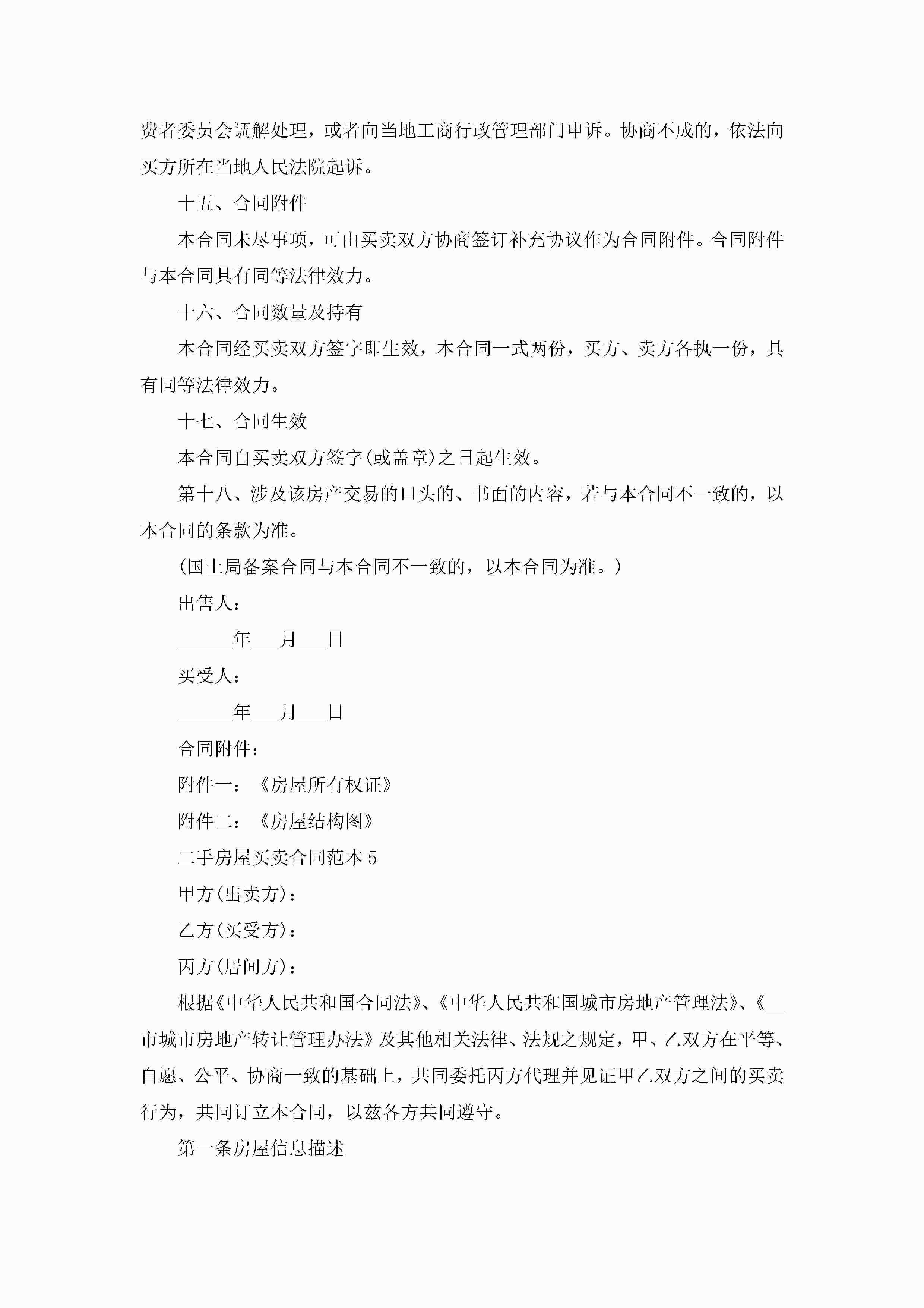 二手房屋买卖合同范本5篇jugei3月23日 01:38发布关注281 二手房屋买卖合同范本5篇此内容为付费资源,请付费后查看¥10.9 单篇文档限时特惠¥15个人会员开通企业会员开通立即下载无需登陆!可直接快捷下载单个模板付费资源© 版权声明THE ENDWord模板# 实用文档# 实用模板# 合同模板# 买卖合同 如有问题,可点击最底部“联系我们”联系客服 分享QQ空间微博QQ好友海报分享复制链接收藏