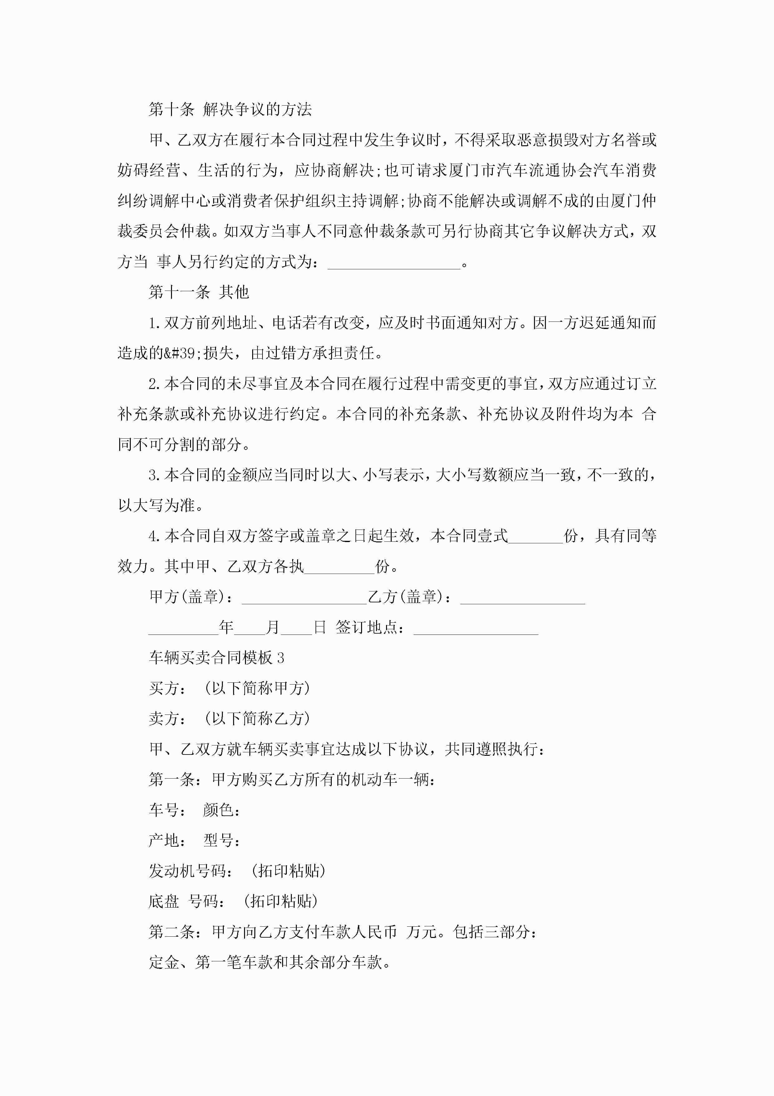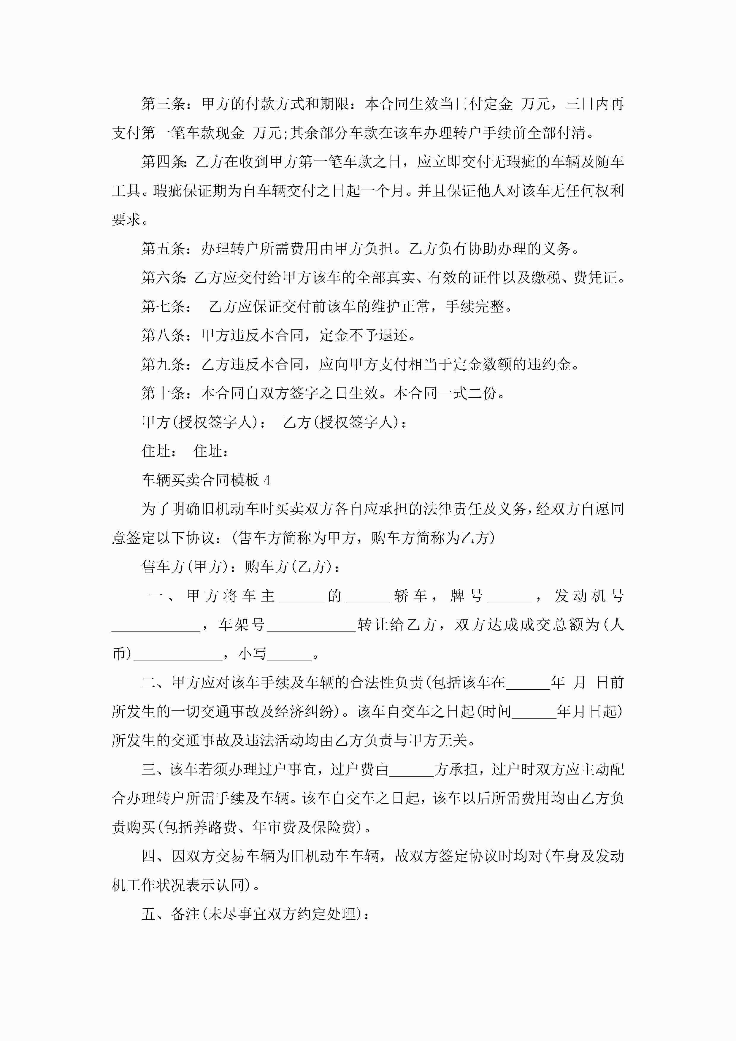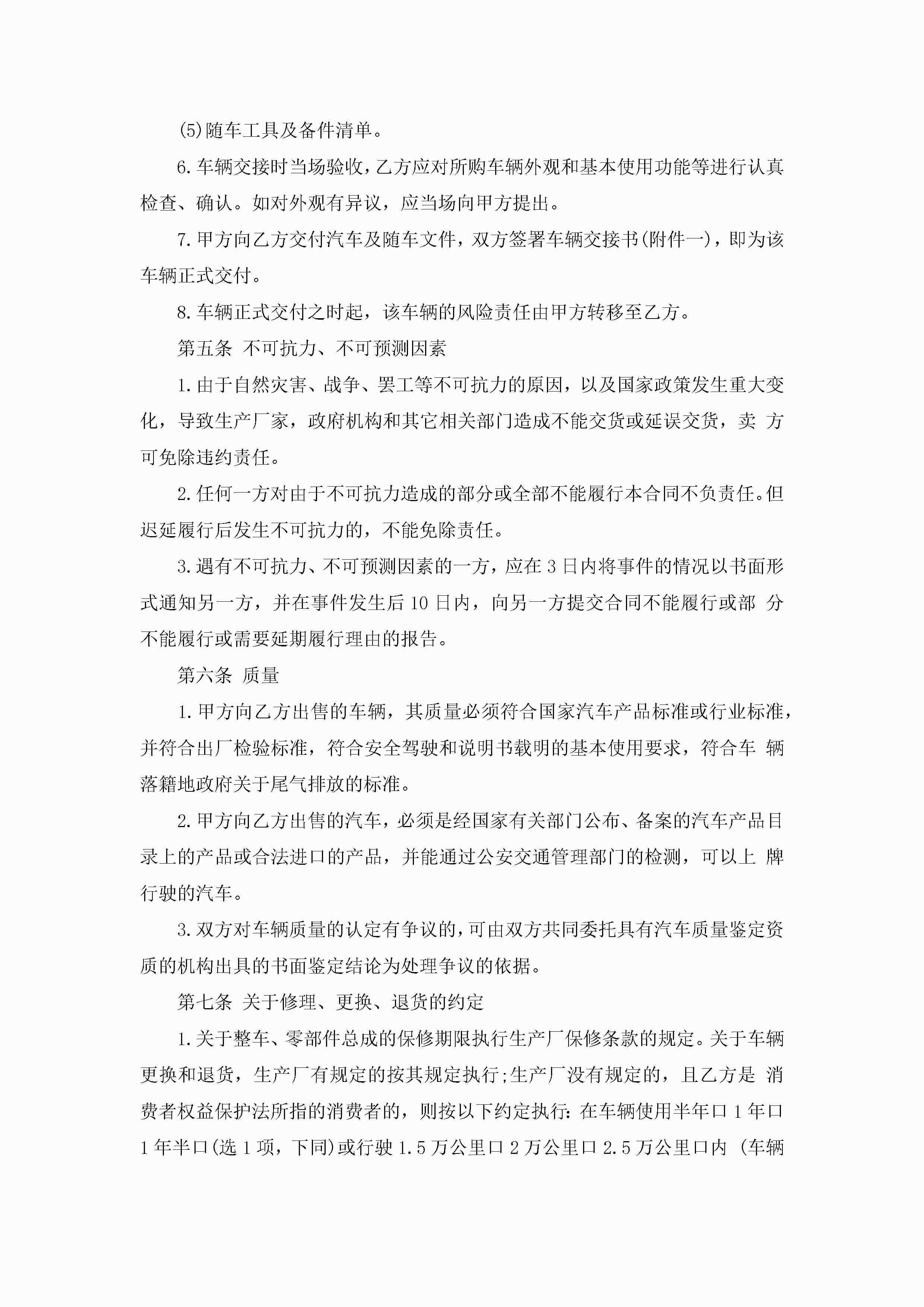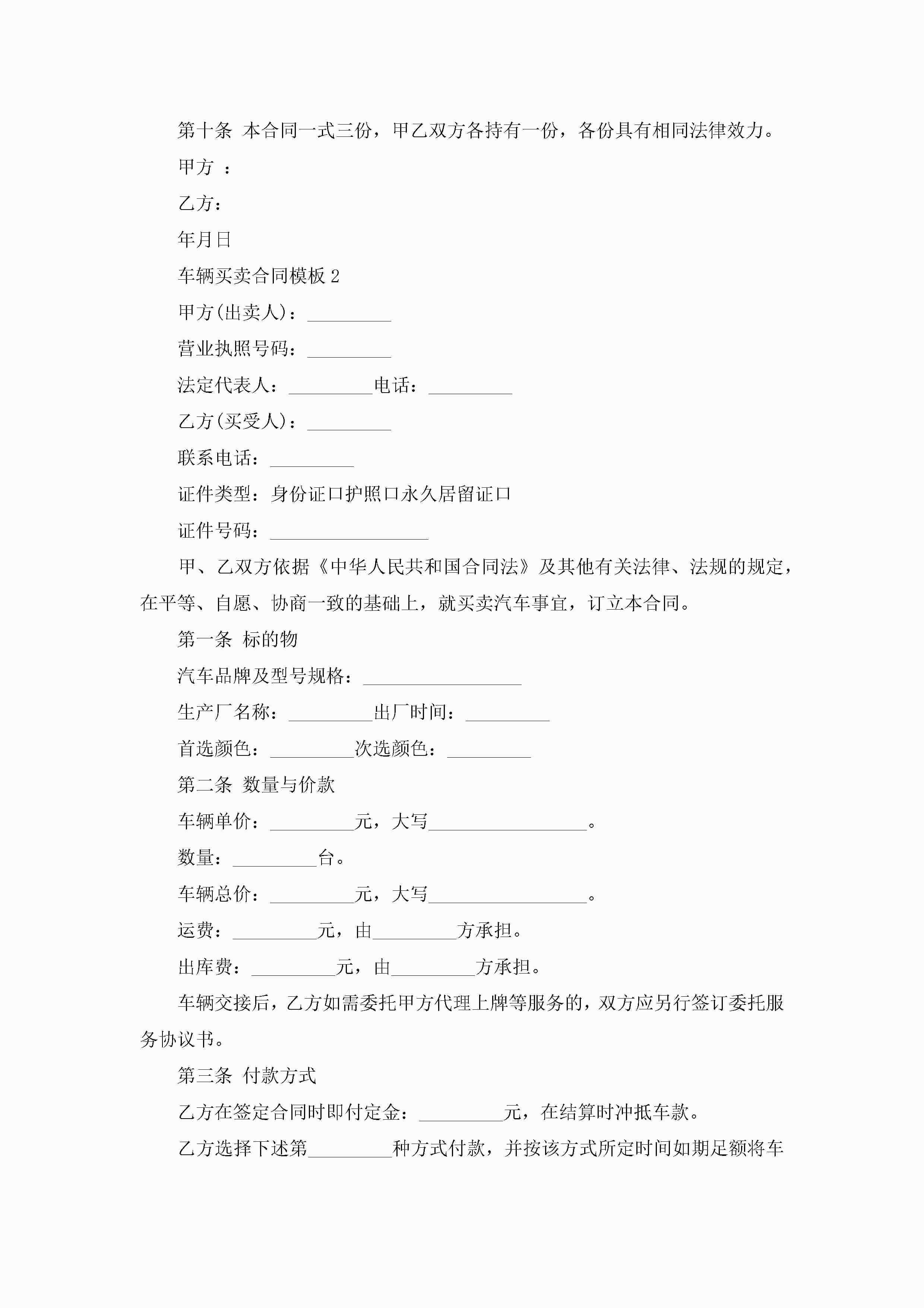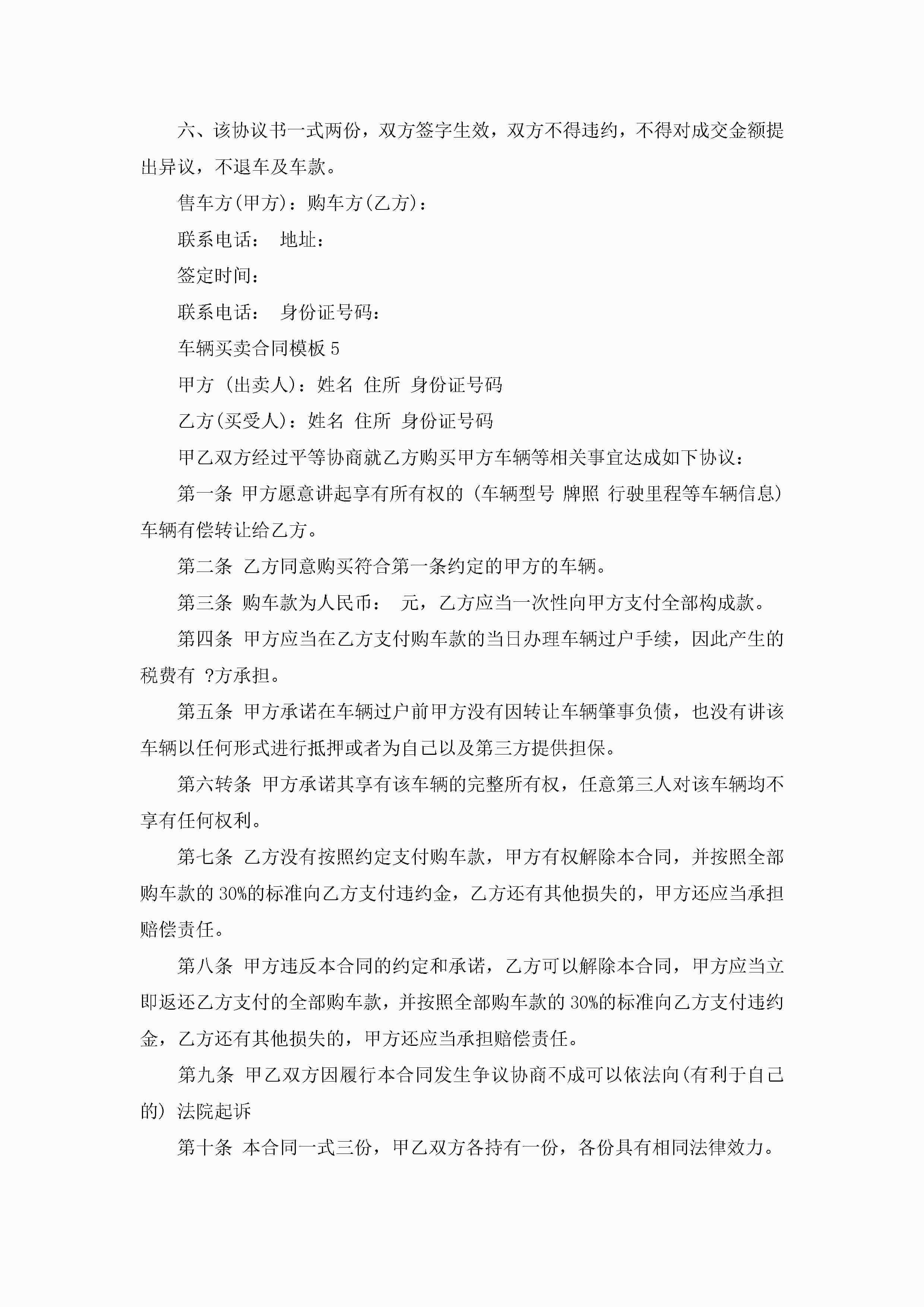 车辆买卖合同模板5篇jugei3月23日 01:38发布关注189 车辆买卖合同模板5篇此内容为付费资源,请付费后查看¥10.9 单篇文档限时特惠¥15个人会员开通企业会员开通立即下载无需登陆!可直接快捷下载单个模板付费资源© 版权声明THE ENDWord模板# 实用文档# 实用模板# 合同模板# 买卖合同 如有问题,可点击最底部“联系我们”联系客服 分享QQ空间微博QQ好友海报分享复制链接收藏