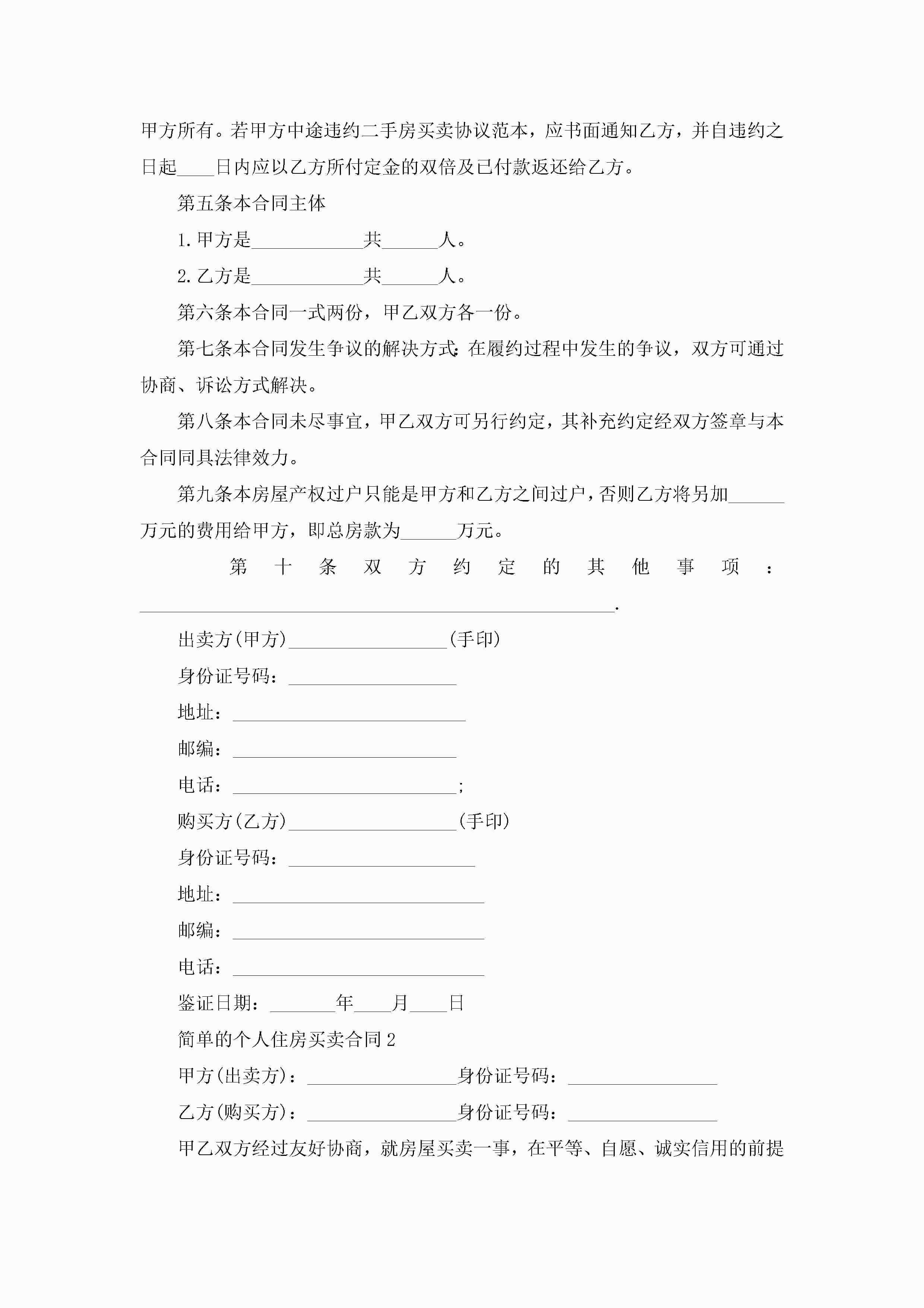 简单的个人住房买卖合同5篇jugei3月23日 01:38发布关注281 简单的个人住房买卖合同5篇此内容为付费资源,请付费后查看¥10.9 单篇文档限时特惠¥15个人会员开通企业会员开通立即下载无需登陆!可直接快捷下载单个模板付费资源© 版权声明THE ENDWord模板# 实用文档# 实用模板# 合同模板# 买卖合同 如有问题,可点击最底部“联系我们”联系客服 分享QQ空间微博QQ好友海报分享复制链接收藏