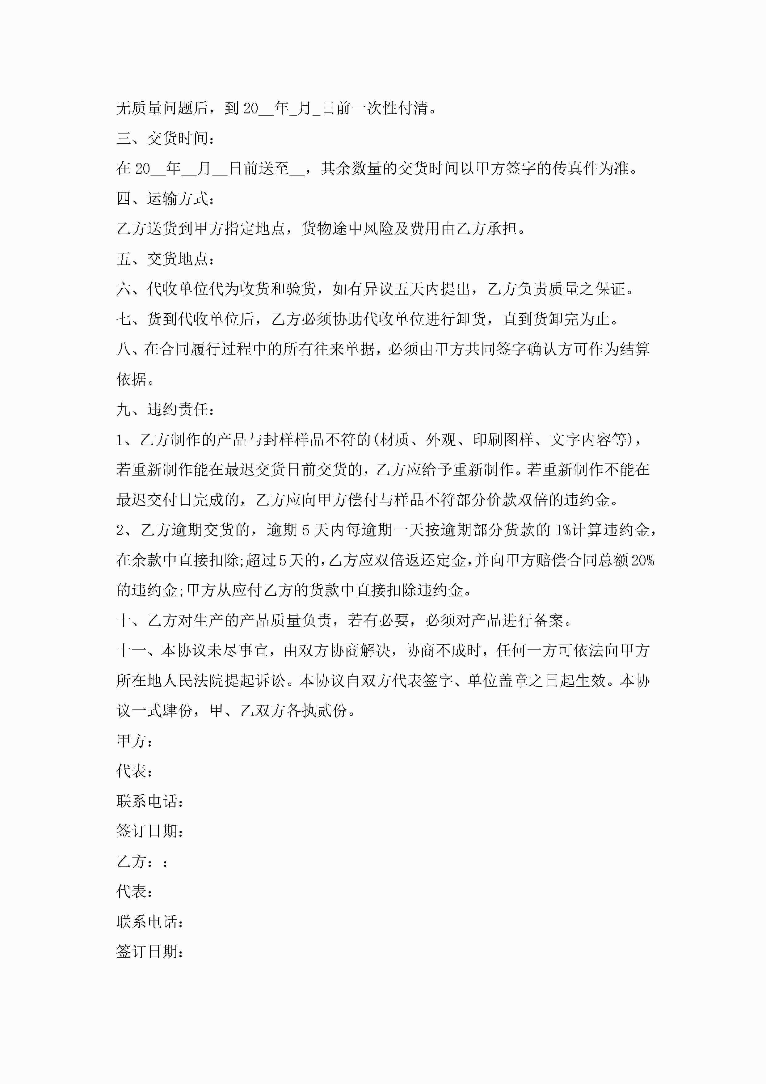 产品包装买卖合同5篇jugei3月23日 01:38发布关注193 产品包装买卖合同5篇此内容为付费资源,请付费后查看¥10.9 单篇文档限时特惠¥15个人会员开通企业会员开通立即下载无需登陆!可直接快捷下载单个模板付费资源© 版权声明THE ENDWord模板# 实用文档# 实用模板# 合同模板# 买卖合同 如有问题,可点击最底部“联系我们”联系客服 分享QQ空间微博QQ好友海报分享复制链接收藏