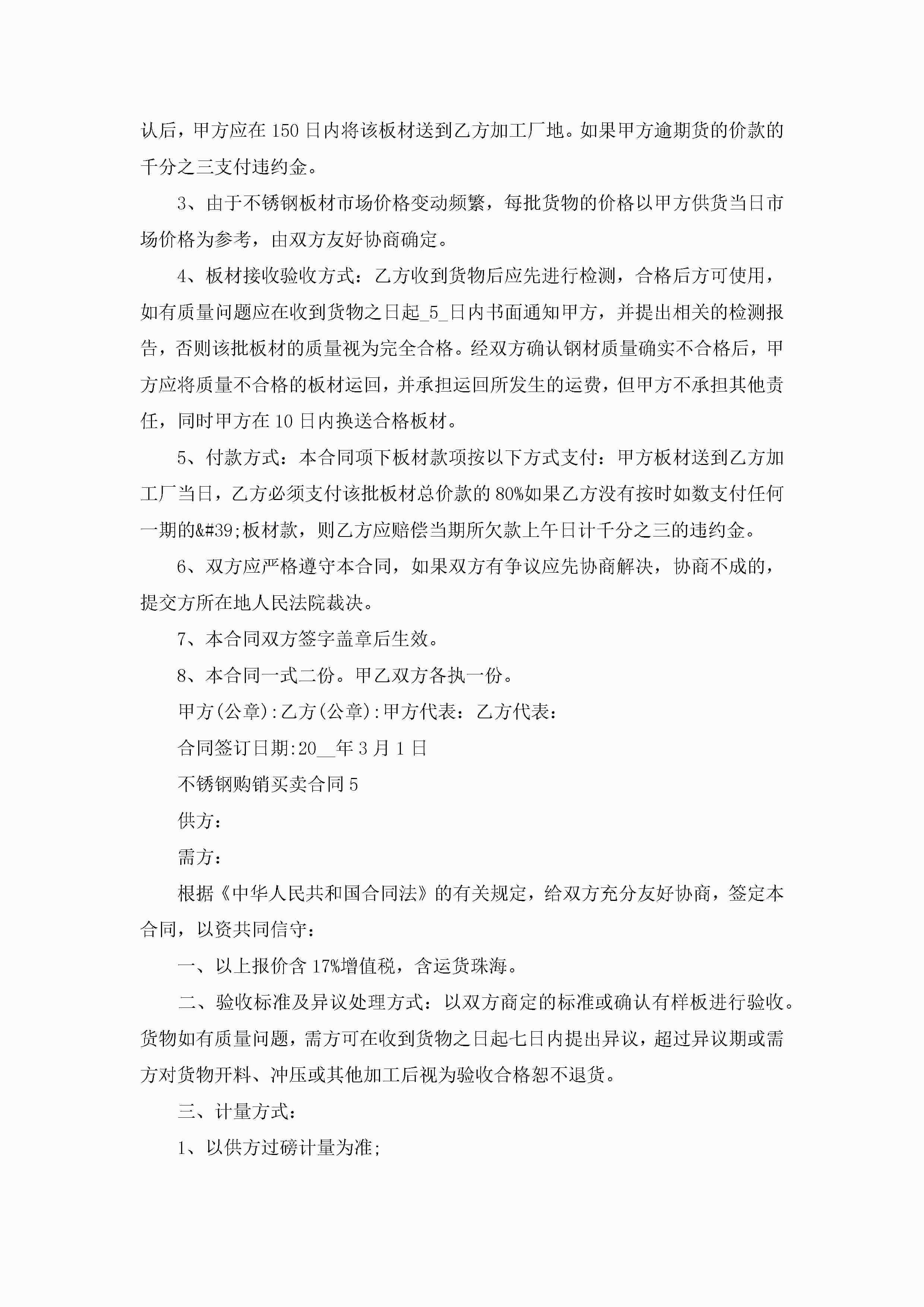 不锈钢购销买卖合同5篇jugei3月23日 01:38发布关注328 不锈钢购销买卖合同5篇此内容为付费资源,请付费后查看¥10.9 单篇文档限时特惠¥15个人会员开通企业会员开通立即下载无需登陆!可直接快捷下载单个模板付费资源© 版权声明THE ENDWord模板# 实用文档# 实用模板# 合同模板# 买卖合同 如有问题,可点击最底部“联系我们”联系客服 分享QQ空间微博QQ好友海报分享复制链接收藏