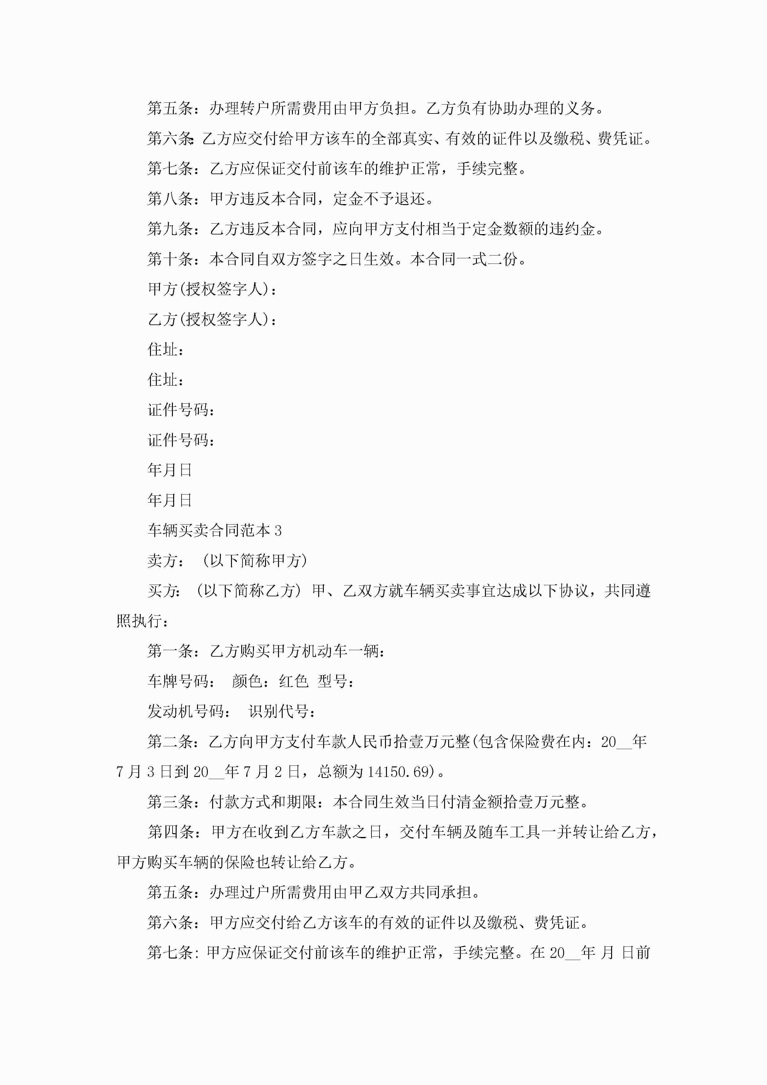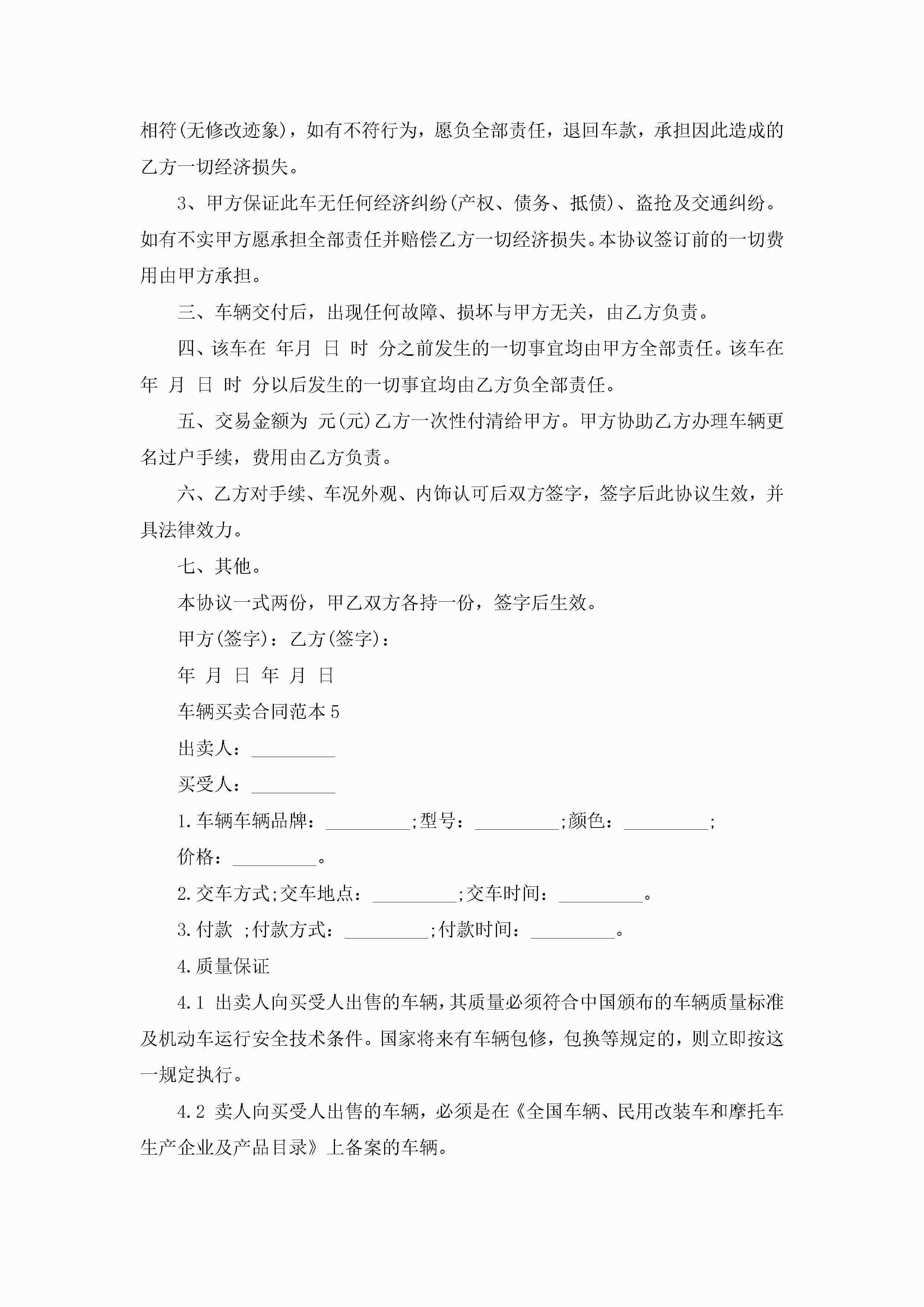 车辆买卖合同范本5篇jugei3月23日 01:38发布关注187 车辆买卖合同范本5篇此内容为付费资源,请付费后查看¥10.9 单篇文档限时特惠¥15个人会员开通企业会员开通立即下载无需登陆!可直接快捷下载单个模板付费资源© 版权声明THE ENDWord模板# 实用文档# 实用模板# 合同模板# 买卖合同 如有问题,可点击最底部“联系我们”联系客服 分享QQ空间微博QQ好友海报分享复制链接收藏