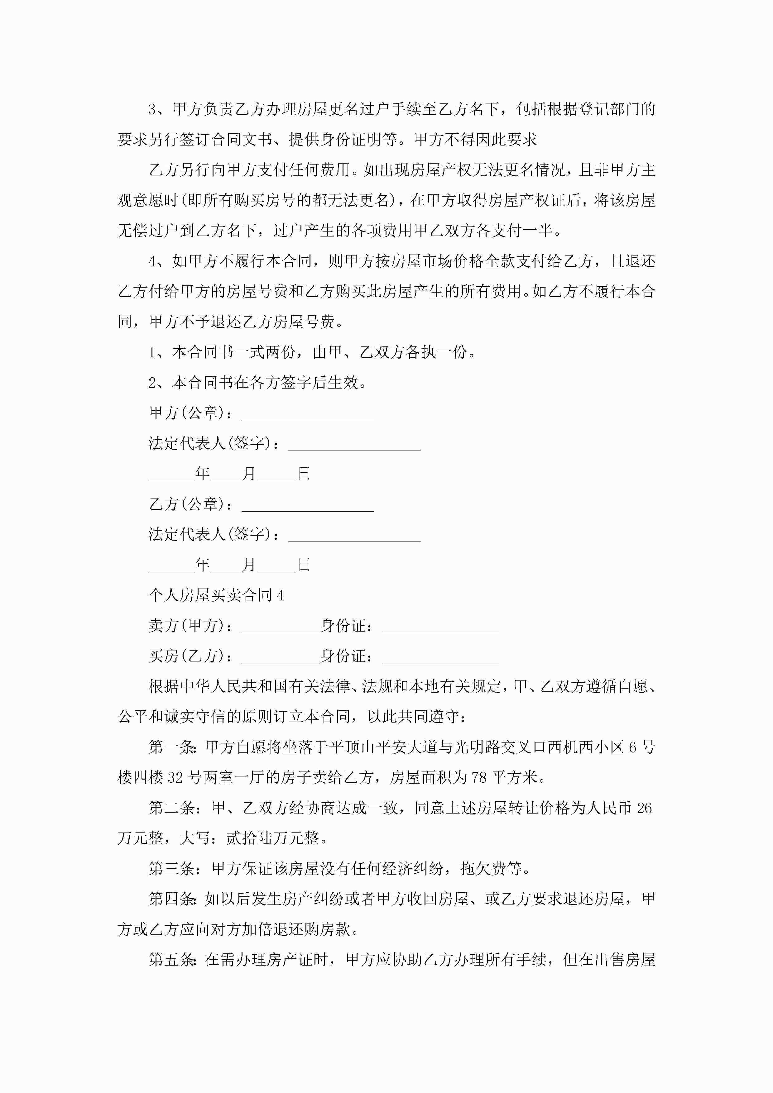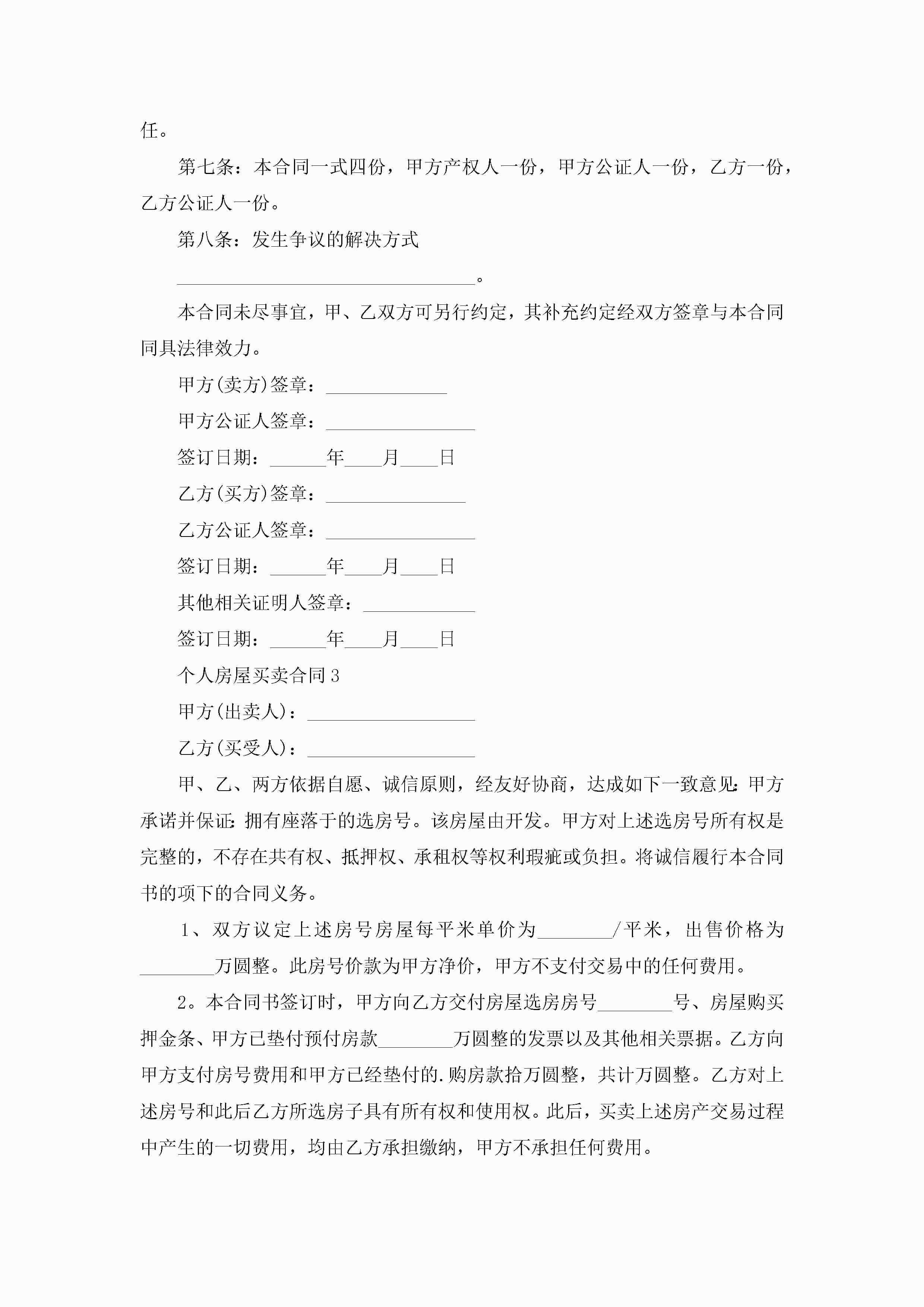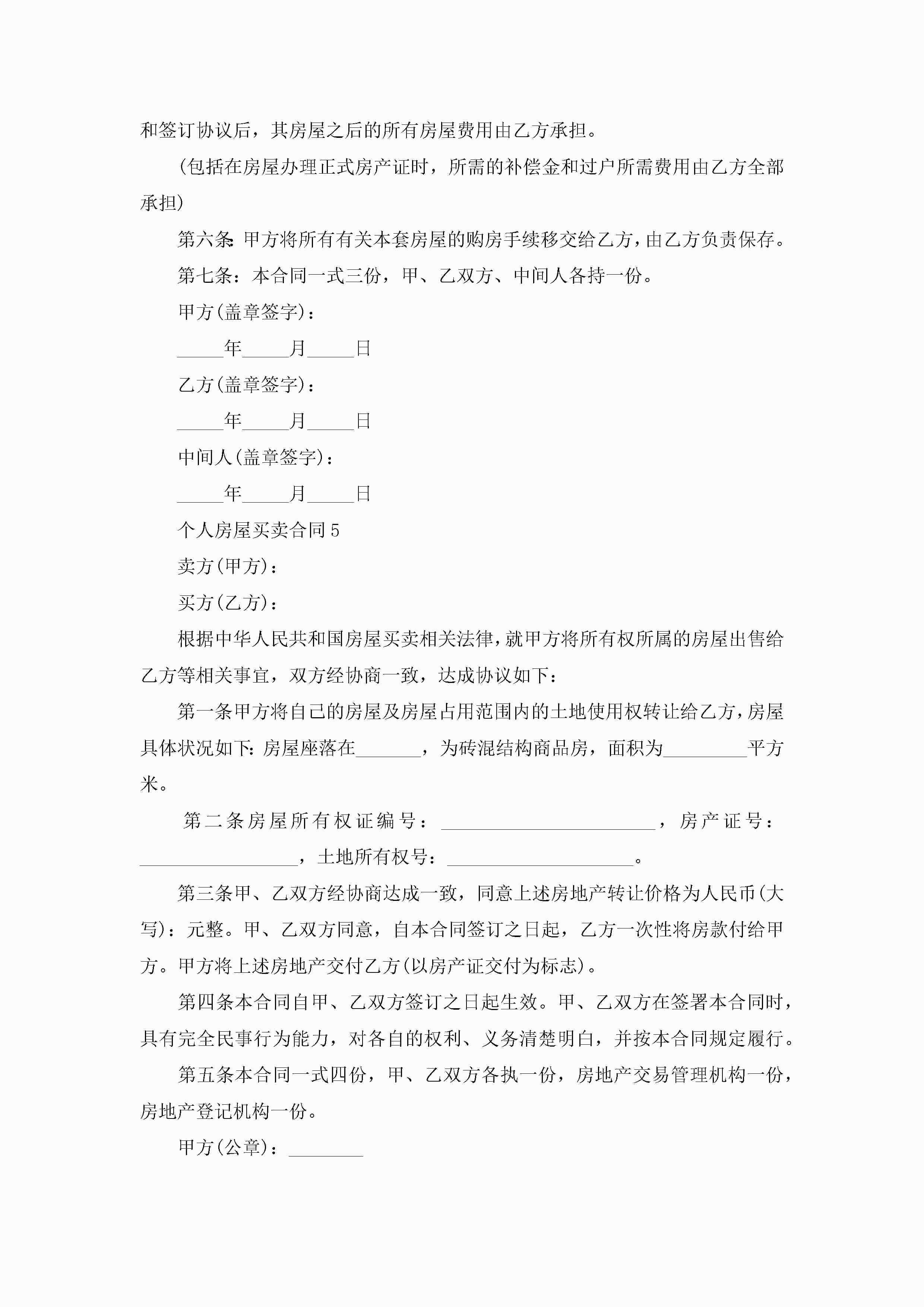 个人房屋买卖合同5篇jugei3月23日 01:38发布关注240 个人房屋买卖合同5篇此内容为付费资源,请付费后查看¥10.9 单篇文档限时特惠¥15个人会员开通企业会员开通立即下载无需登陆!可直接快捷下载单个模板付费资源© 版权声明THE ENDWord模板# 实用文档# 实用模板# 合同模板# 买卖合同 如有问题,可点击最底部“联系我们”联系客服 分享QQ空间微博QQ好友海报分享复制链接收藏