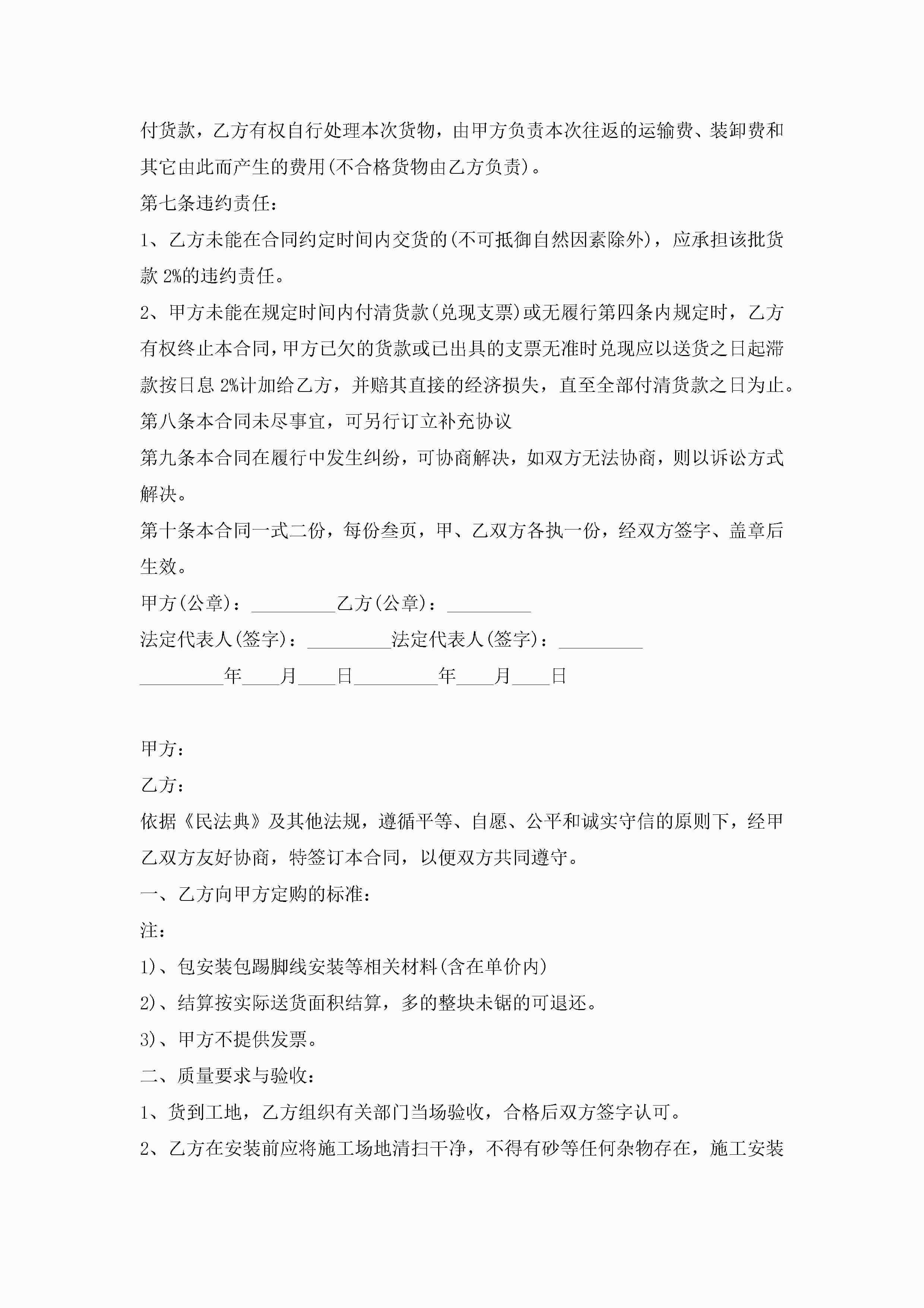 地板购销买卖合同5篇jugei3月23日 01:38发布关注215 地板购销买卖合同5篇此内容为付费资源,请付费后查看¥10.9 单篇文档限时特惠¥15个人会员开通企业会员开通立即下载无需登陆!可直接快捷下载单个模板付费资源© 版权声明THE ENDWord模板# 实用文档# 实用模板# 合同模板# 买卖合同 如有问题,可点击最底部“联系我们”联系客服 分享QQ空间微博QQ好友海报分享复制链接收藏