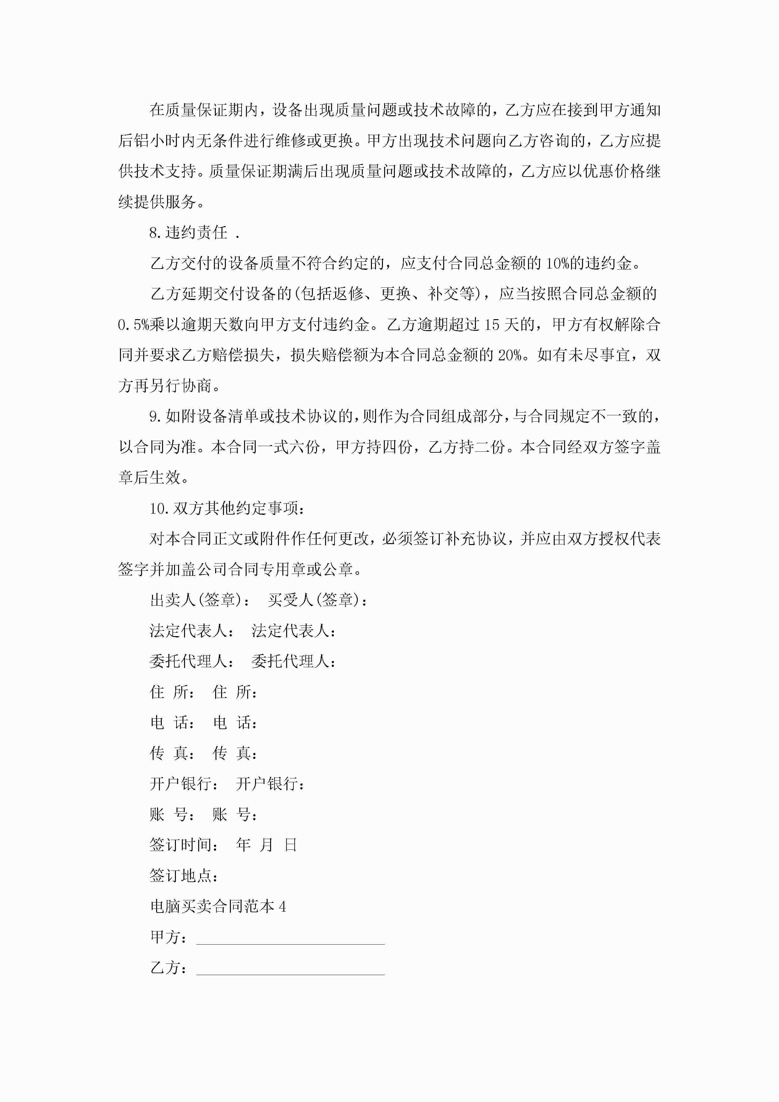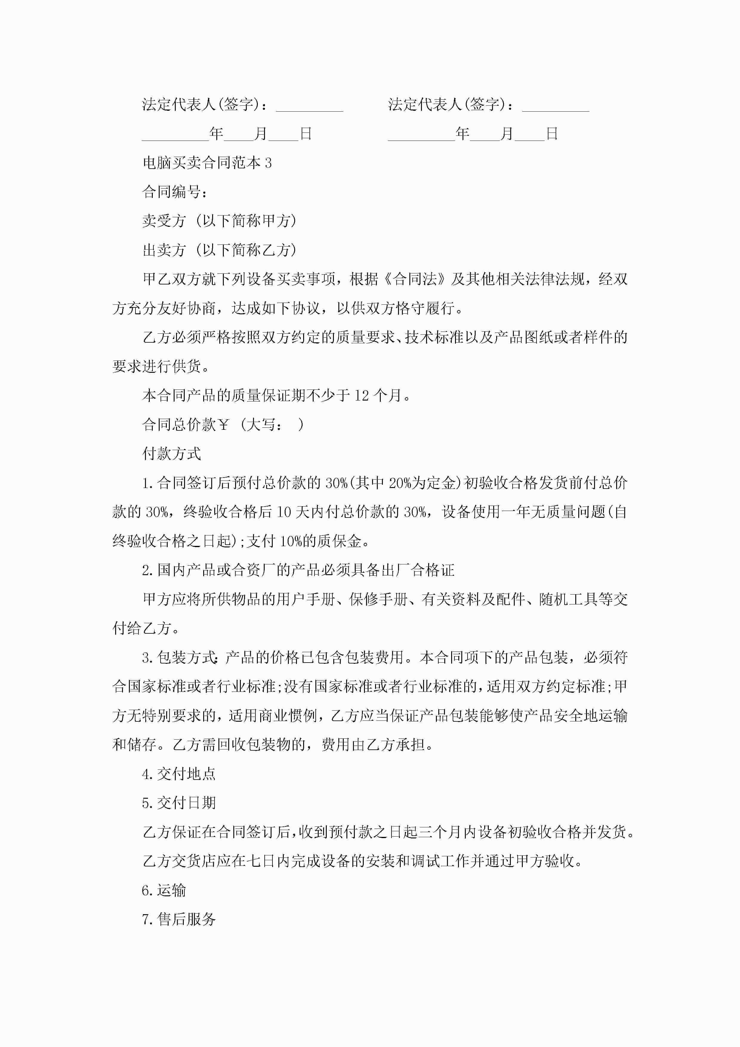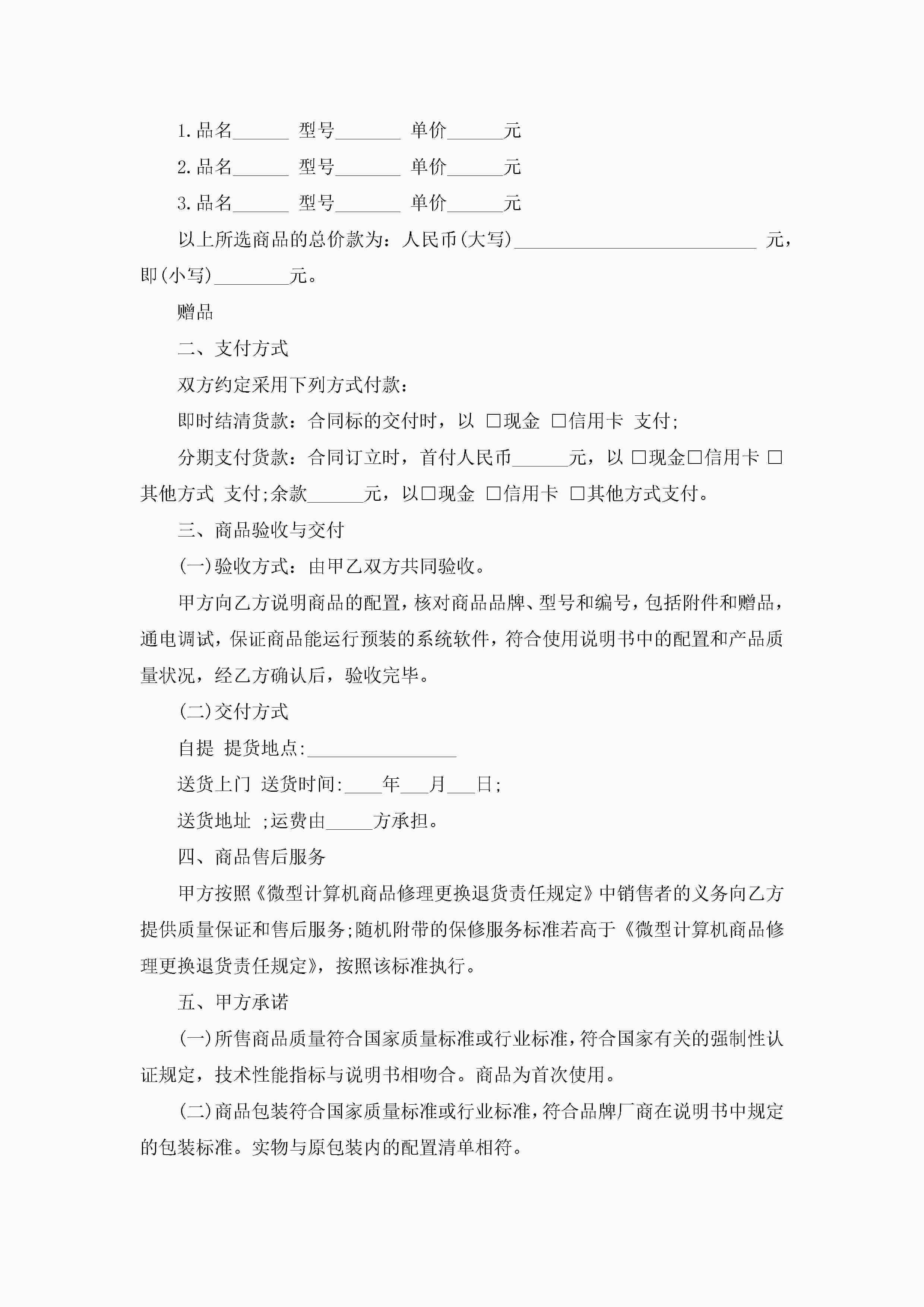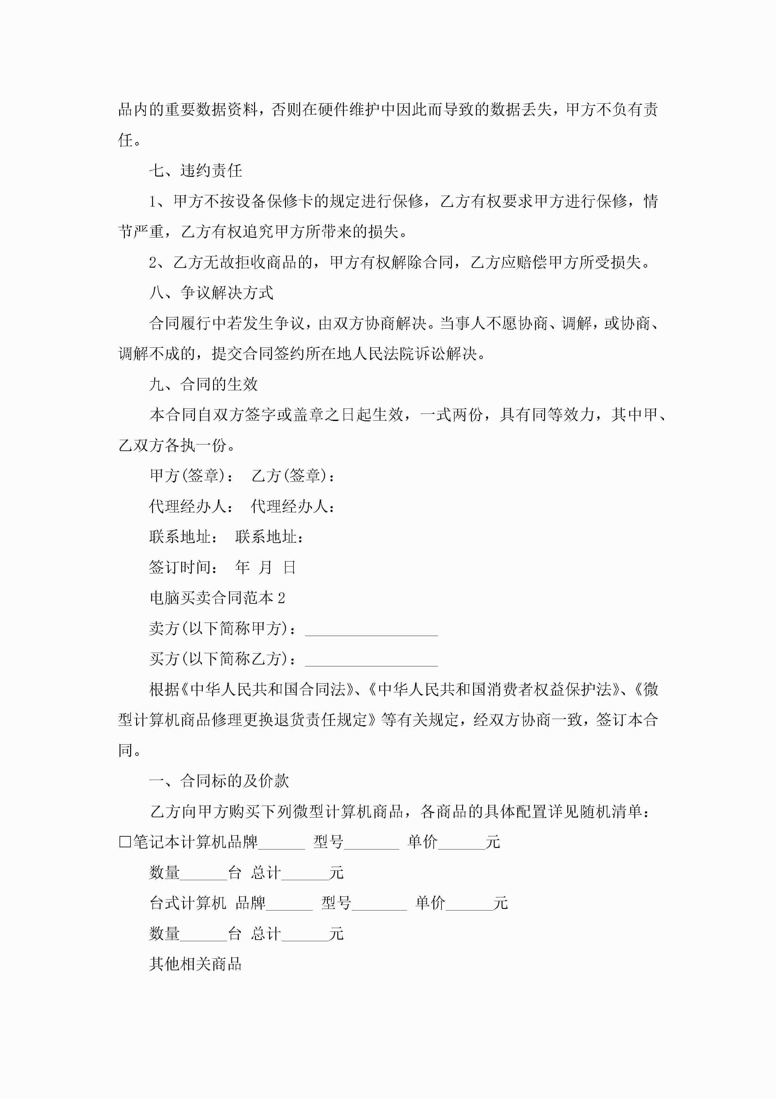 电脑买卖合同范本5篇jugei3月23日 01:38发布关注235 电脑买卖合同范本5篇此内容为付费资源,请付费后查看¥10.9 单篇文档限时特惠¥15个人会员开通企业会员开通立即下载无需登陆!可直接快捷下载单个模板付费资源© 版权声明THE ENDWord模板# 实用文档# 实用模板# 合同模板# 买卖合同 如有问题,可点击最底部“联系我们”联系客服 分享QQ空间微博QQ好友海报分享复制链接收藏